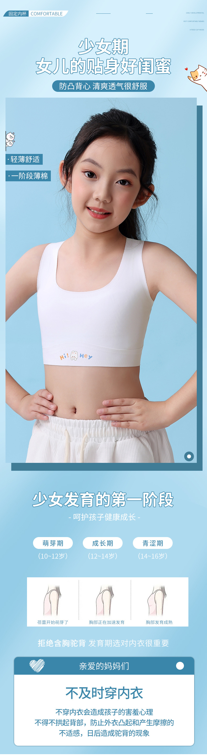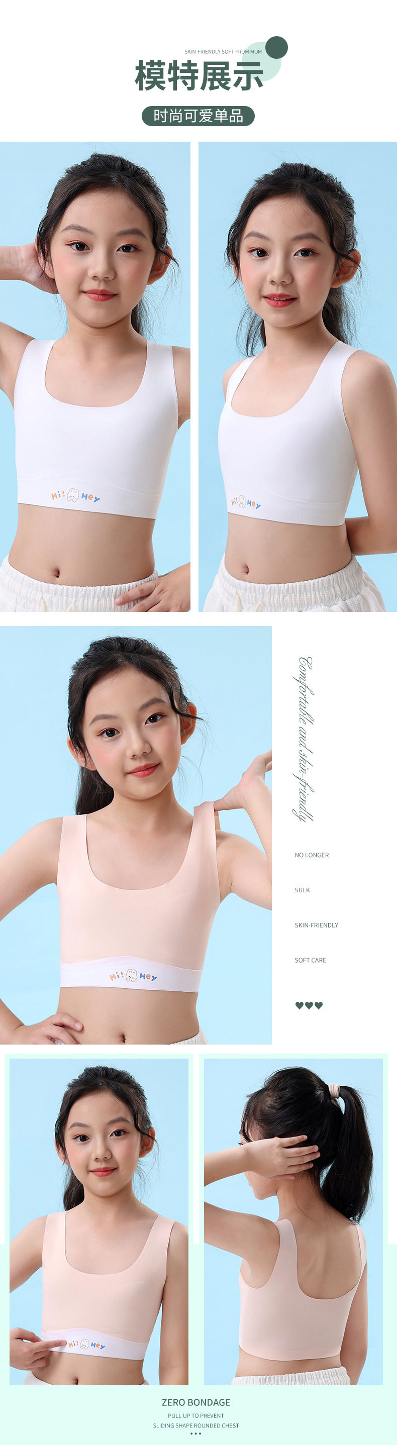 원활한 아이스 실크 여아 속옷 개발 기간 초등학생 어린이 조끼 12-16 세 소녀 튜브 탑