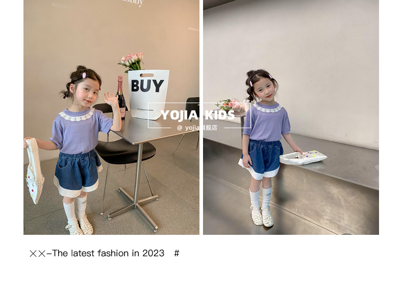 여자 여름 반바지 2023 새로운 스타일 한국식 핫팬츠 캐주얼 스티칭 어린이 도매스토어 가기