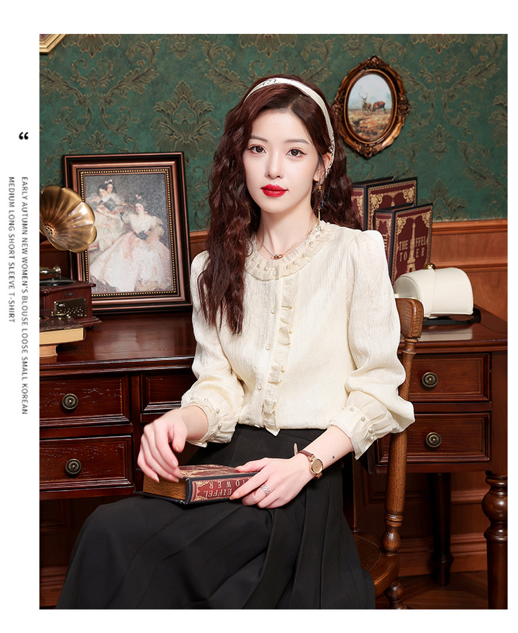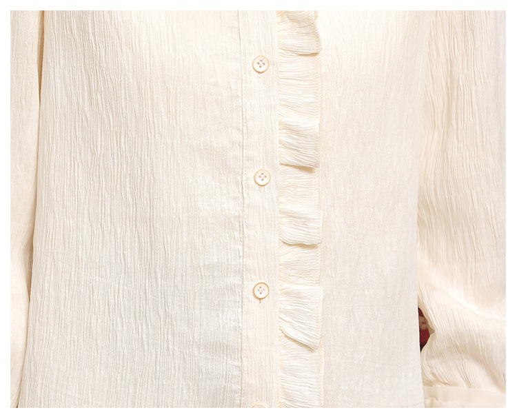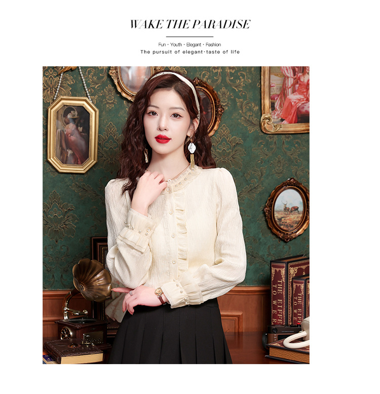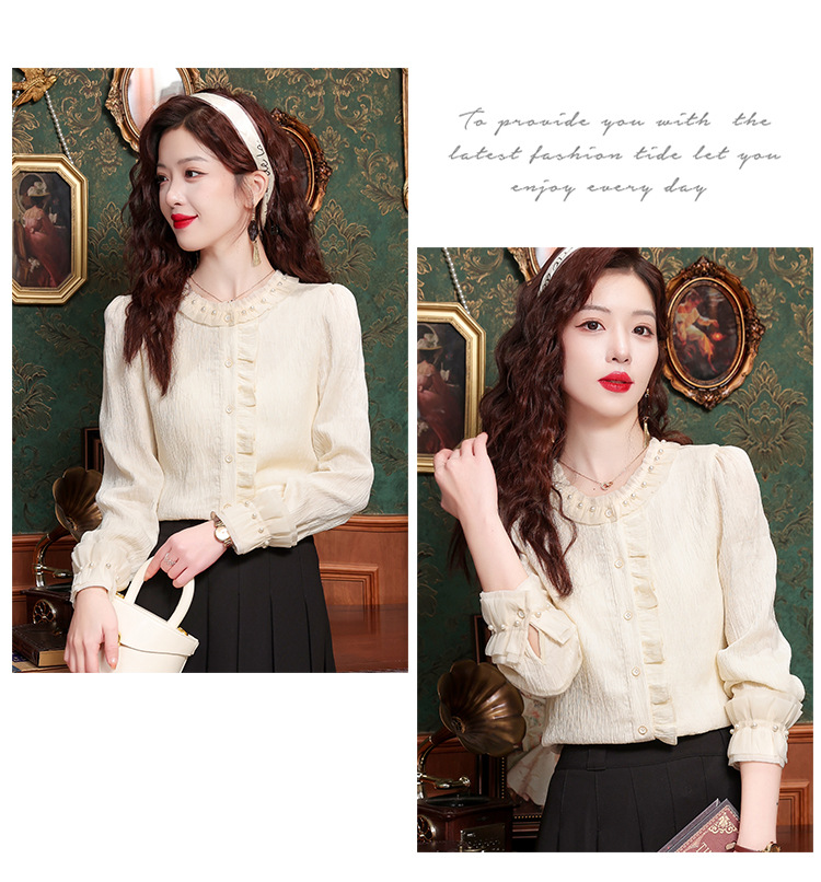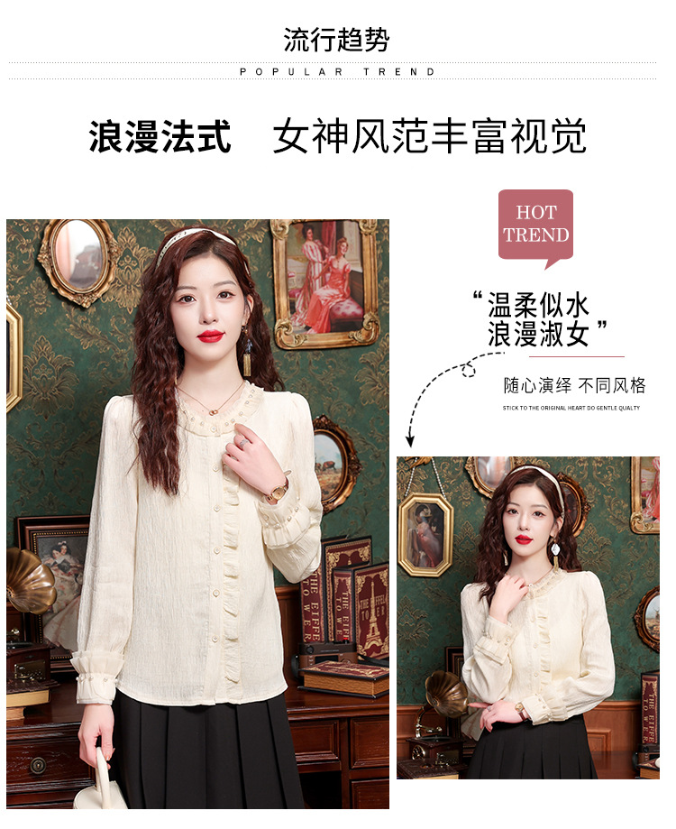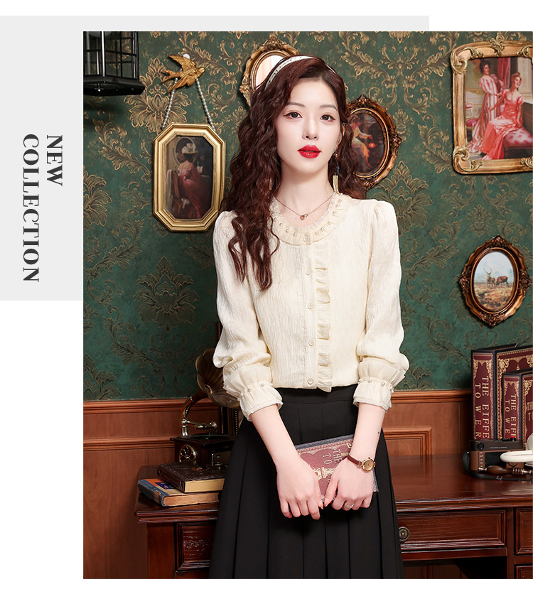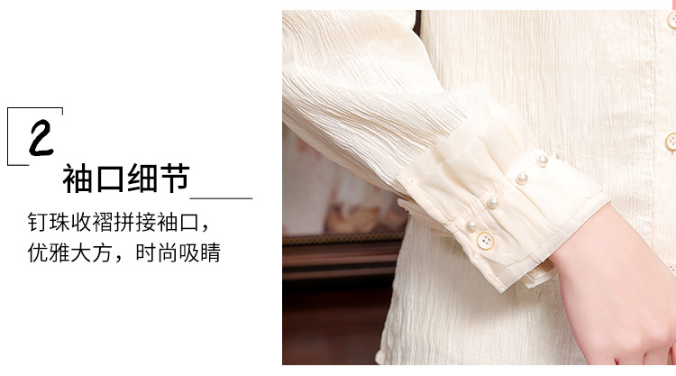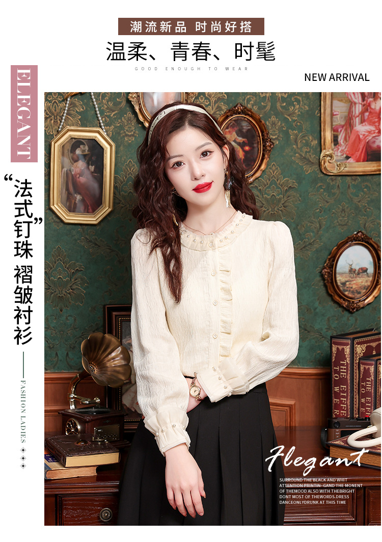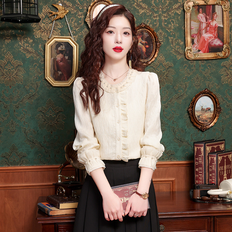여성을위한 세련된 긴팔 쉬폰 셔츠 2024 봄 새로운 주름 장식 서양식 셔츠 여성 유행 도매스토어 가기