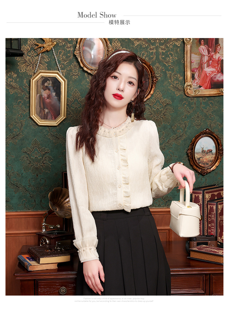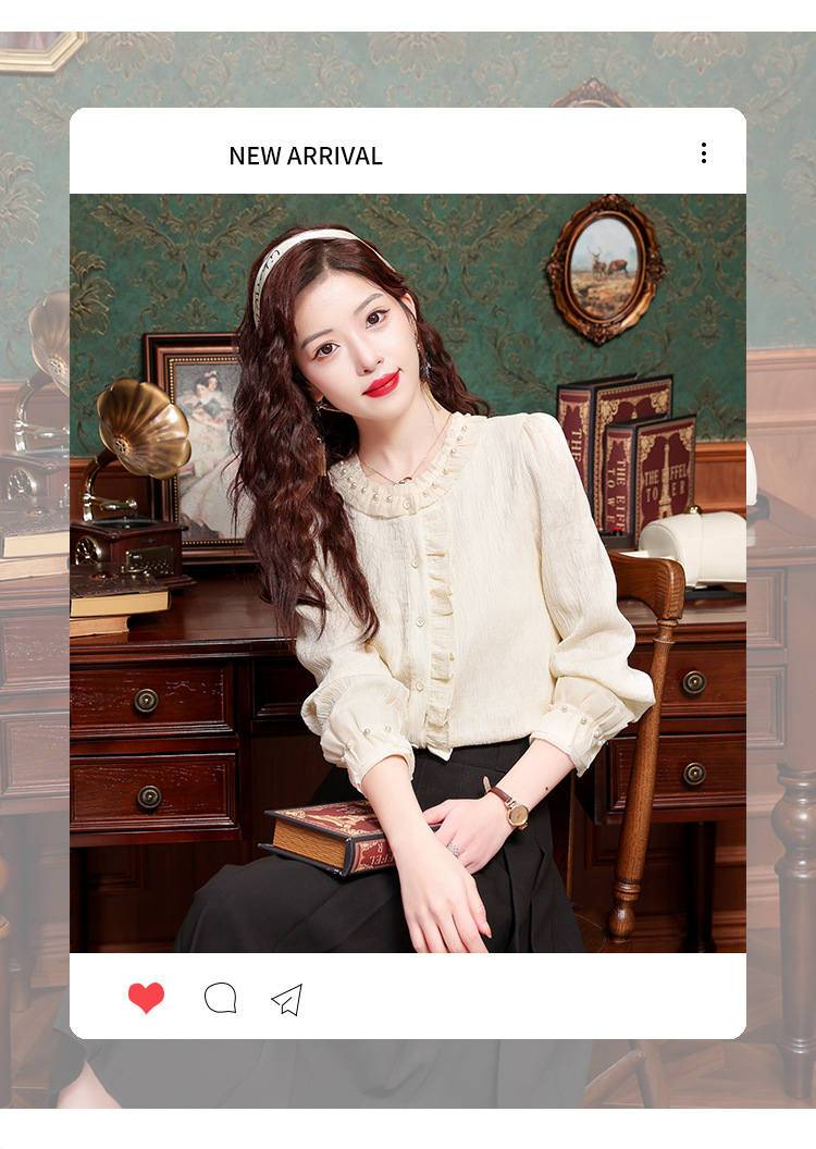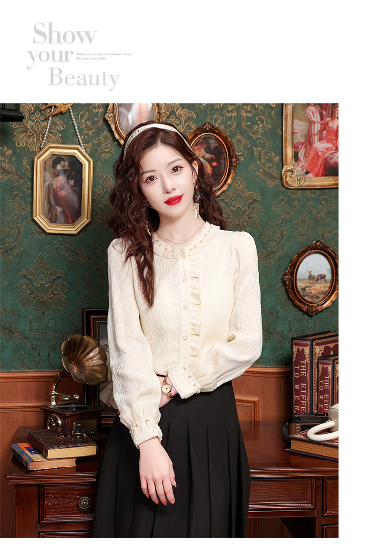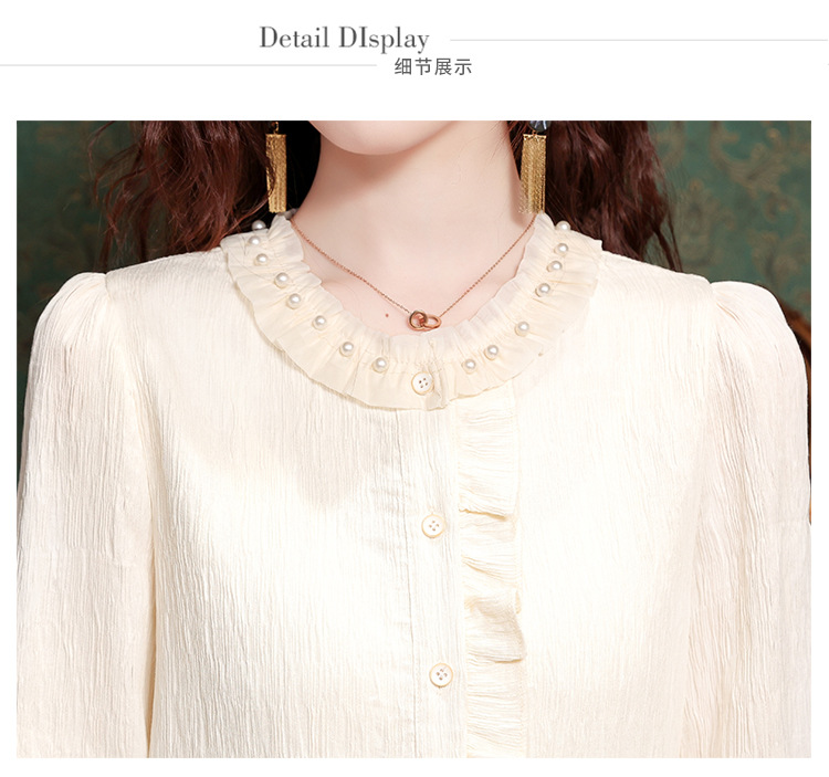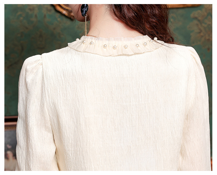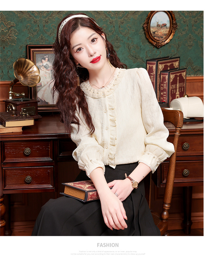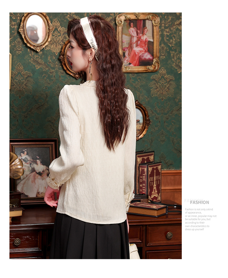 여성을위한 세련된 긴팔 쉬폰 셔츠 2024 봄 새로운 주름 장식 서양식 셔츠 여성 유행 도매스토어 가기