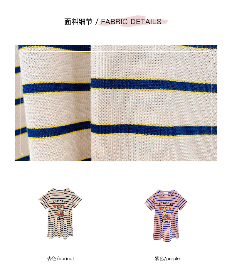 여자 스트라이프 원피스 여름 2023 새로운 서양 스타일 패션 아기 티셔츠 스커트 짧은 소매 캐주얼 어린이 스커트