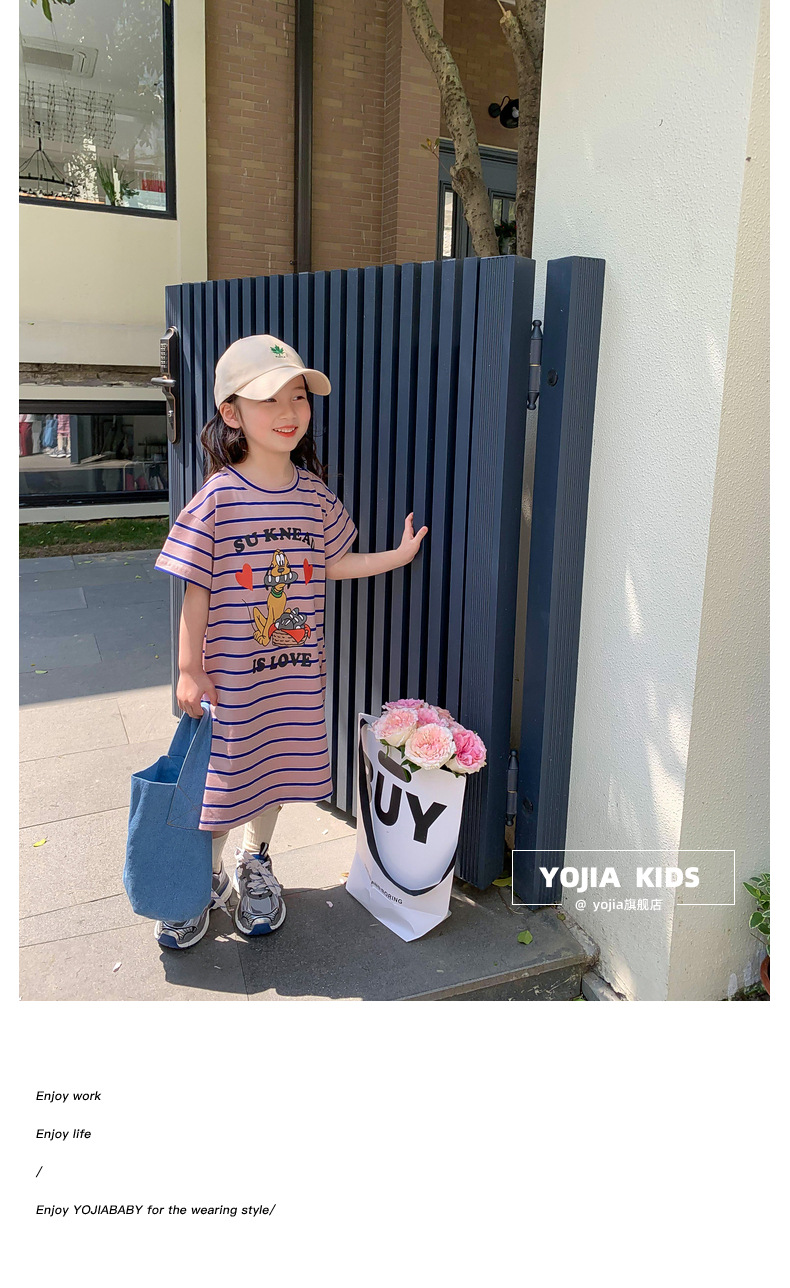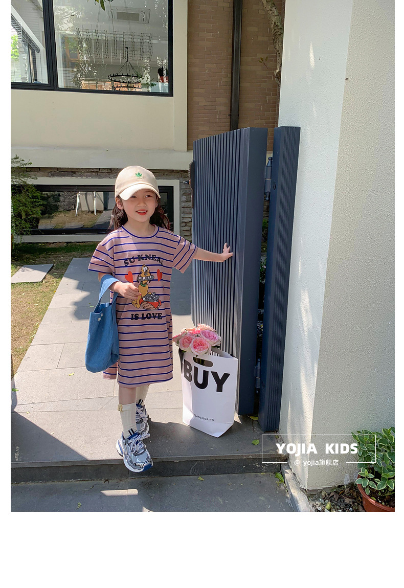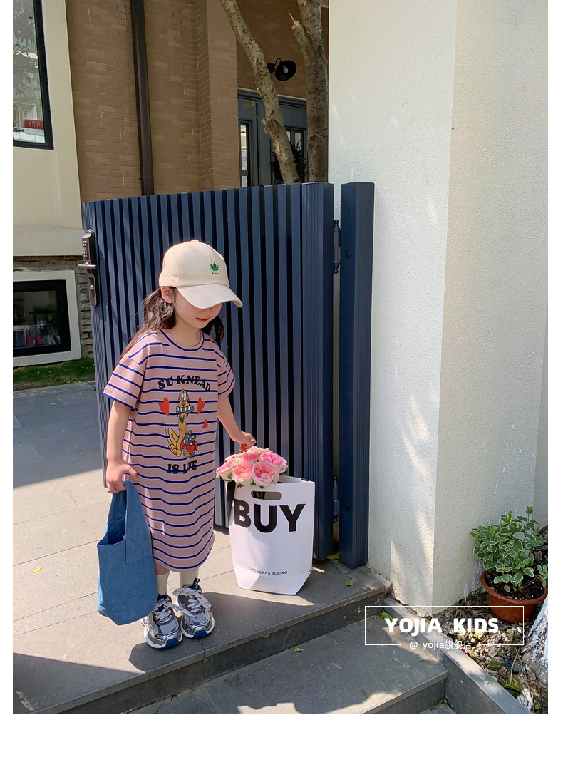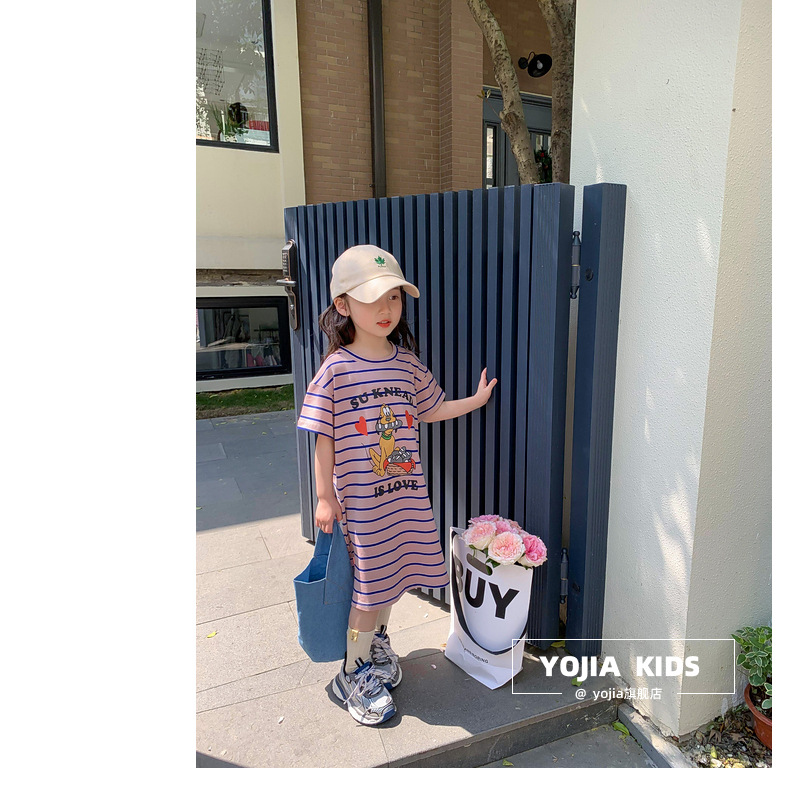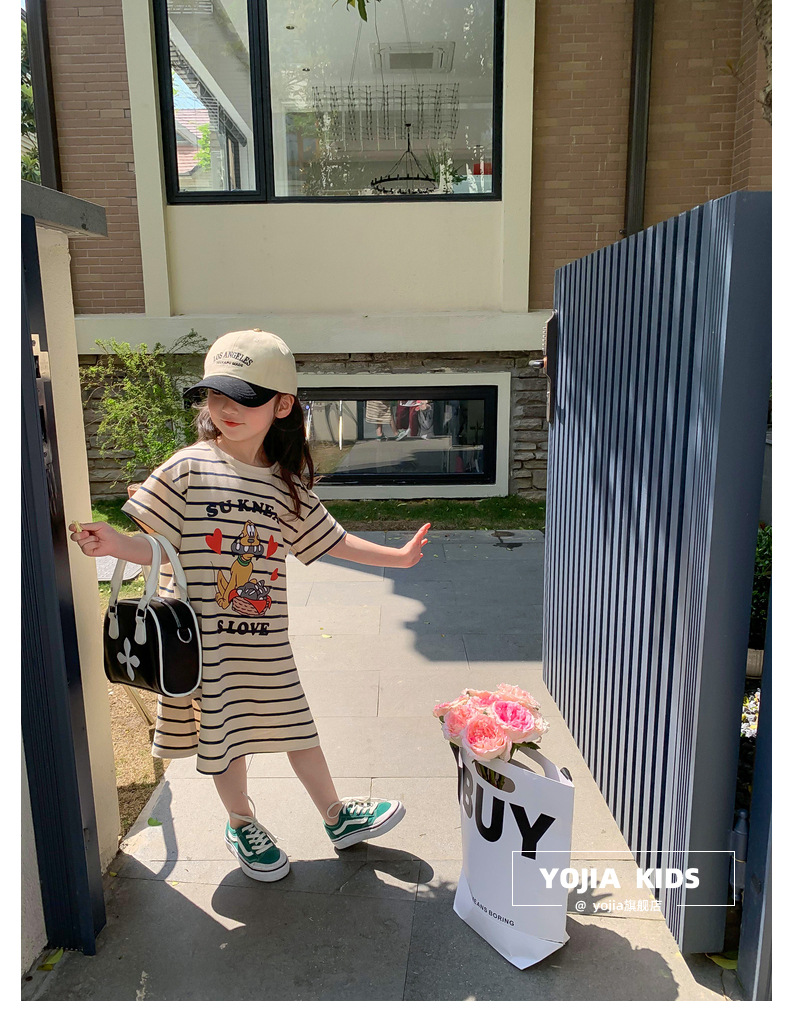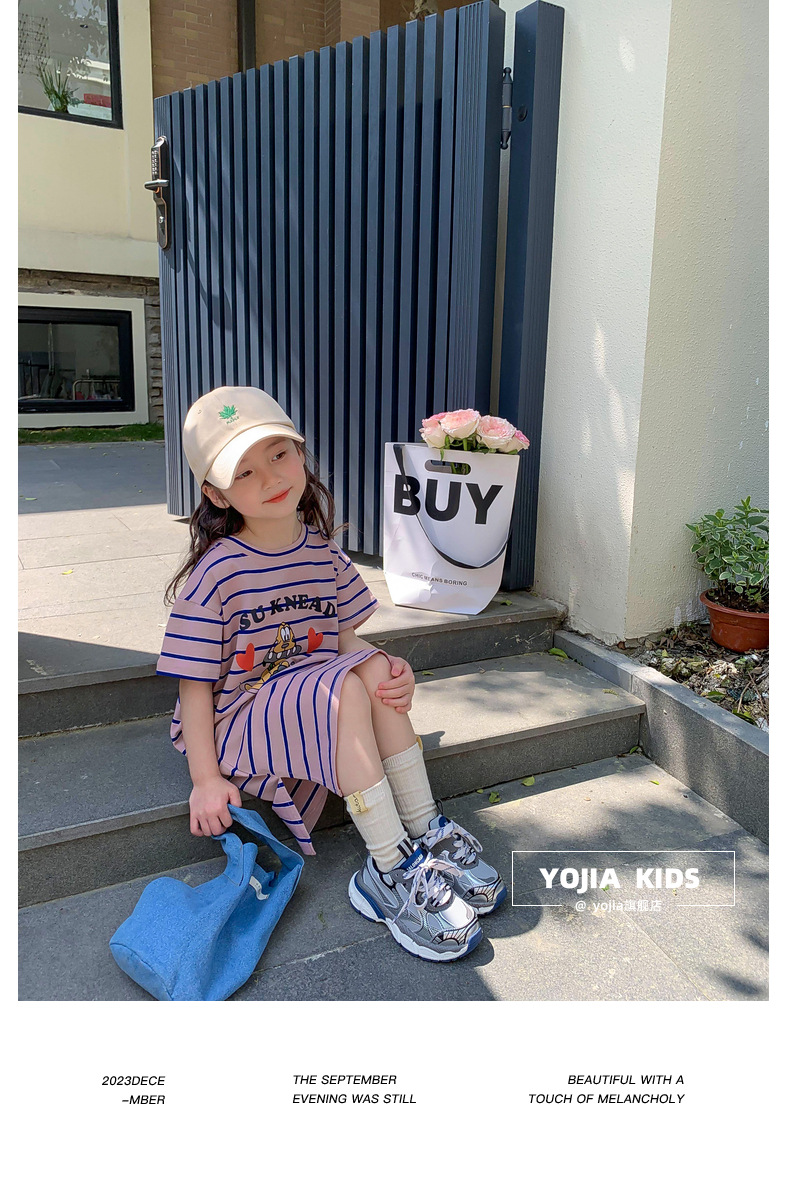 여자 스트라이프 원피스 여름 2023 새로운 서양 스타일 패션 아기 티셔츠 스커트 짧은 소매 캐주얼 어린이 스커트스토어 가기