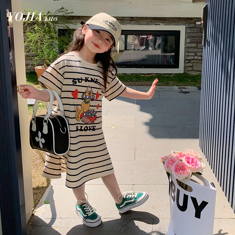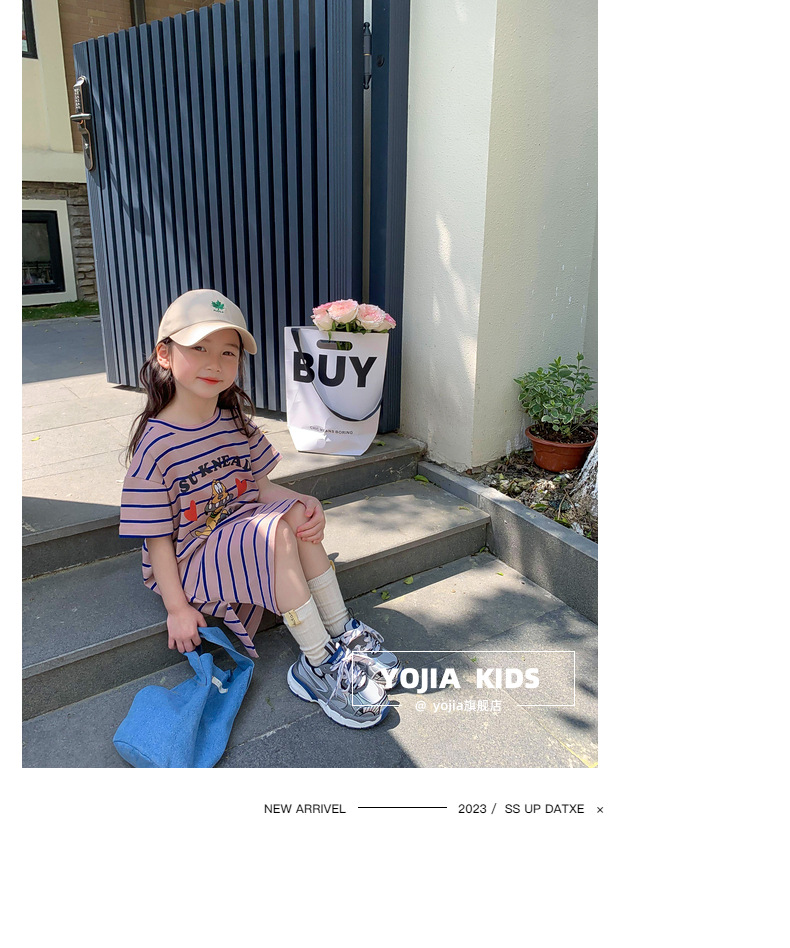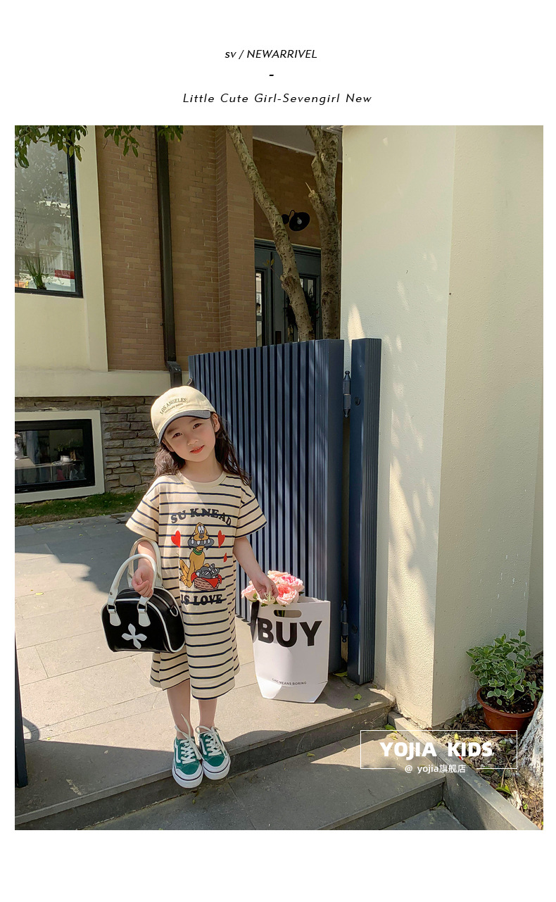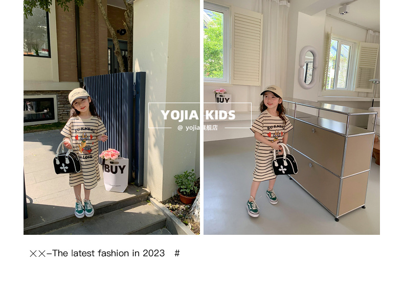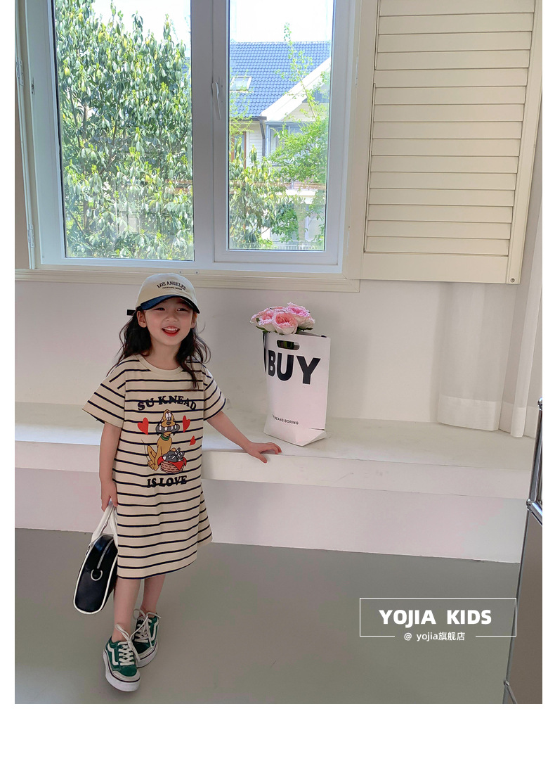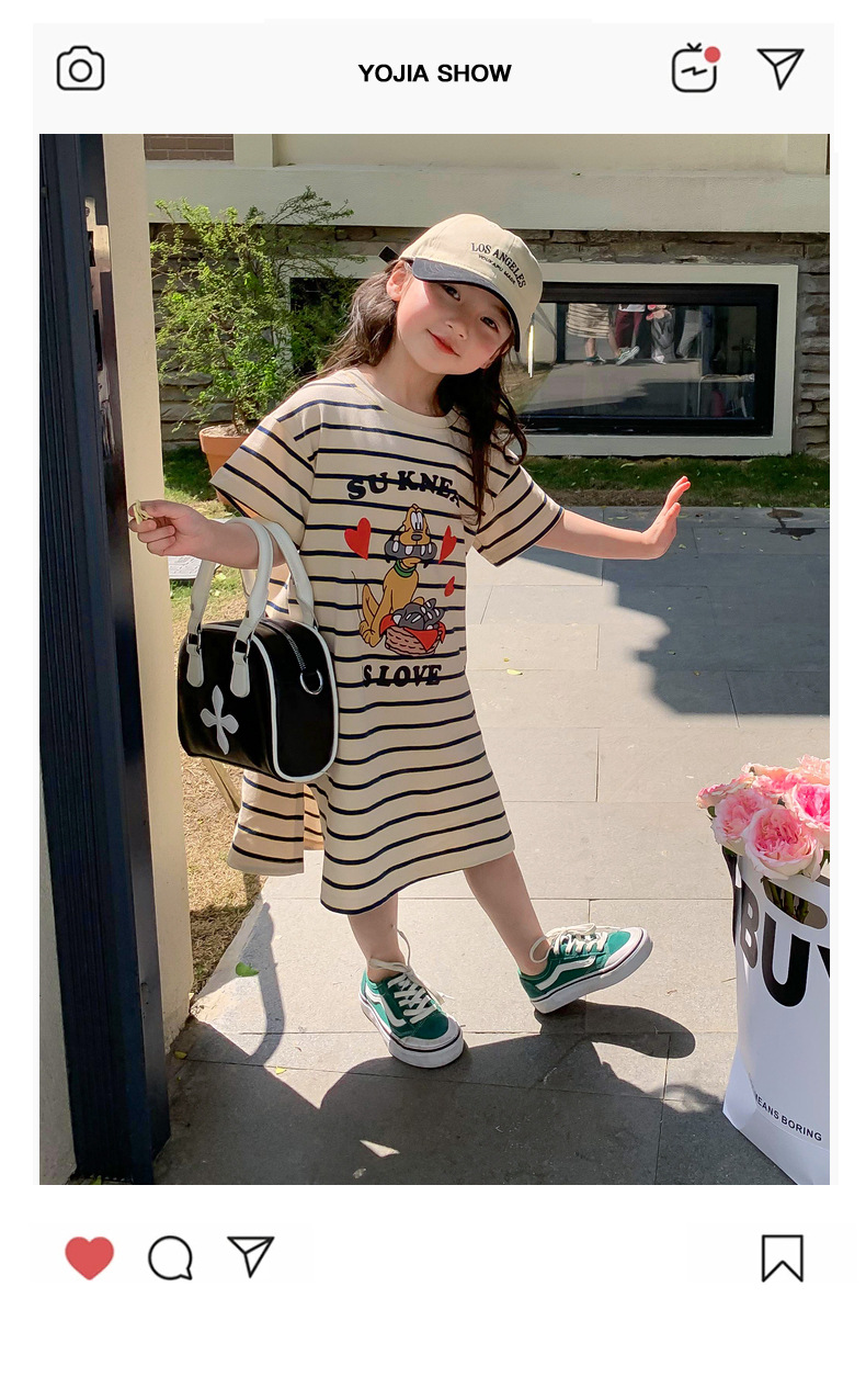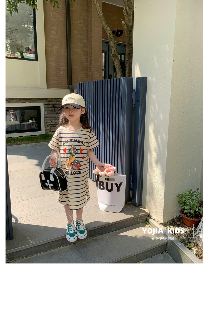 여자 스트라이프 원피스 여름 2023 새로운 서양 스타일 패션 아기 티셔츠 스커트 짧은 소매 캐주얼 어린이 스커트스토어 가기
