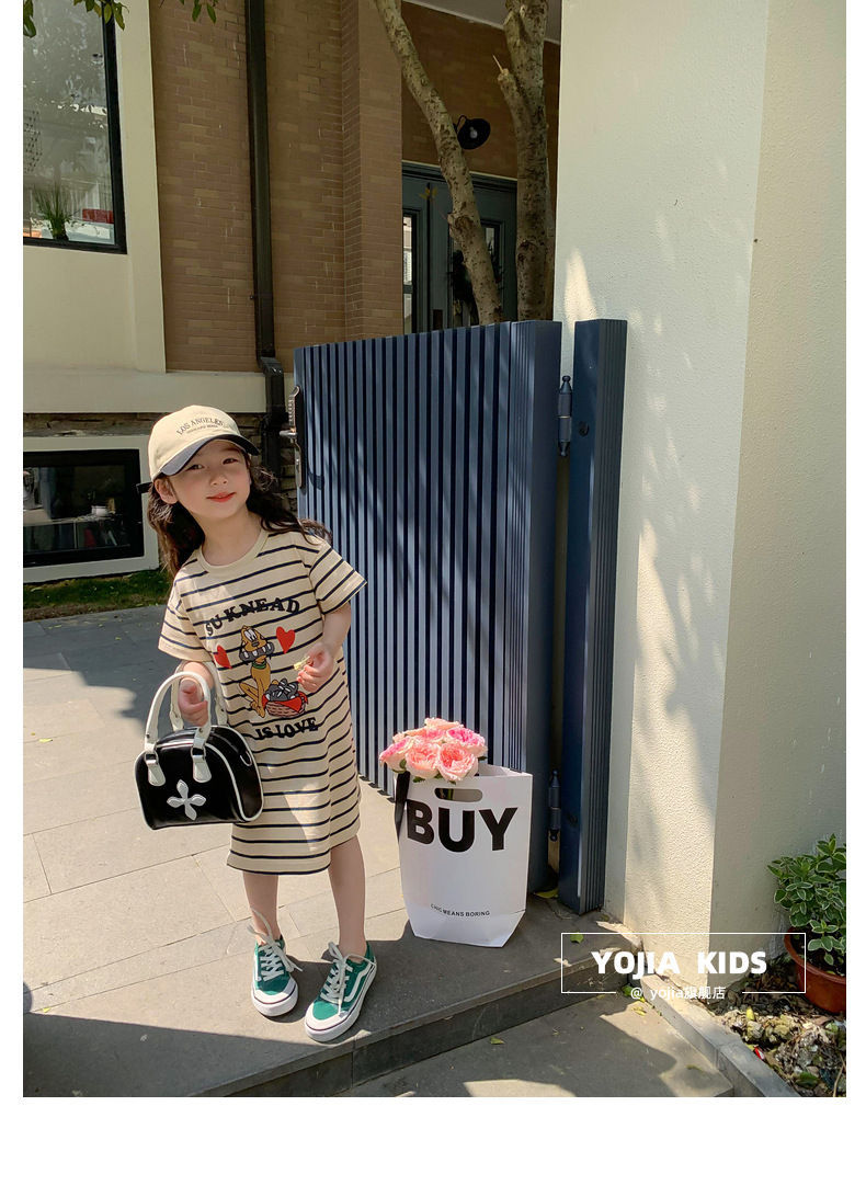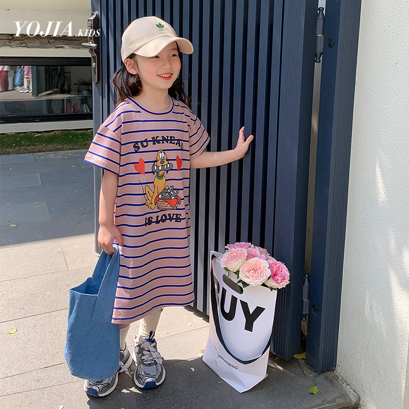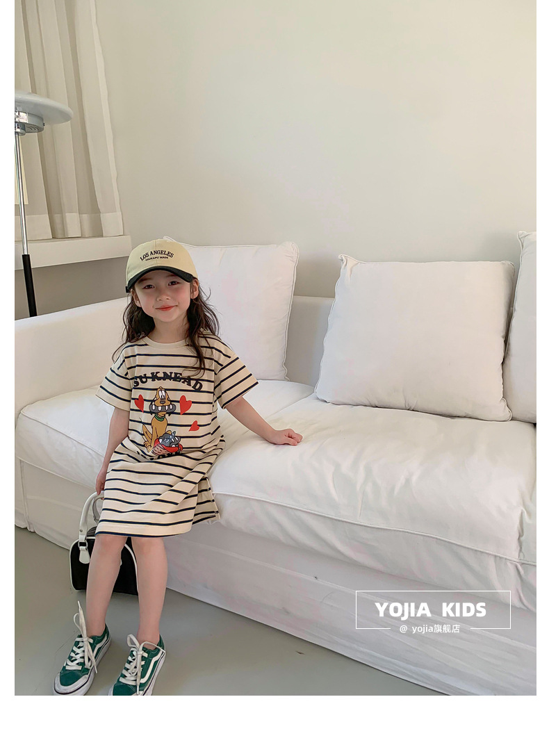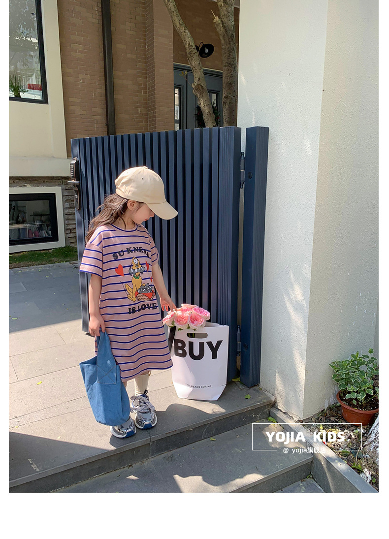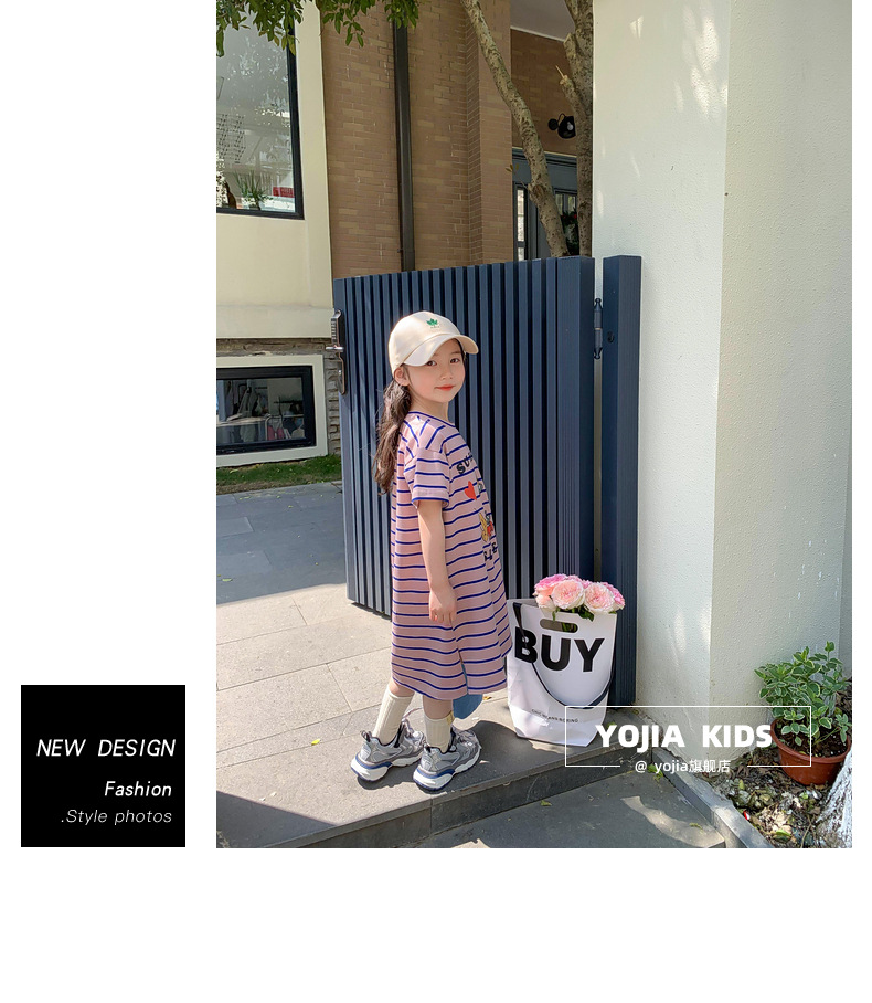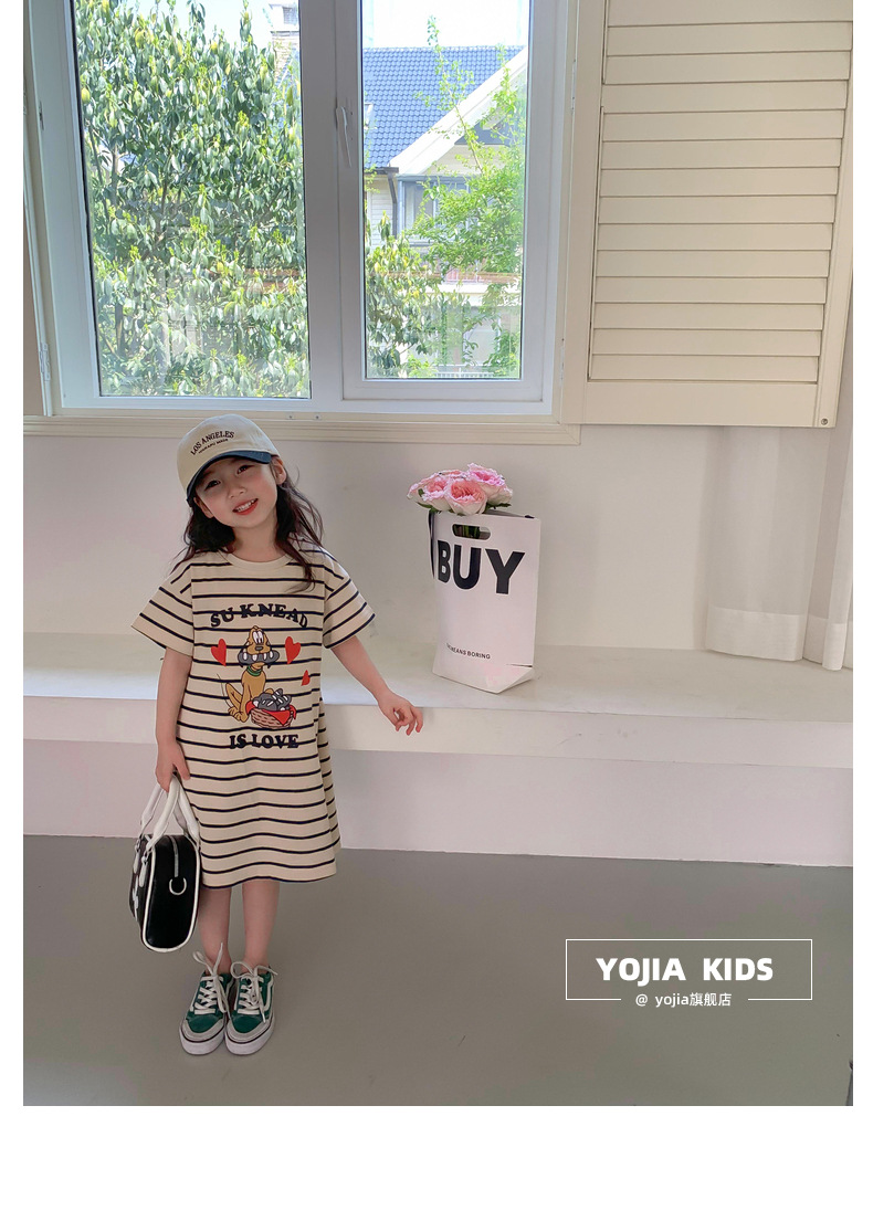 여자 스트라이프 원피스 여름 2023 새로운 서양 스타일 패션 아기 티셔츠 스커트 짧은 소매 캐주얼 어린이 스커트스토어 가기
