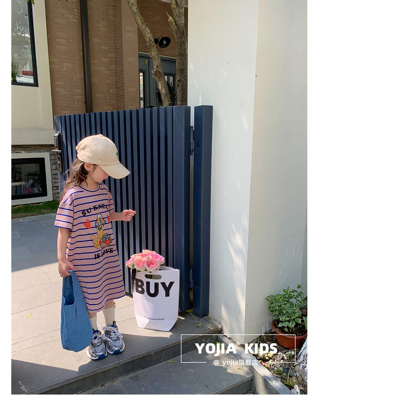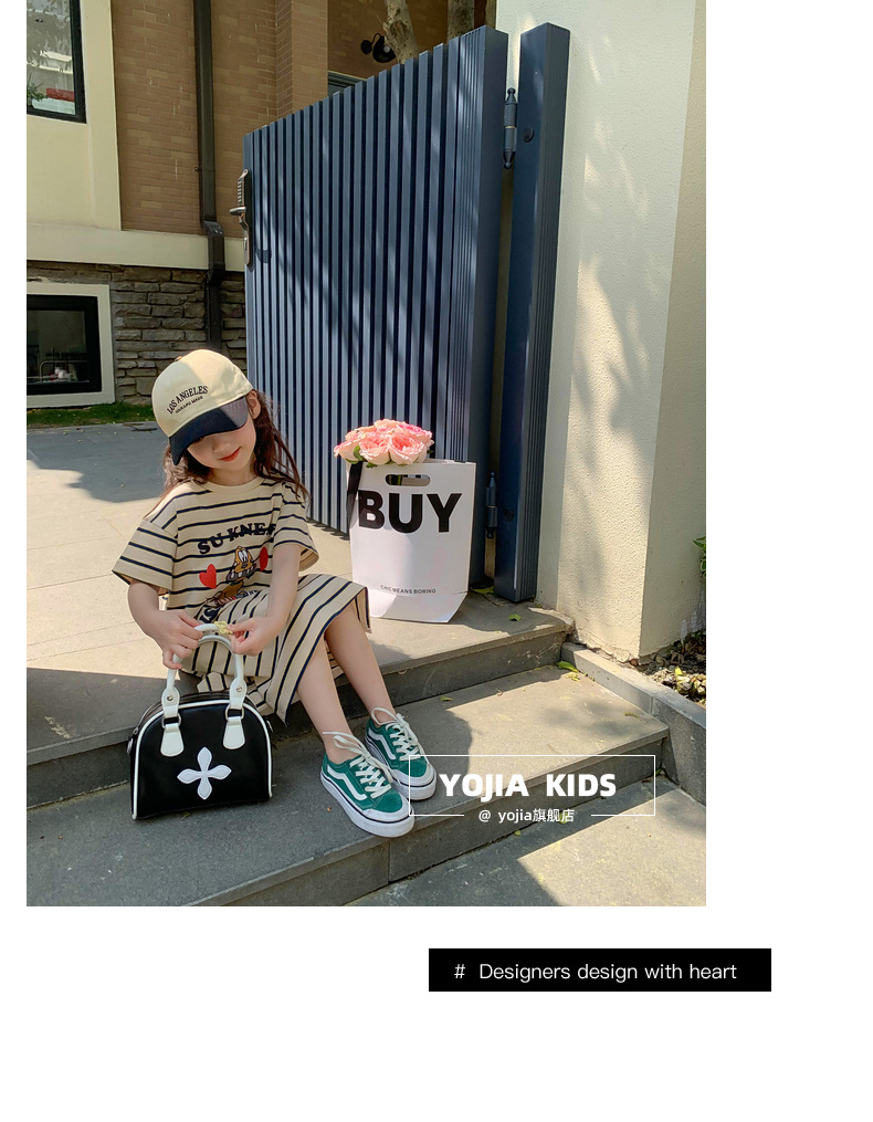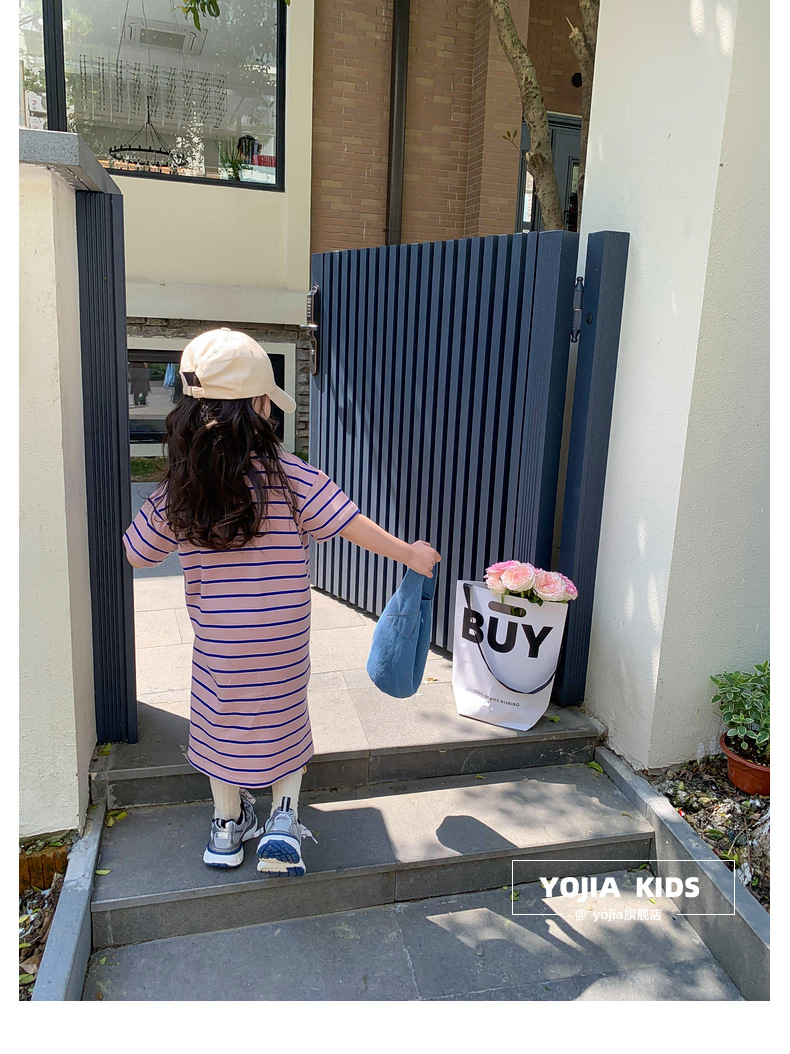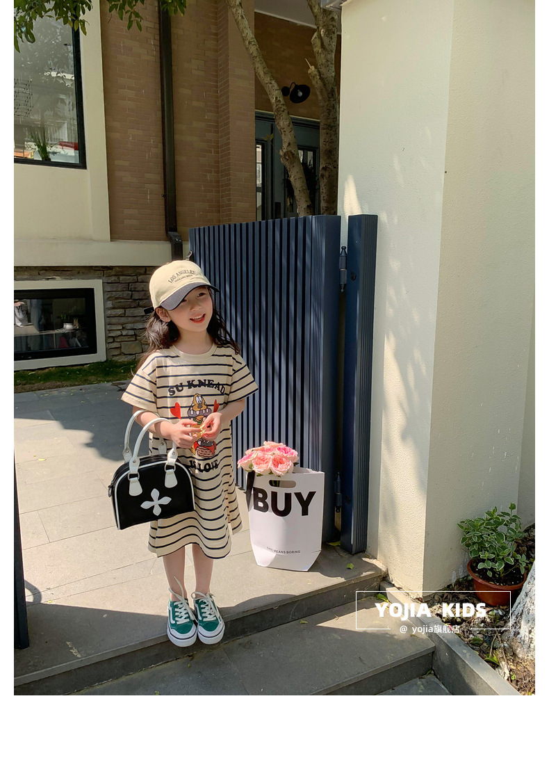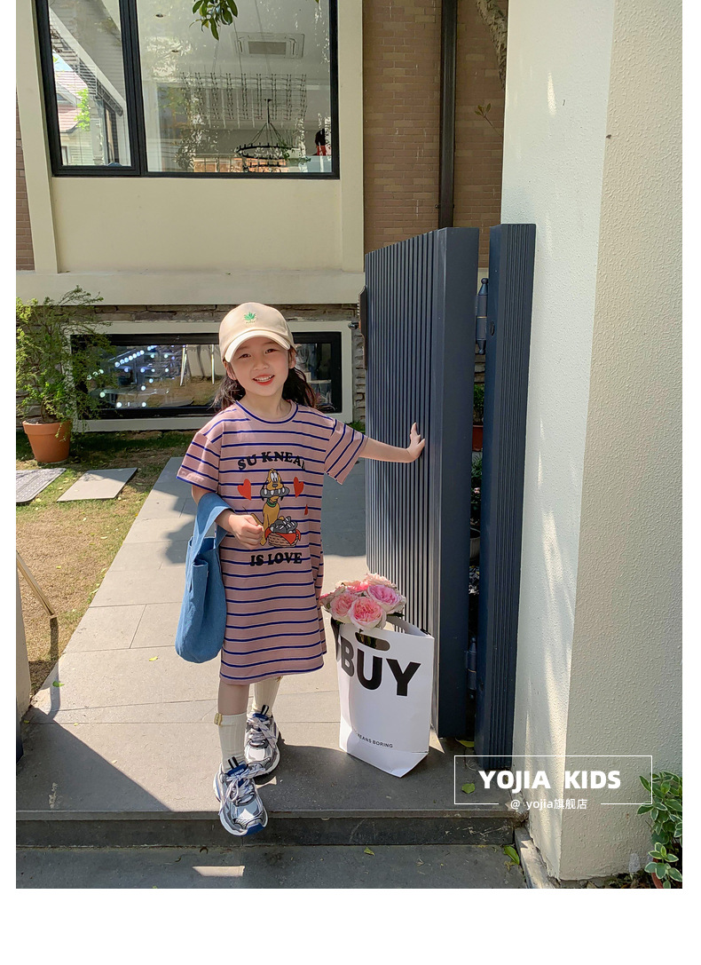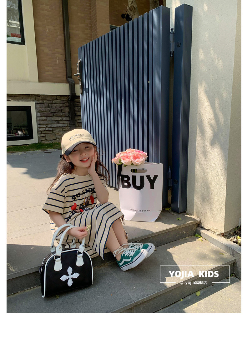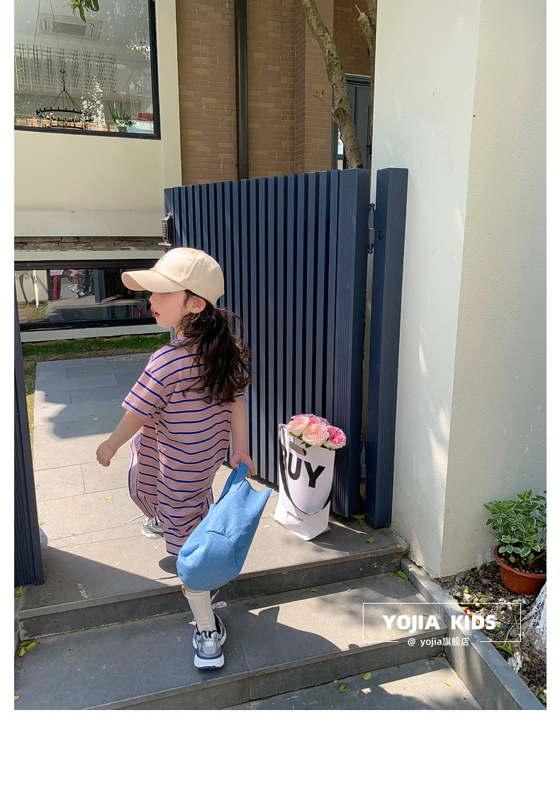 여자 스트라이프 원피스 여름 2023 새로운 서양 스타일 패션 아기 티셔츠 스커트 짧은 소매 캐주얼 어린이 스커트스토어 가기