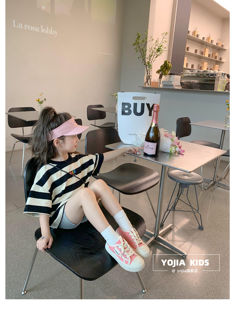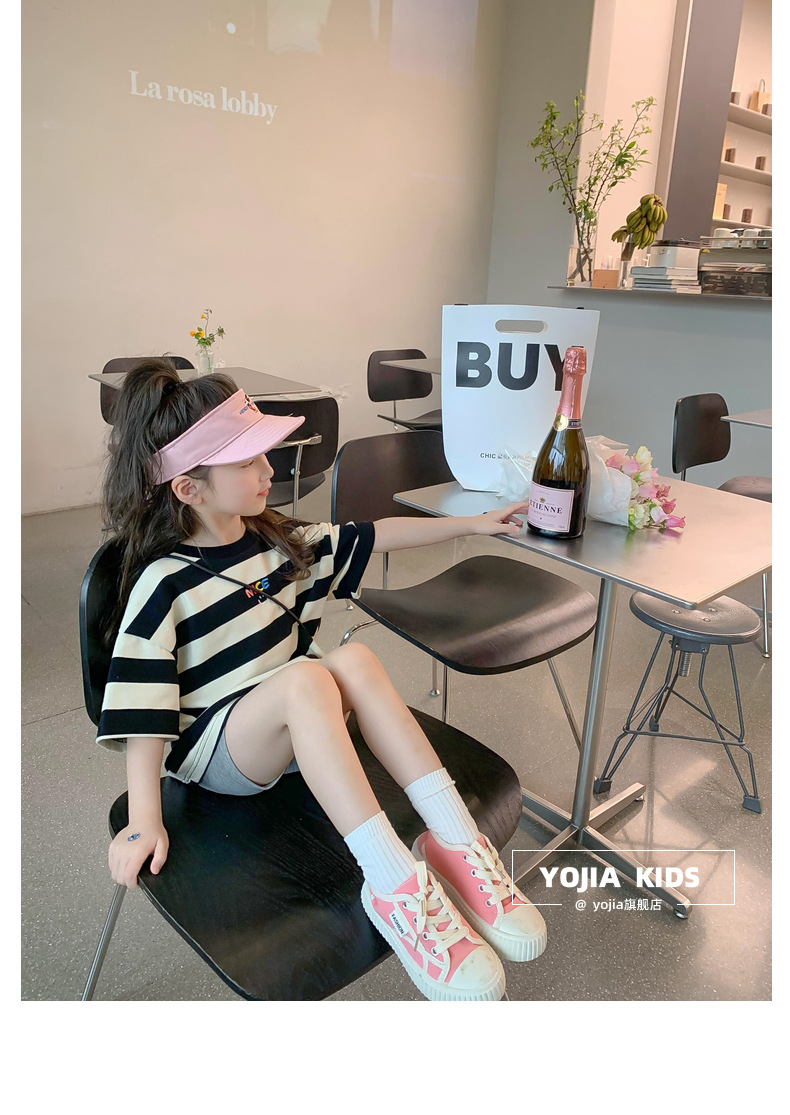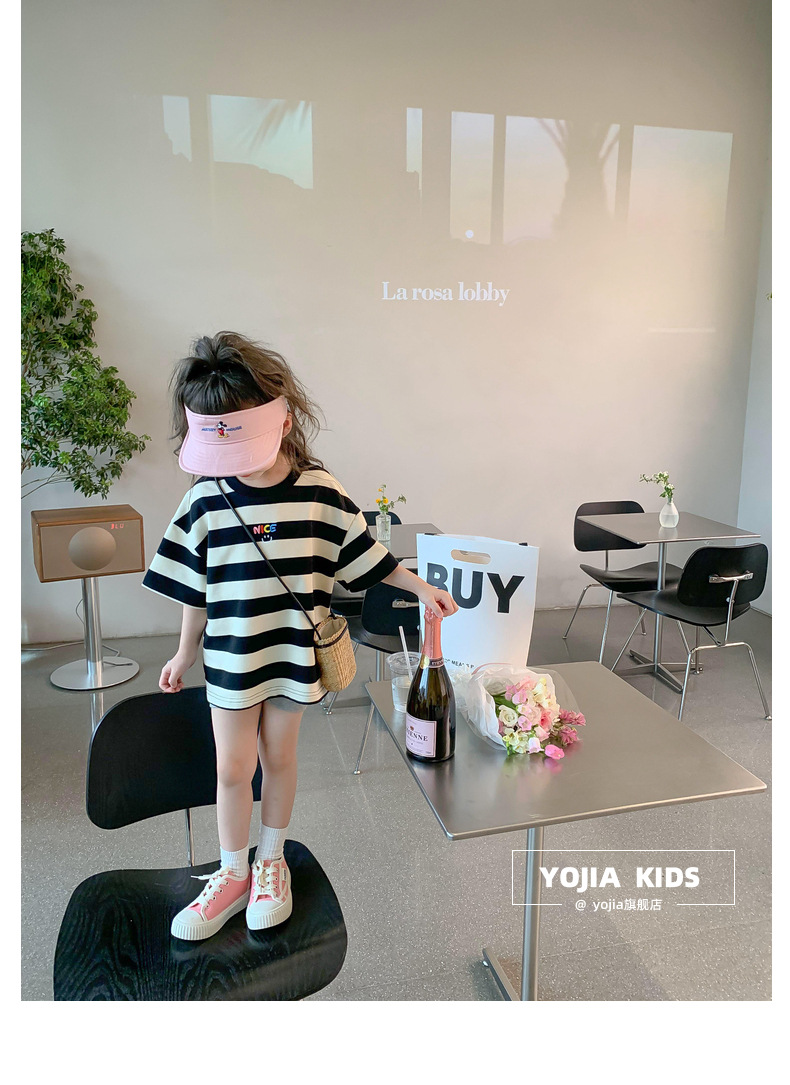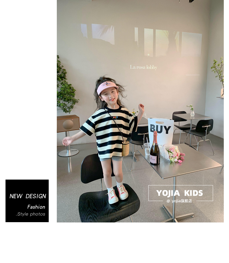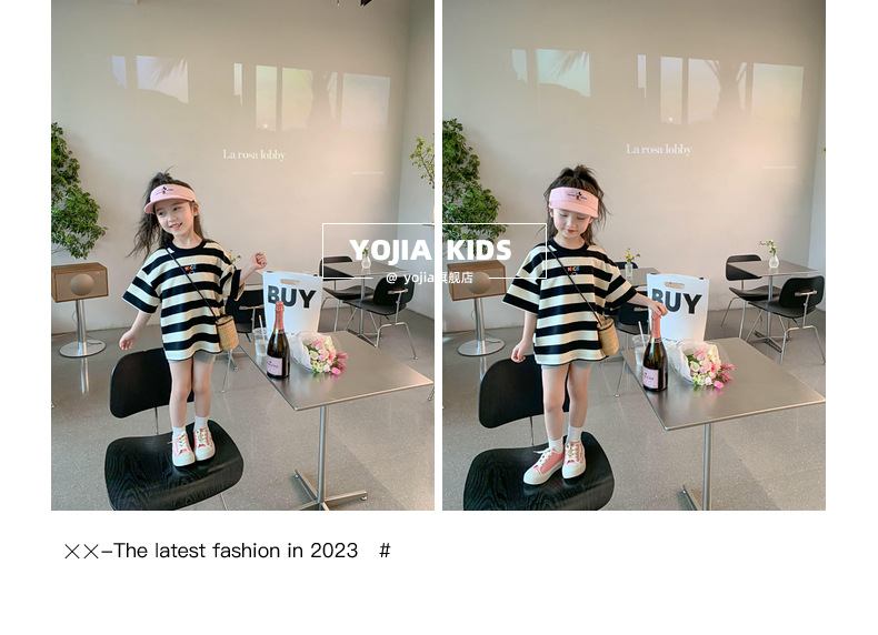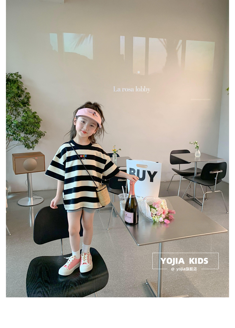 여자 여름 티셔츠 2023 여름 새로운 한국 스타일 여자 줄무늬 반팔 느슨한 어린이 여름 옷 한국 스타일 유행 어린이스토어 가기