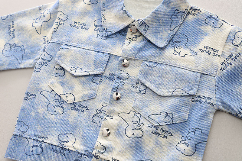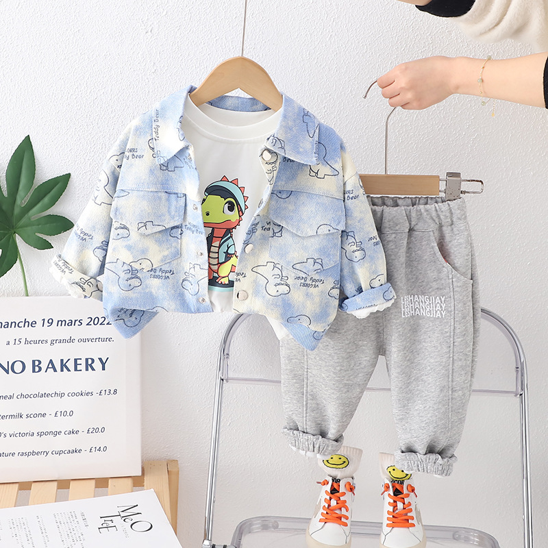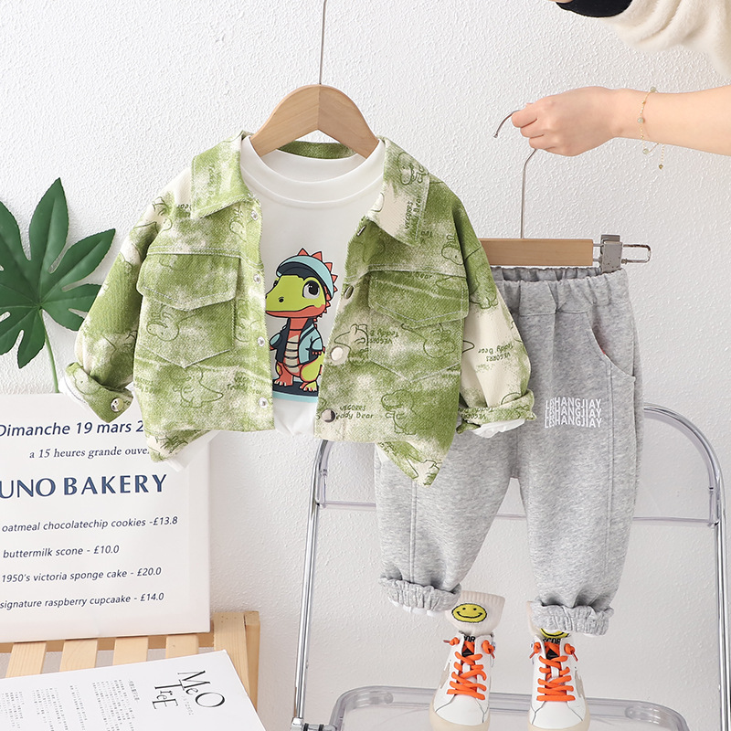 어린이 의류 2024 새로운 공룡 코트 캐주얼 유아 소년 봄 옷 3 피스 어린이 세트 세대 헤어스토어 가기