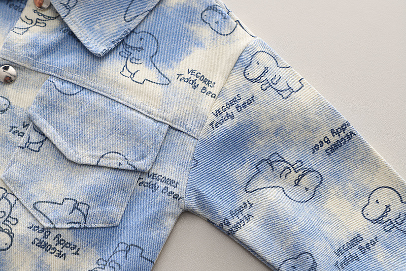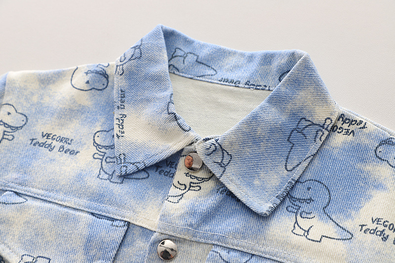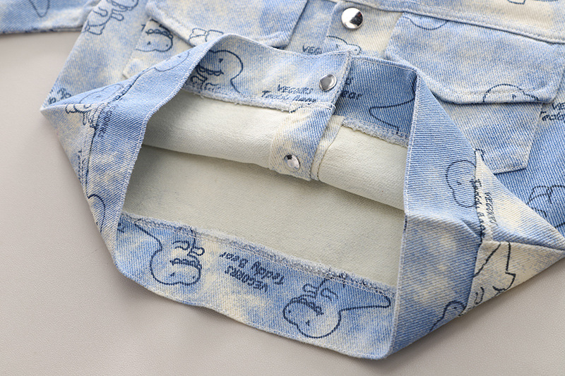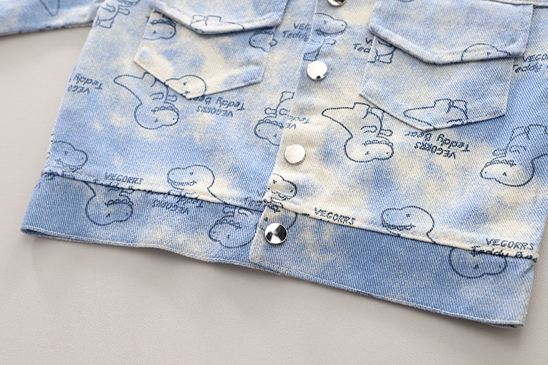 어린이 의류 2024 새로운 공룡 코트 캐주얼 유아 소년 봄 옷 3 피스 어린이 세트 세대 헤어