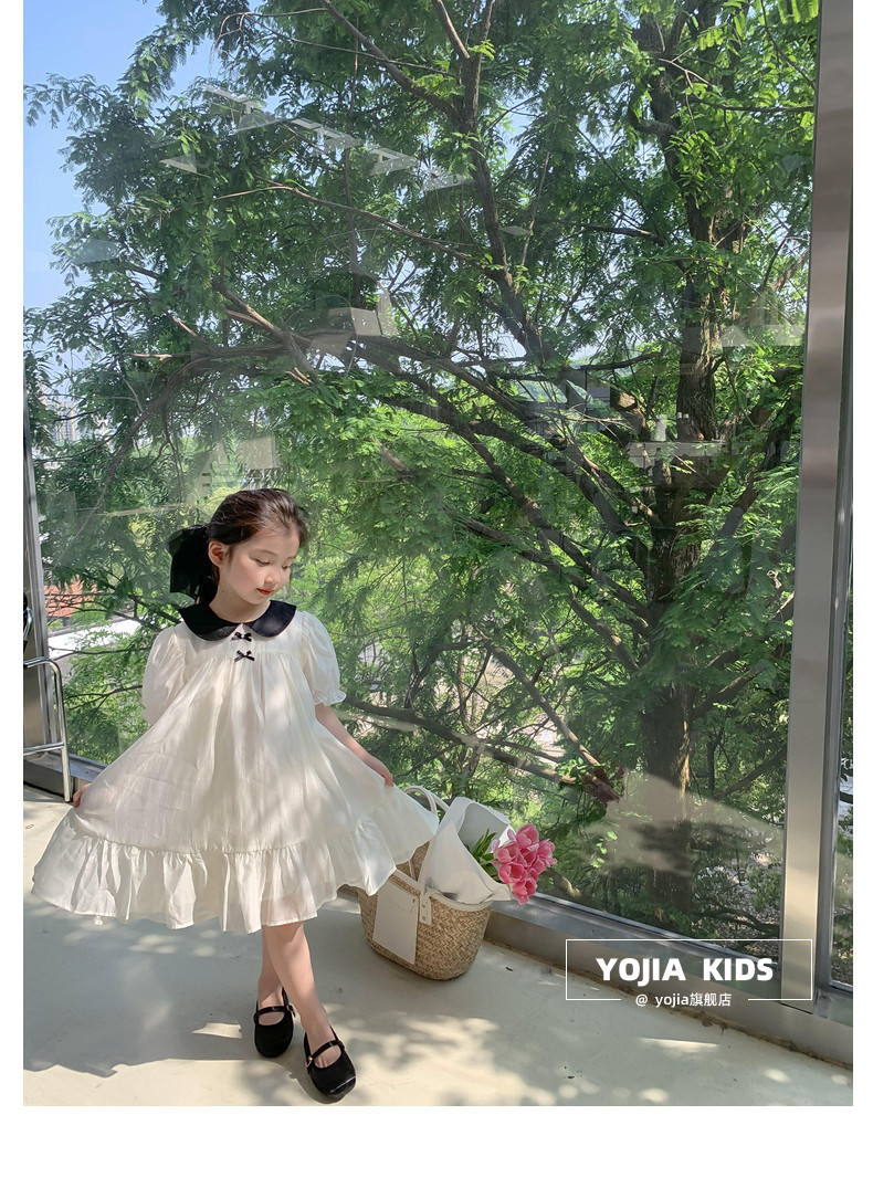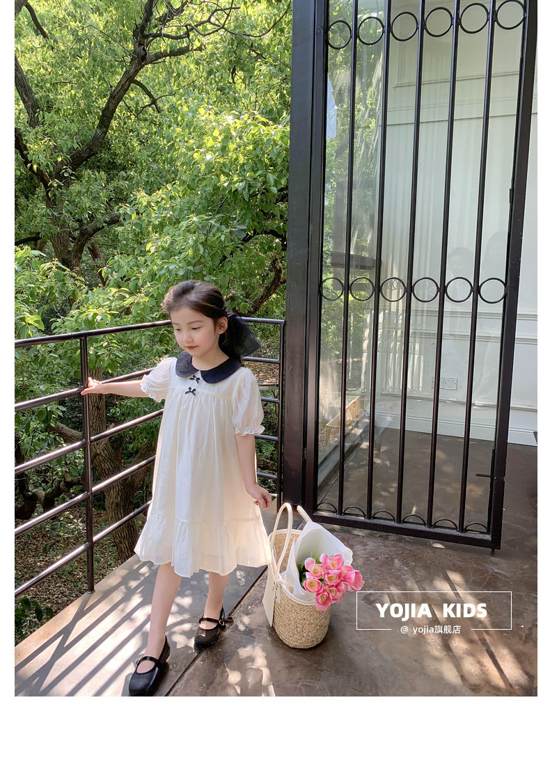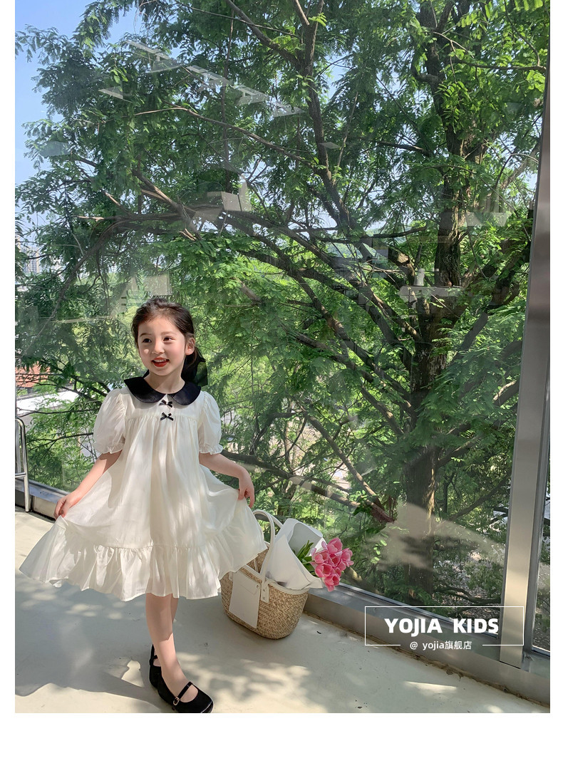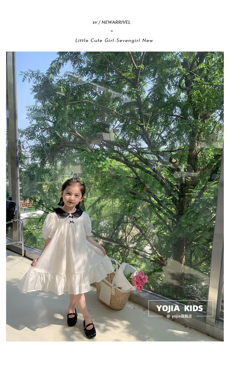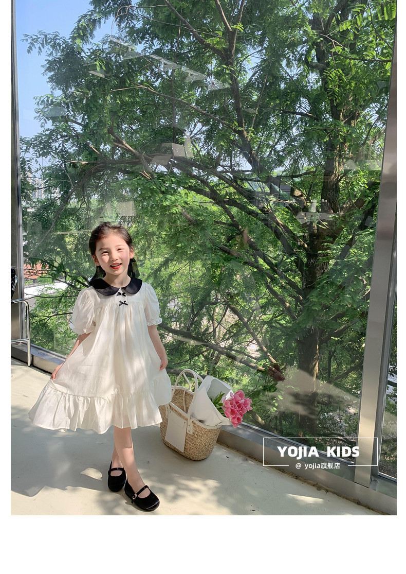• 짧은 소매 블랙 칼라 화이트 원피스