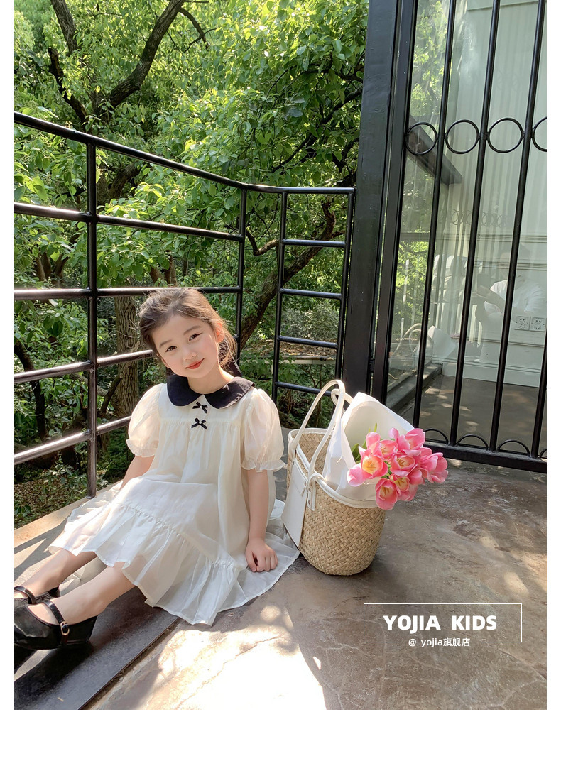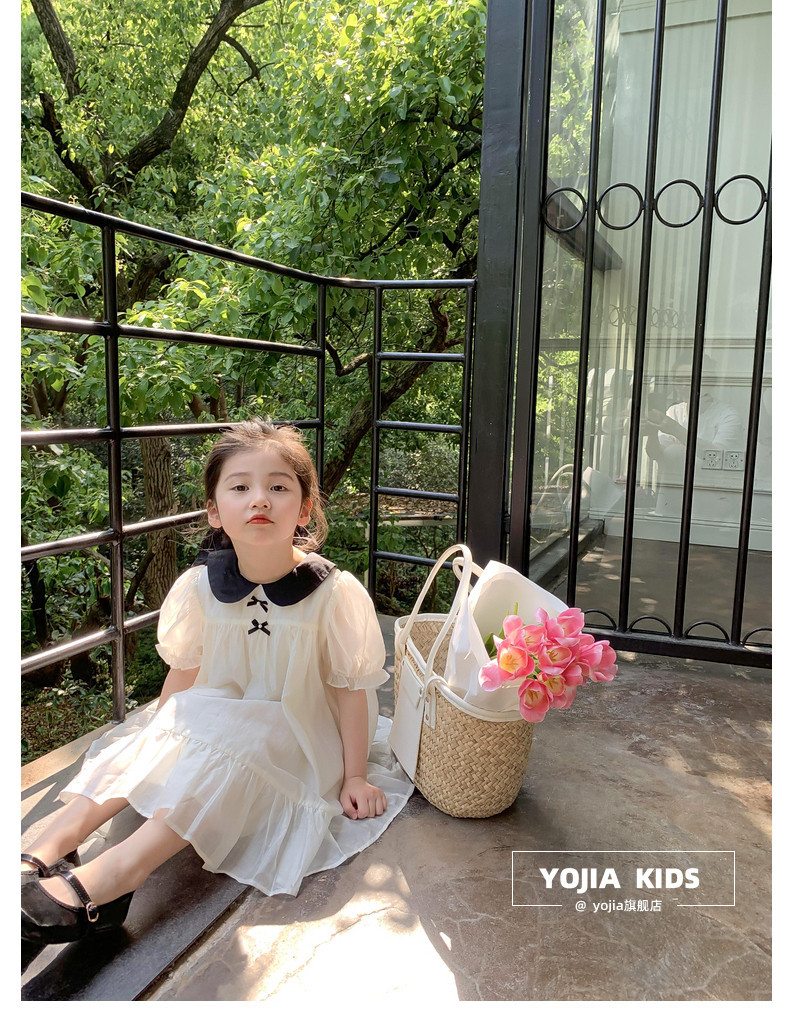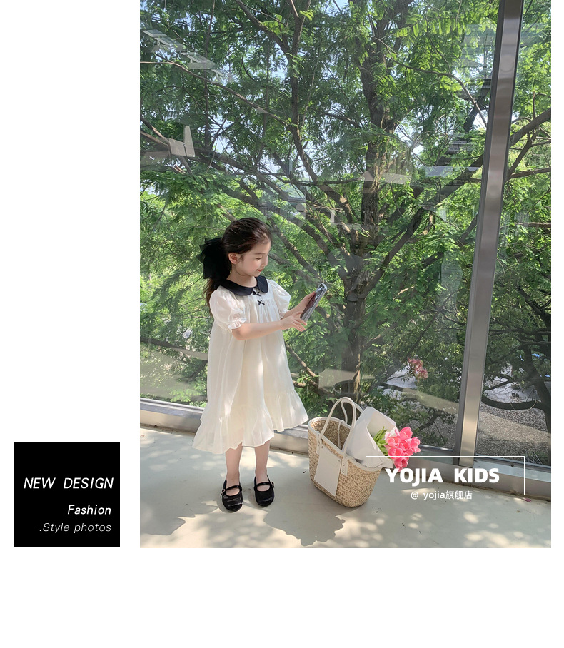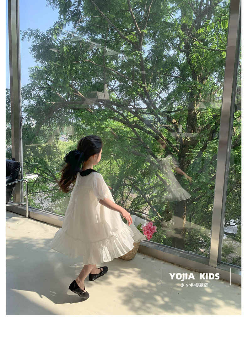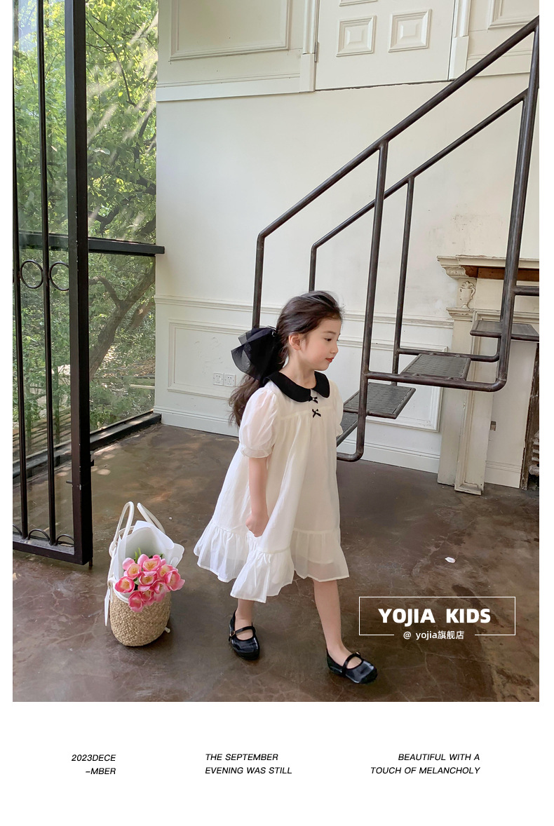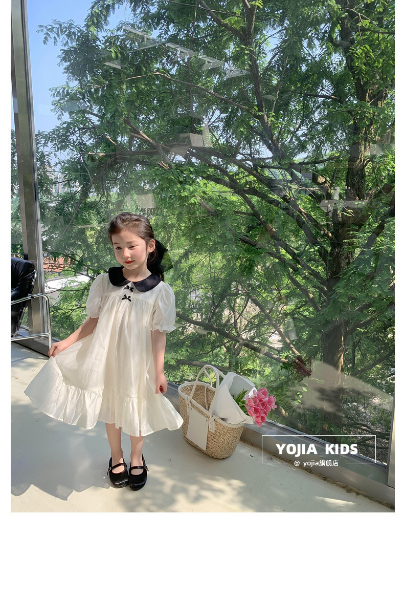 • 짧은 소매 블랙 칼라 화이트 원피스