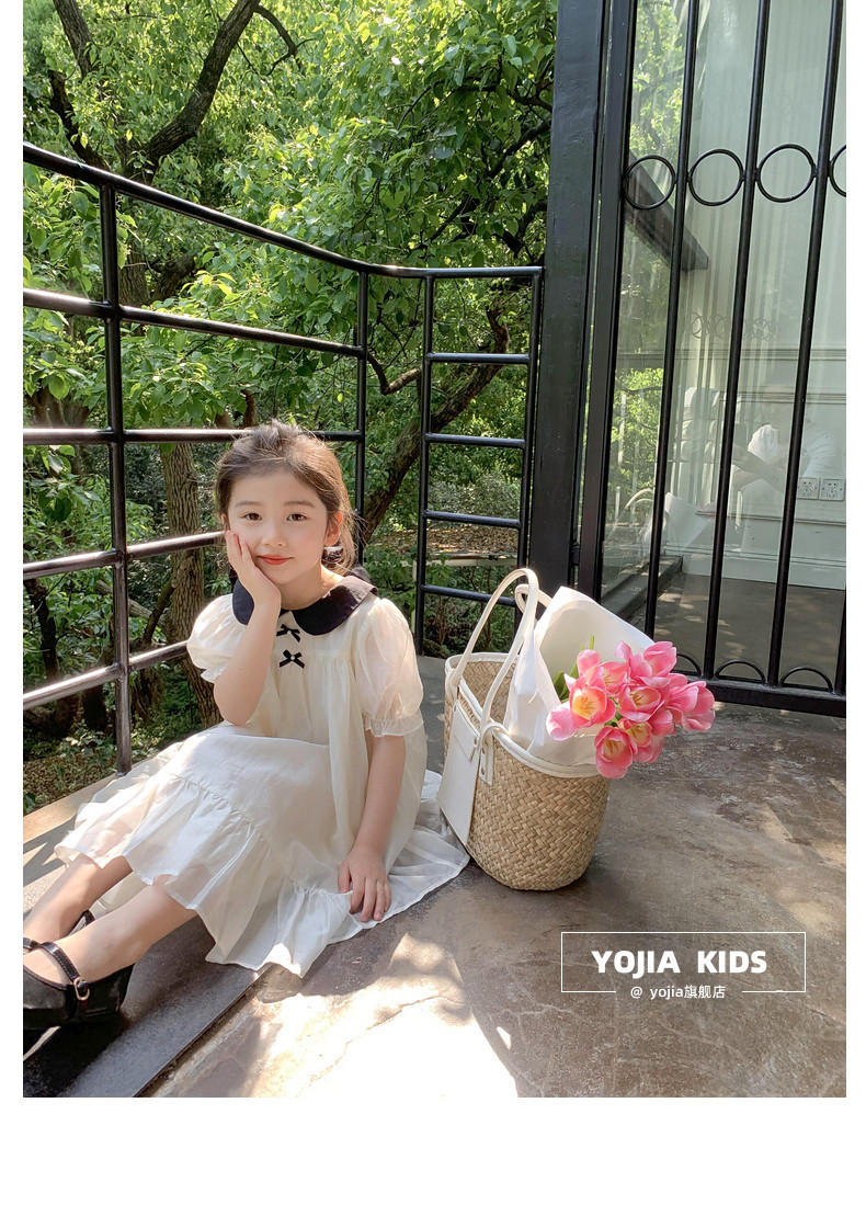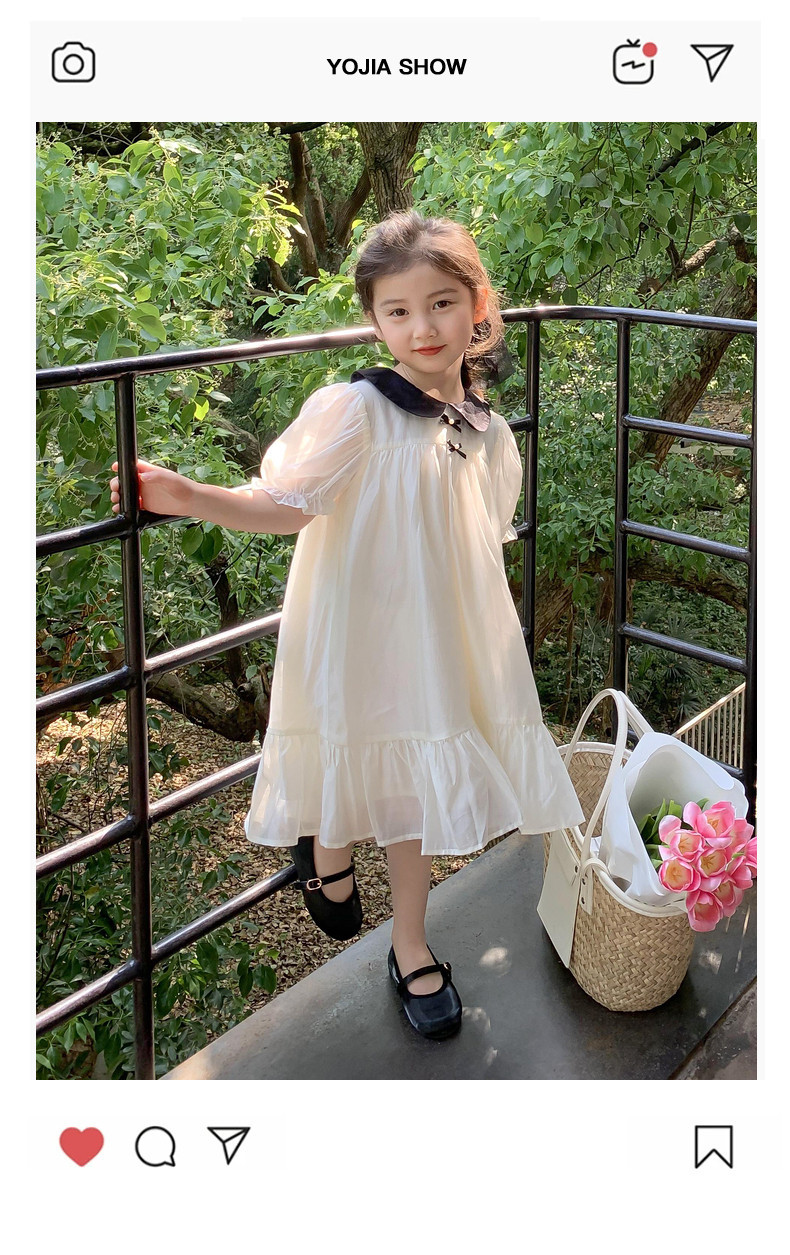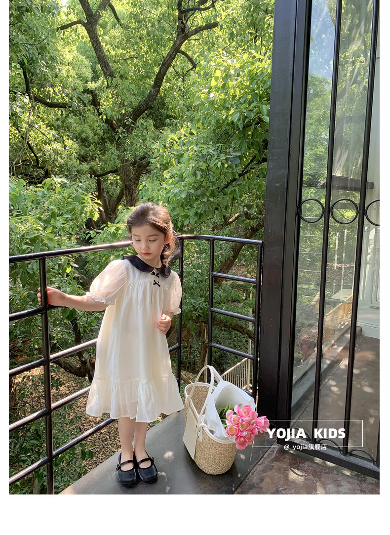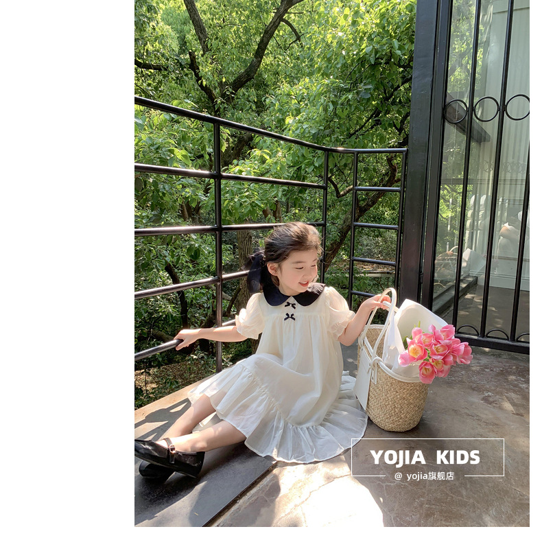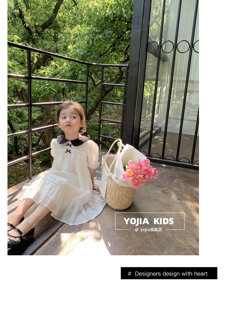 • 짧은 소매 블랙 칼라 화이트 원피스
