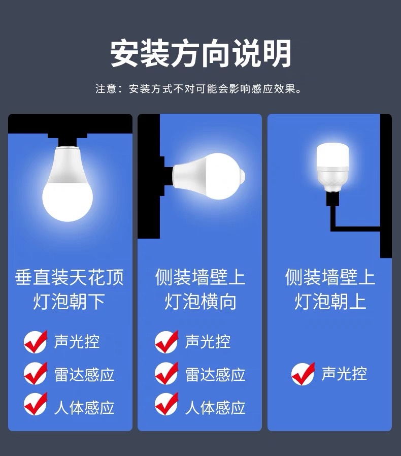LED 센서 램프 레이더 인체 센서 e27 나사 소켓 에너지 절약 전구 계단 복도 복도 적외선 전구