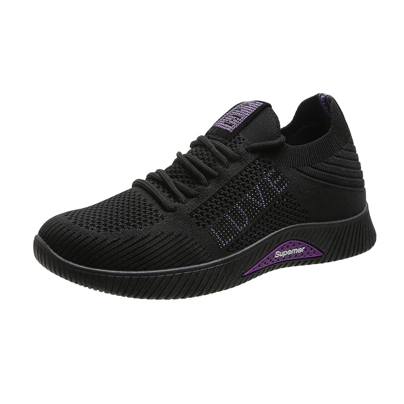 2024 봄과 가을 새로운 운동화 여성 캐주얼 비행 짠 두꺼운 바닥 투명 평면 흰색 부드러운 바닥 편안한 춤 신발