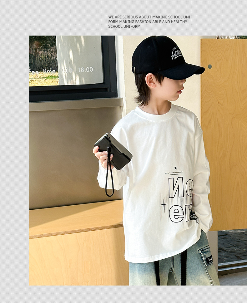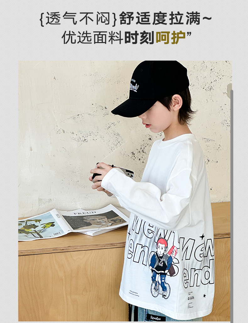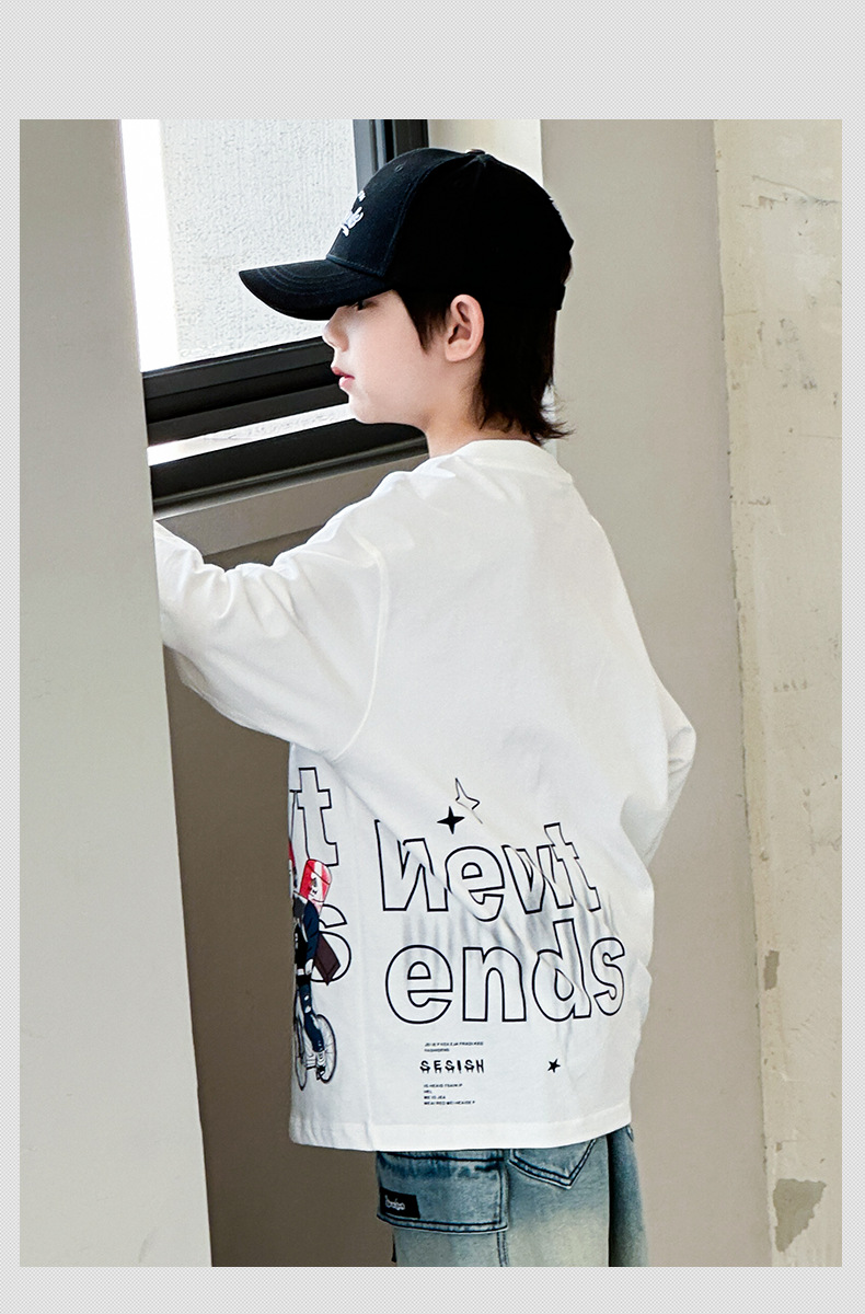 소년 긴팔 티셔츠 봄, 가을 2025 새로운 어린이 봄 바닥 셔츠 중형 및 대형 어린이 봄 얇은 스웨트 셔츠 트렌드스토어 가기