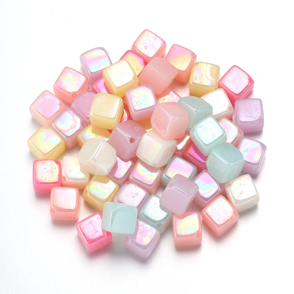 아크릴 사각 비즈 컬러 도금 젤리색 사각 비즈 사선 구멍 비즈 DIY 액세서리 핸드폰 줄 사각 루즈 비즈