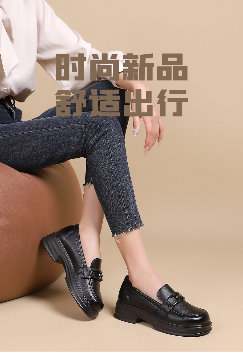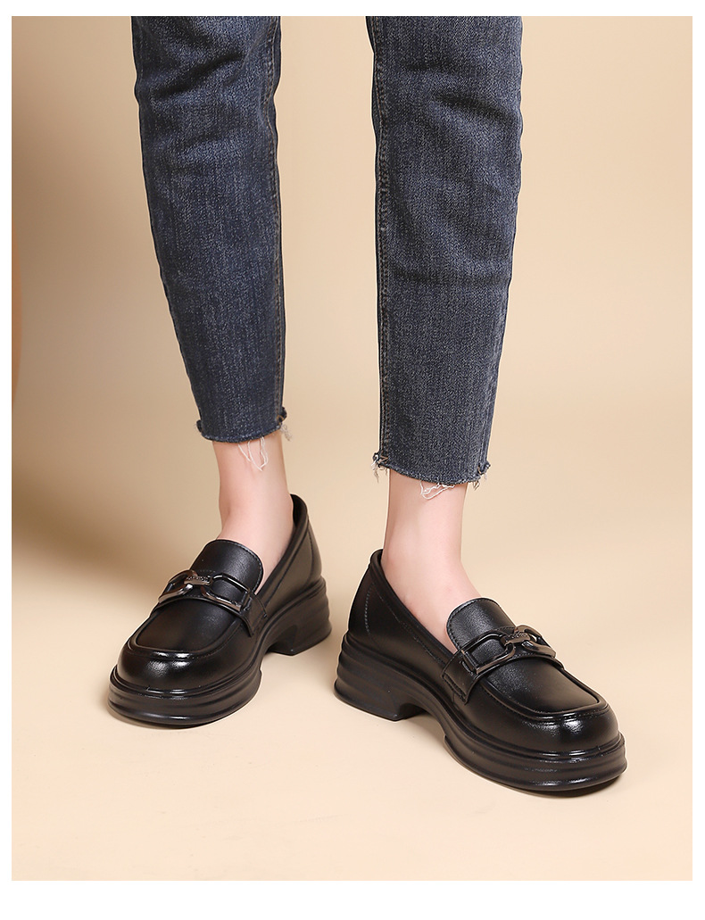 2024 새로운 영국 프레피 스타일 여성 로퍼 캐주얼 여성 신발 여성용 두꺼운 밑창 편안한 싱글 레이어 신발 슬립 온 가죽 신발스토어 가기