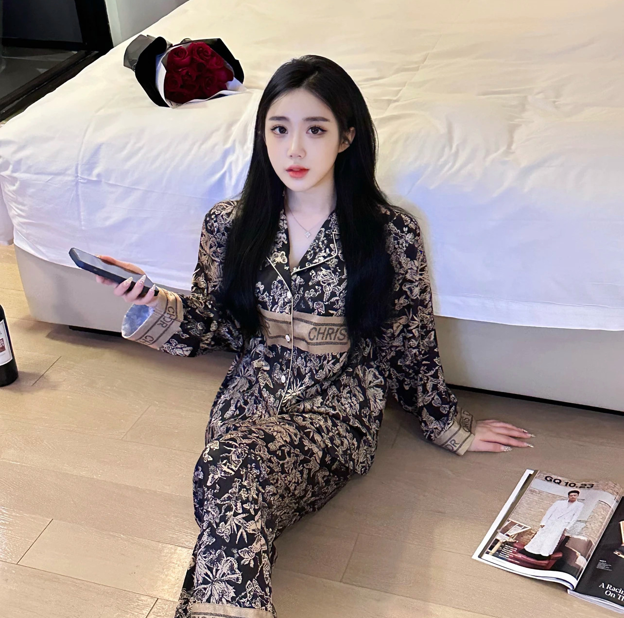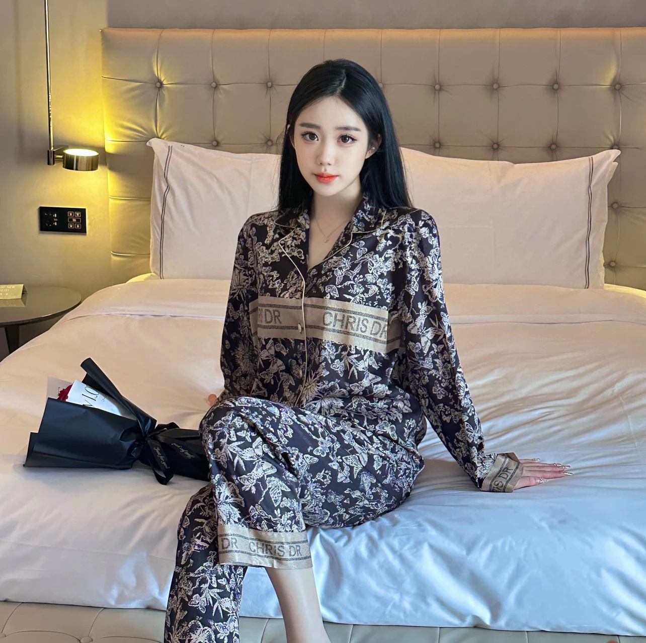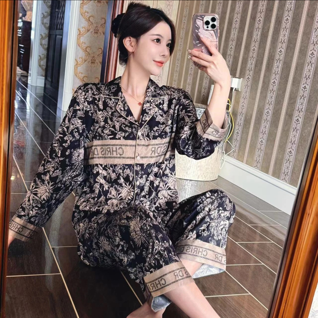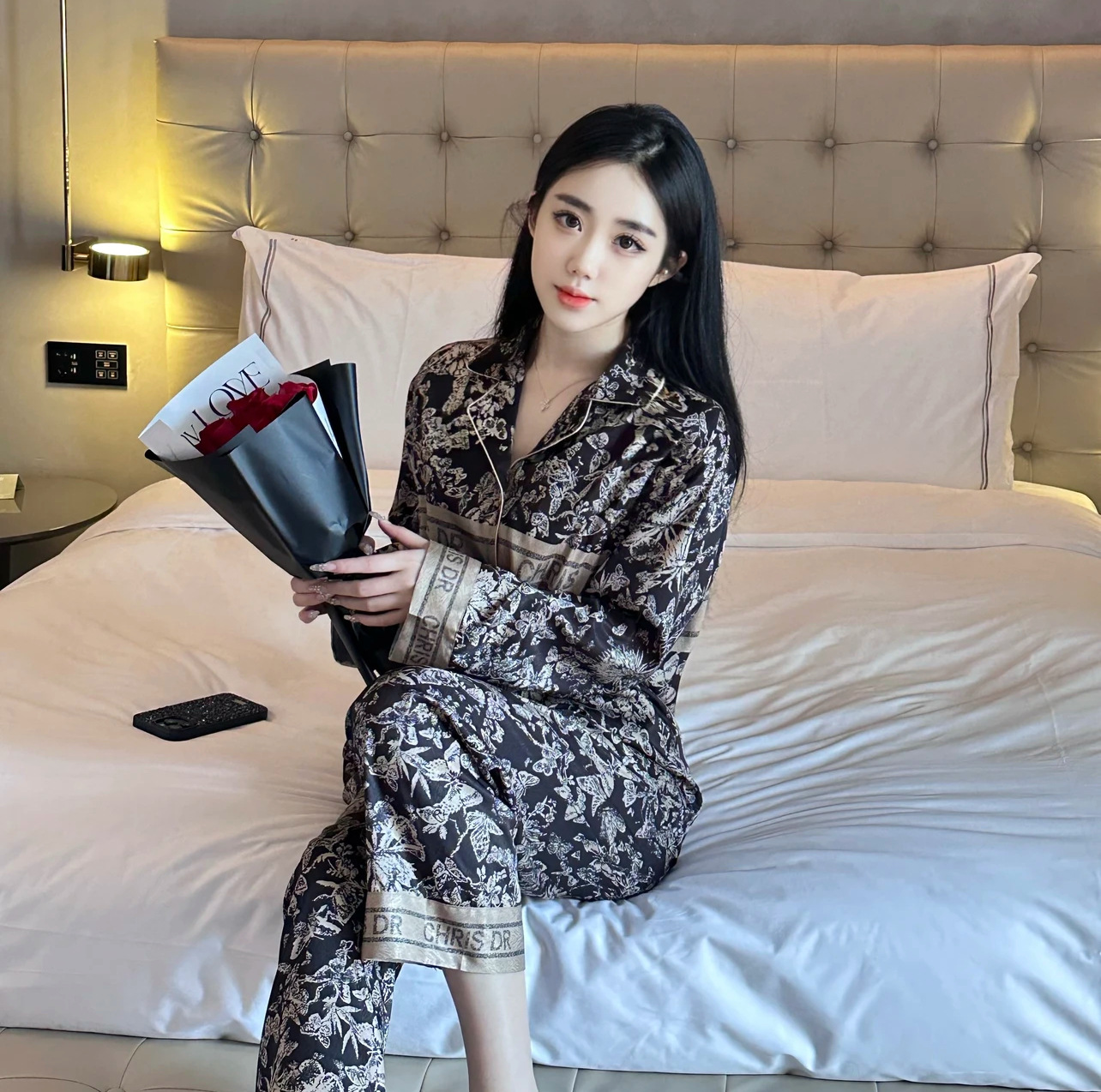 블랙 골드 리미티드 에디션 패션 인쇄 하이 엔드 홈웨어 봄과 여름 새로운 잠옷 아이스 실크 럭셔리 온라인 유명 인사 TikTok스토어 가기