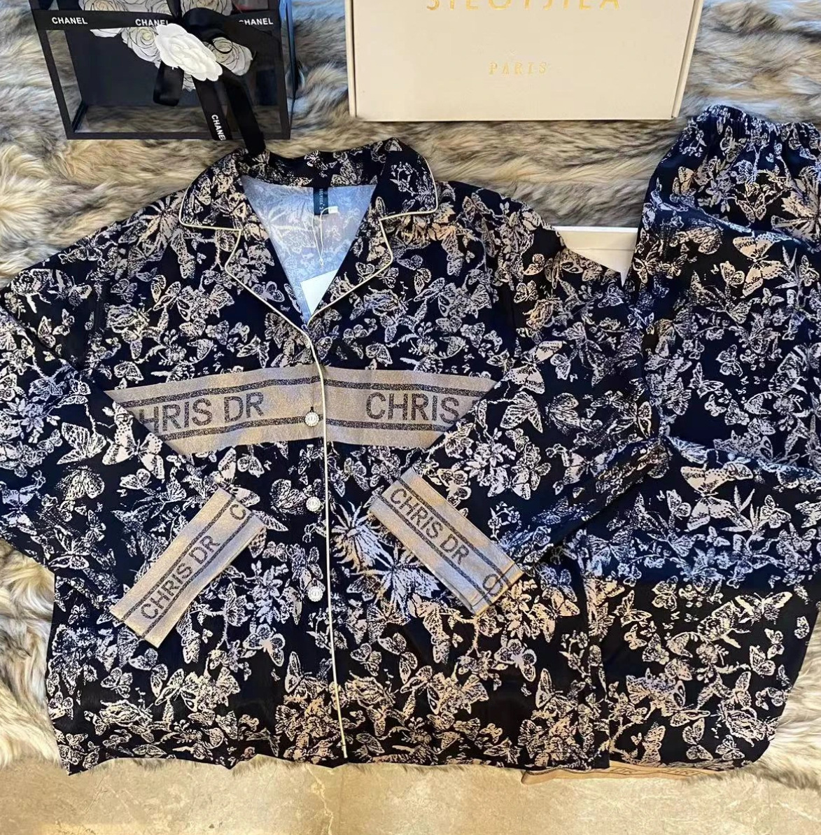 블랙 골드 리미티드 에디션 패션 인쇄 하이 엔드 홈웨어 봄과 여름 새로운 잠옷 아이스 실크 럭셔리 온라인 유명 인사 TikTok