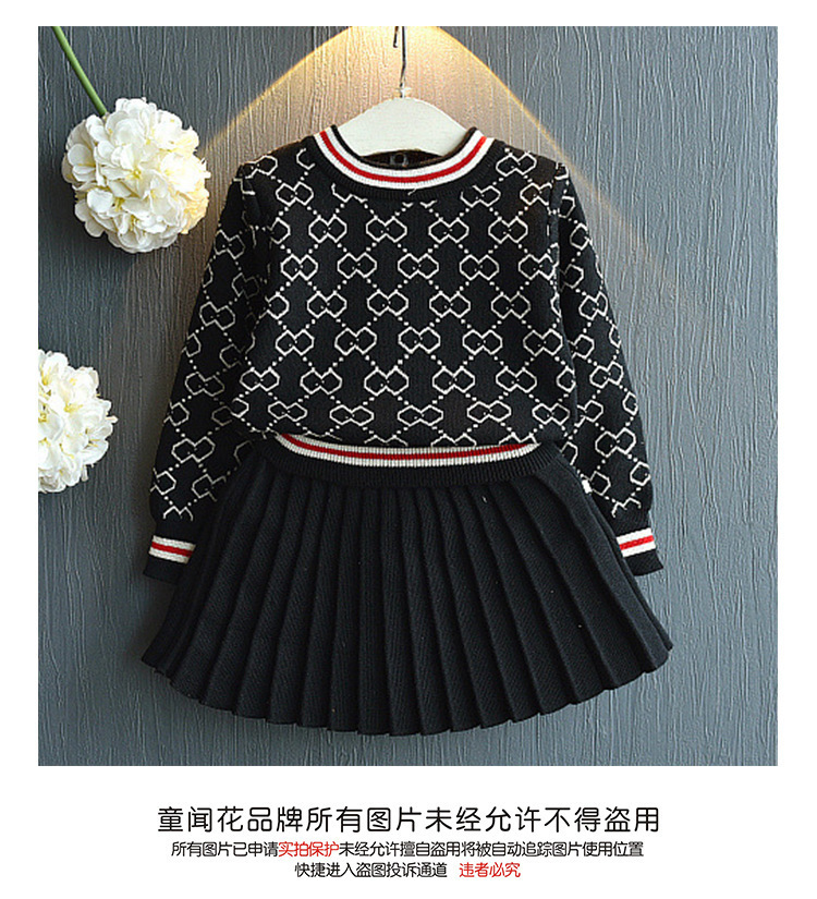 2024 봄과 가을 새로운 한국식 소녀 세트 올 매치 스웨터 탑 주름 미니 스커트 투피스 세트스토어 가기