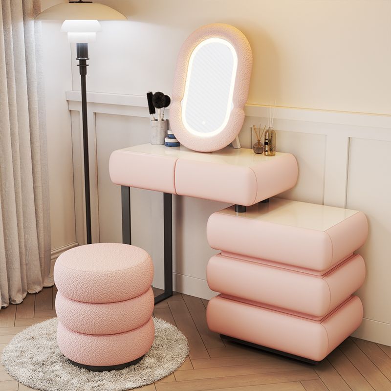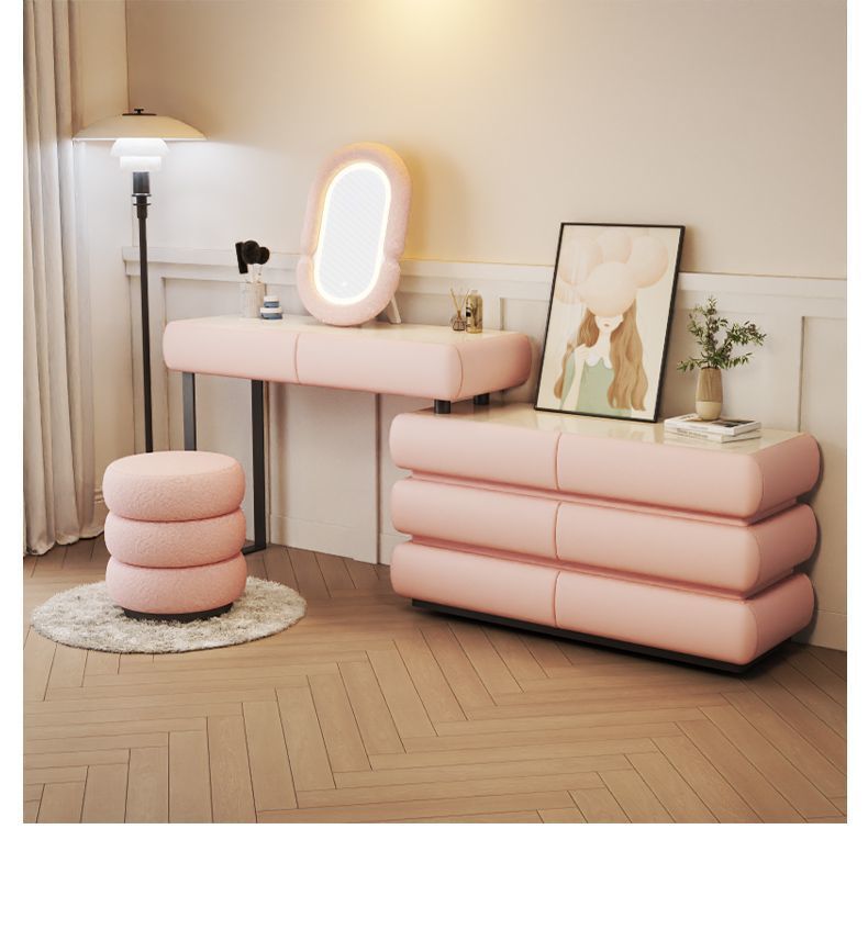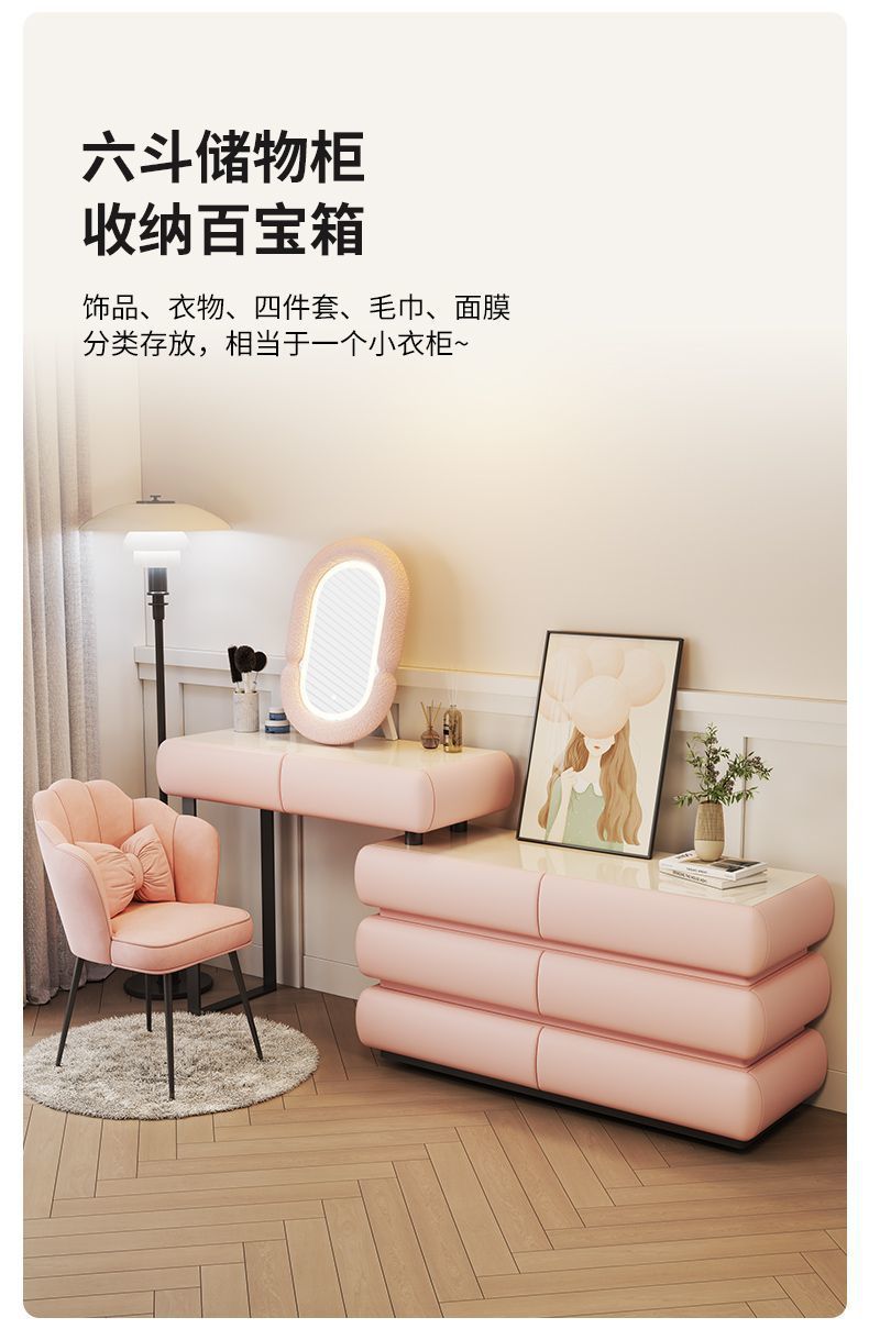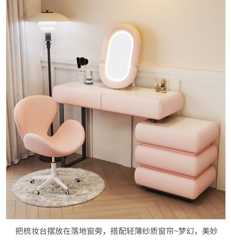 단단한 나무 고급 드레싱 테이블 침실 보관 서랍장 통합 현대적인 미니멀 한 암판 작은 아파트 메이크업 테이블 핑크