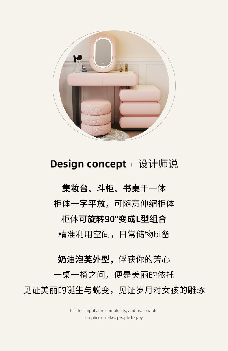 • 100.11cm 테이블 + 캐비닛 + 미러 + DD 의자