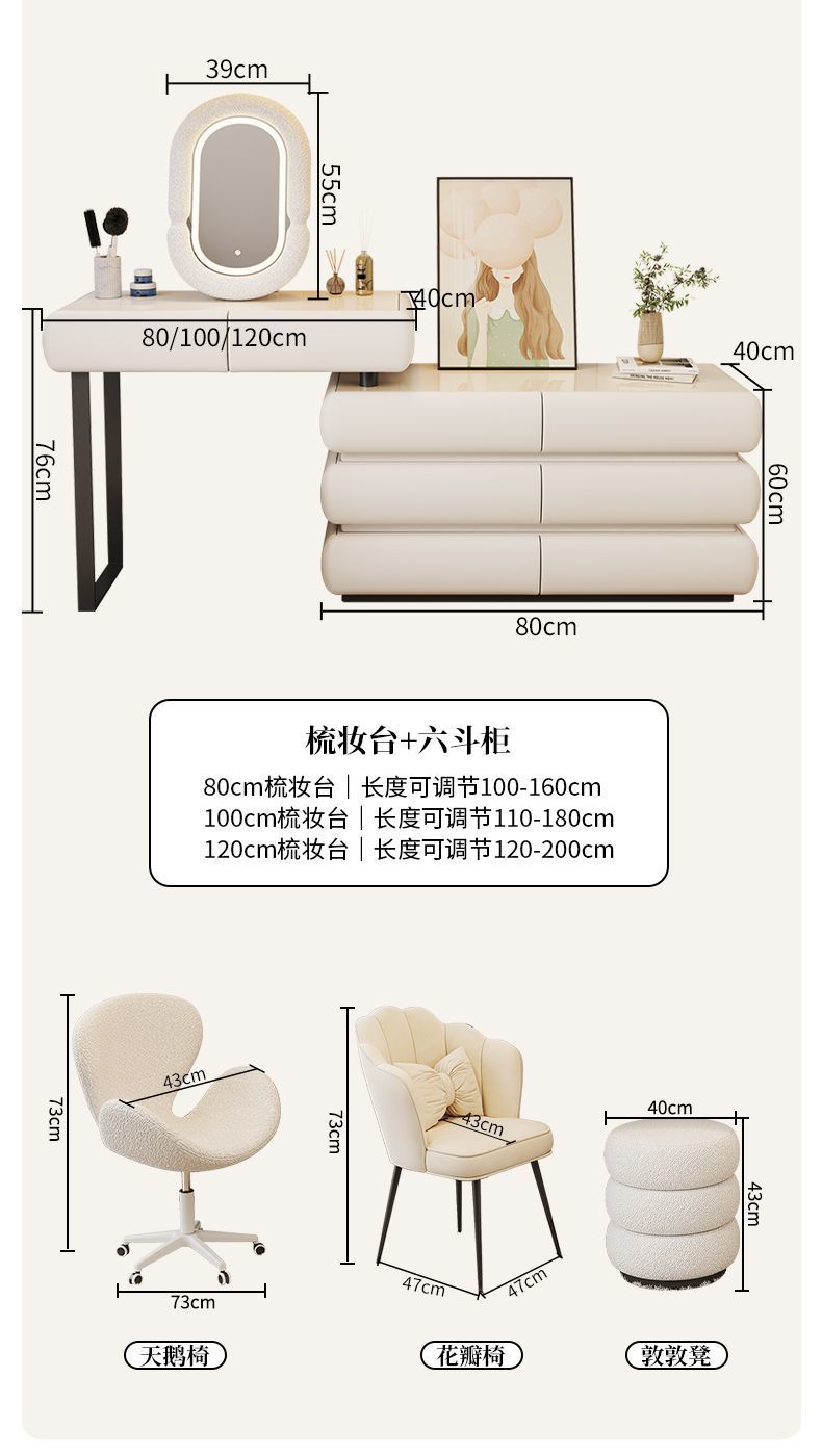 • 100.11cm 테이블 + 캐비닛 + 거울 + 꽃잎 의자