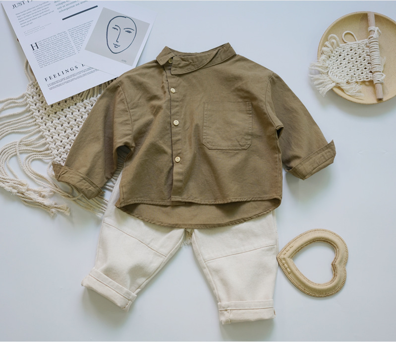 2026년 봄 신상 아동 셔츠, 남아용 긴팔 상의, 한국 스타일 라펠, 단색, 다용도, 여아용 셔츠, 재고 있음스토어 가기