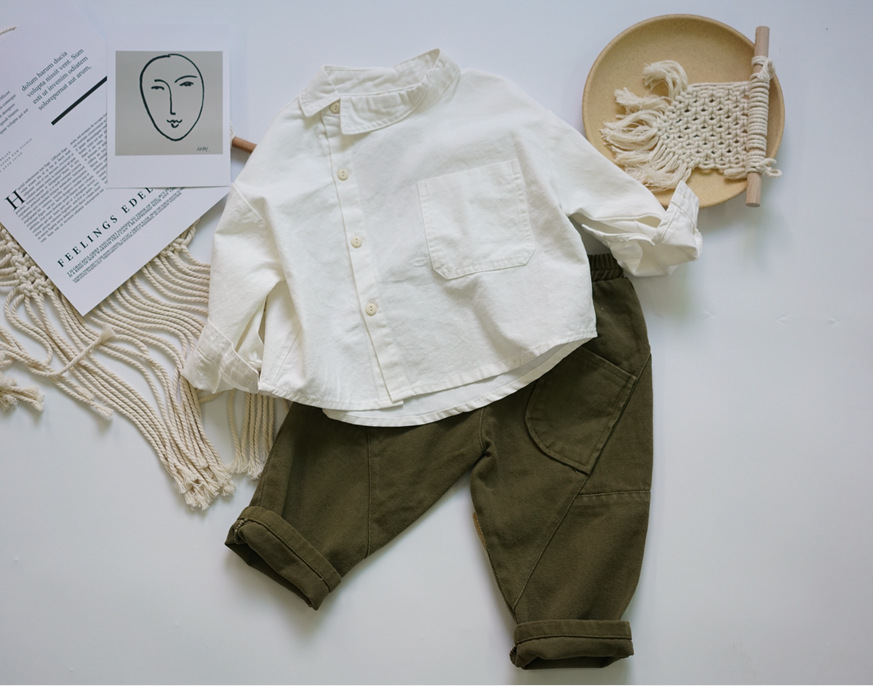 2026년 봄 신상 아동 셔츠, 남아용 긴팔 상의, 한국 스타일 라펠, 단색, 다용도, 여아용 셔츠, 재고 있음