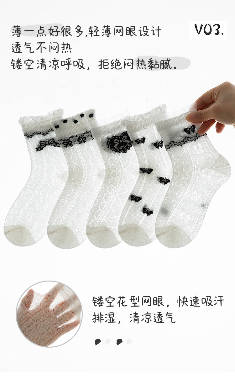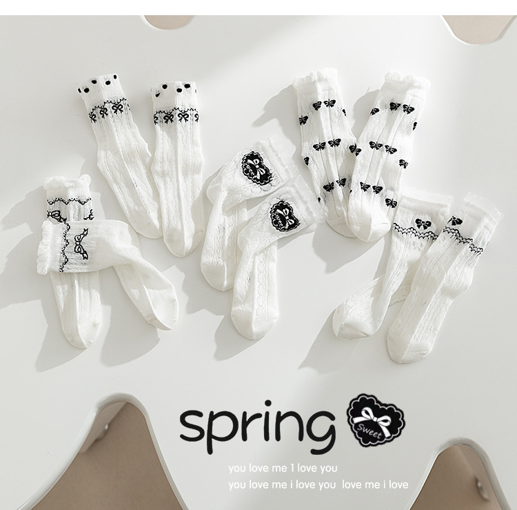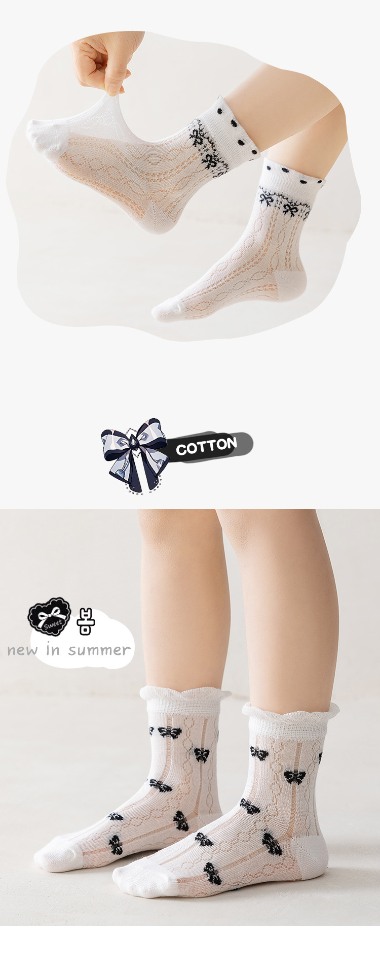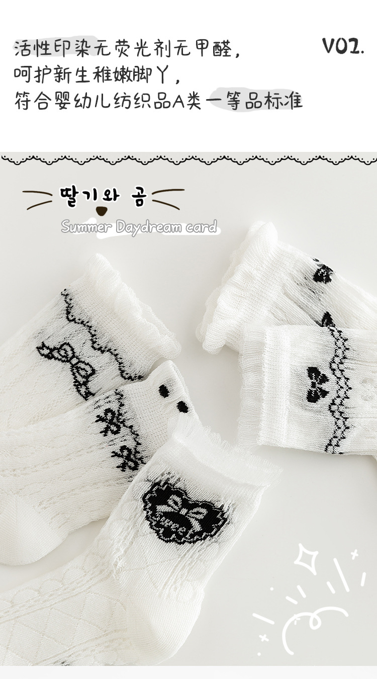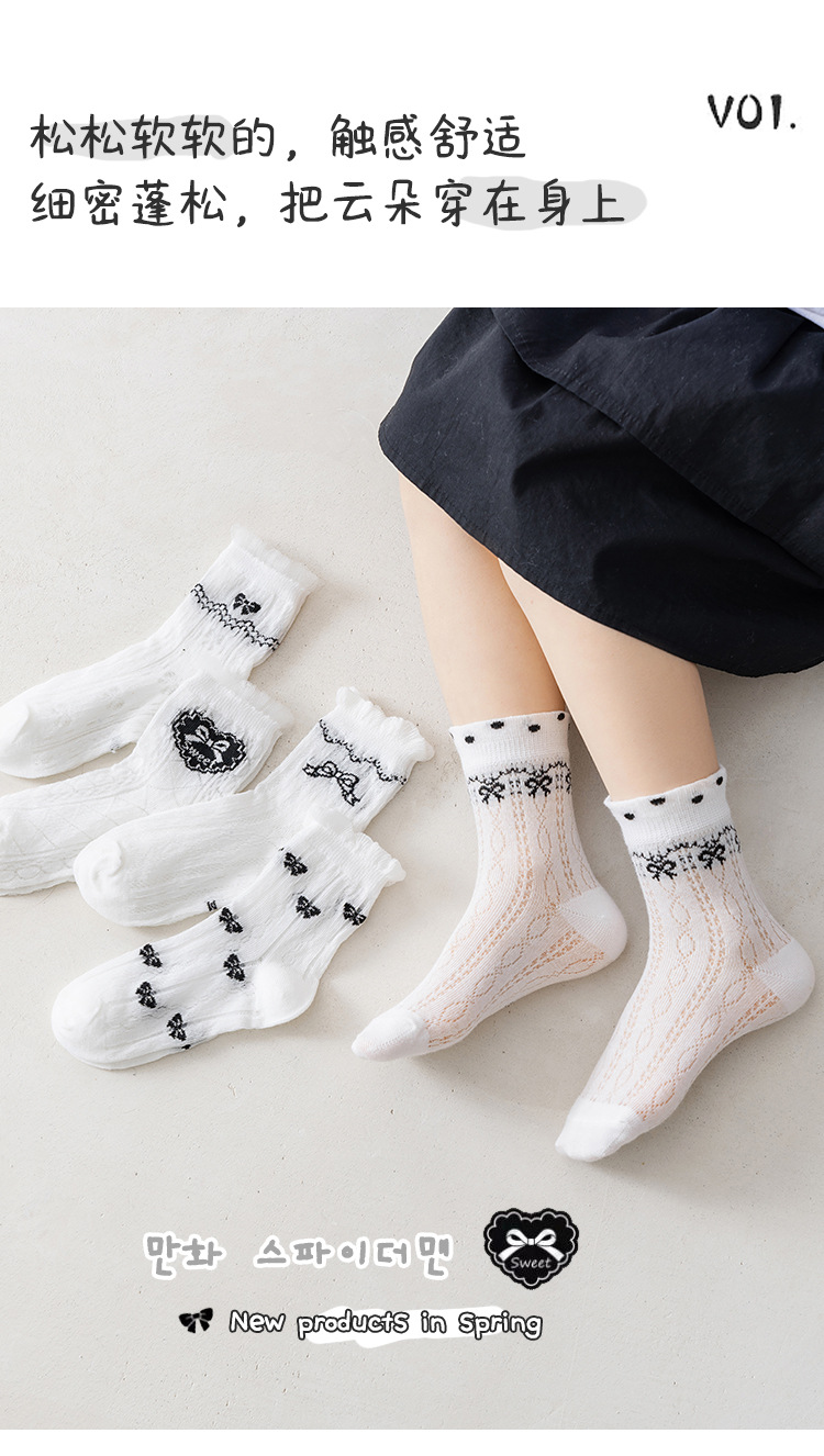 봄과 여름 얇은 면 어린이 양말 로리타 소녀 양말 편안하고 통기성이 좋은 흰색 아기 양말 고탄력 메쉬 양말