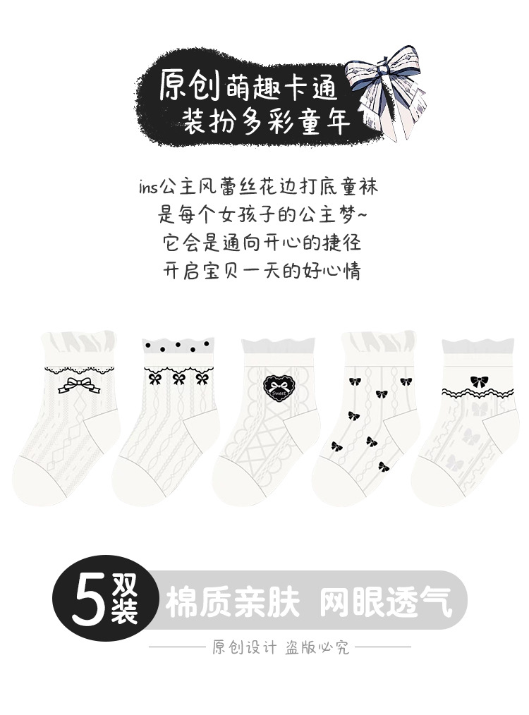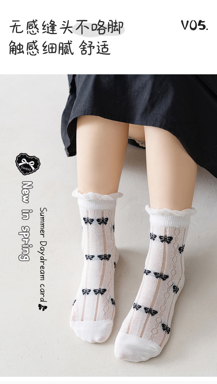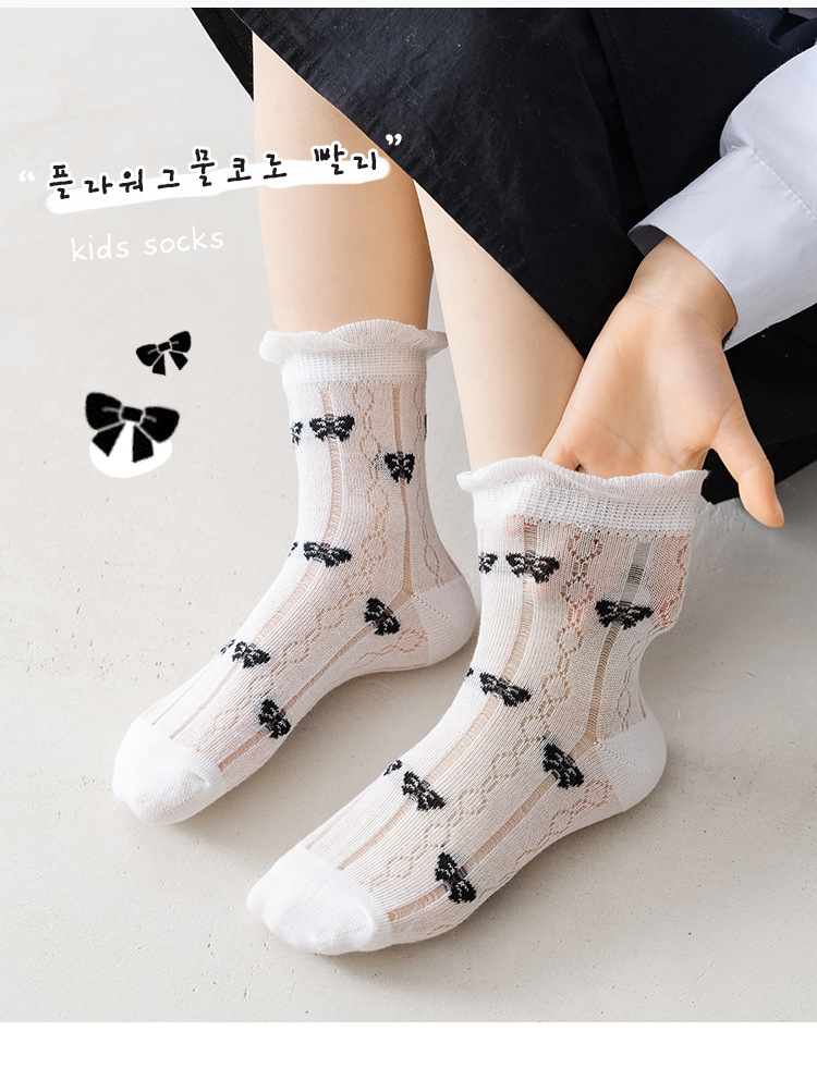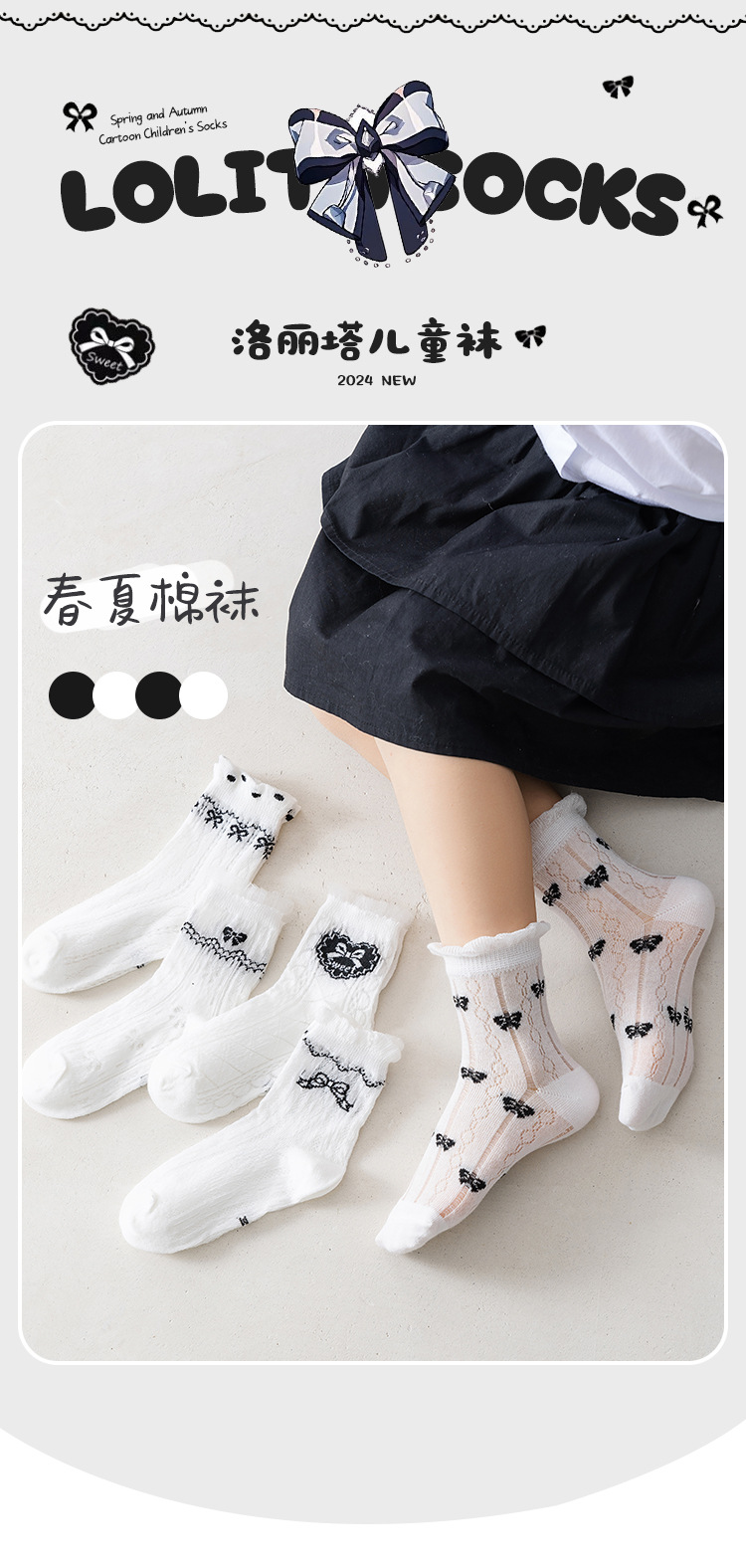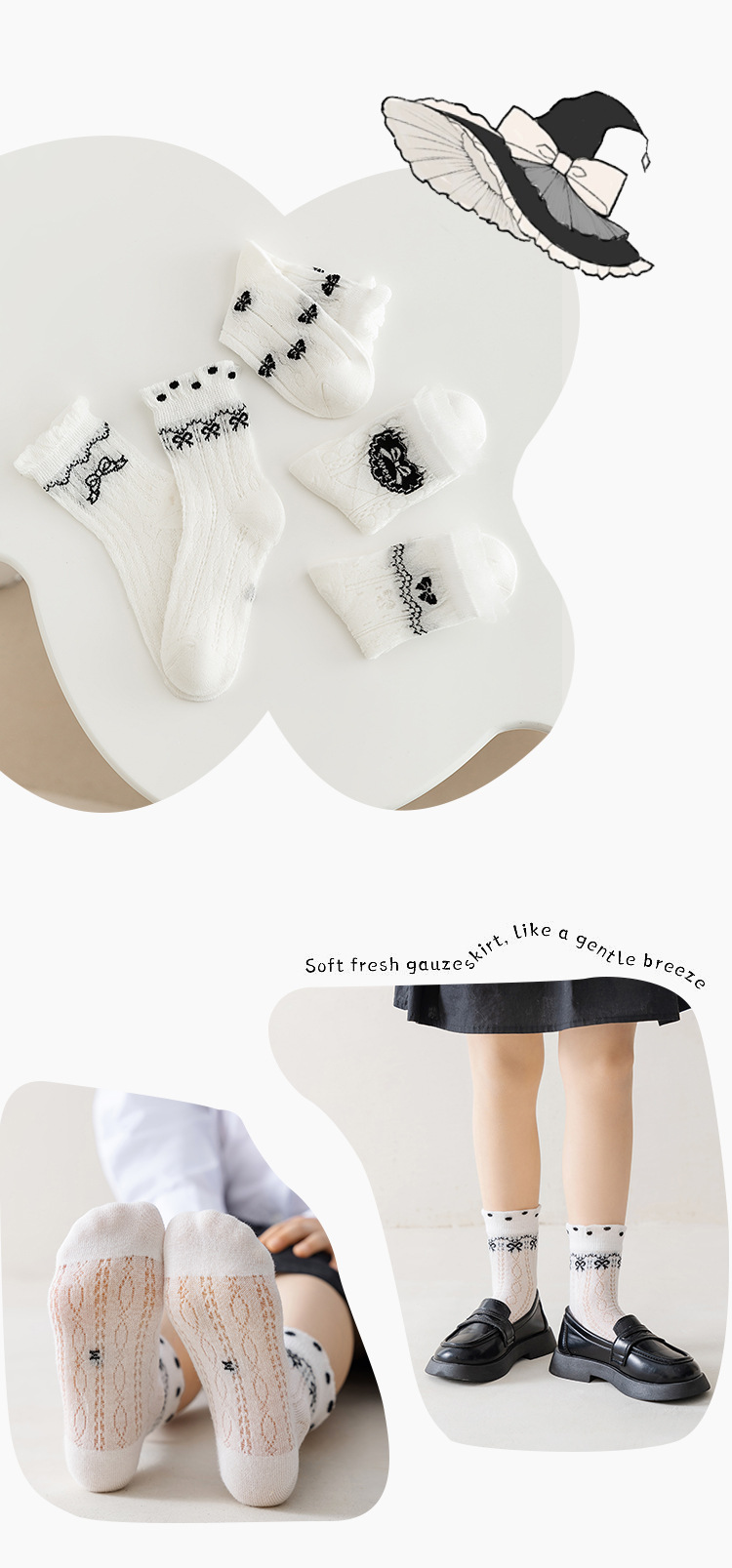 봄과 여름 얇은 면 어린이 양말 로리타 소녀 양말 편안하고 통기성이 좋은 흰색 아기 양말 고탄력 메쉬 양말