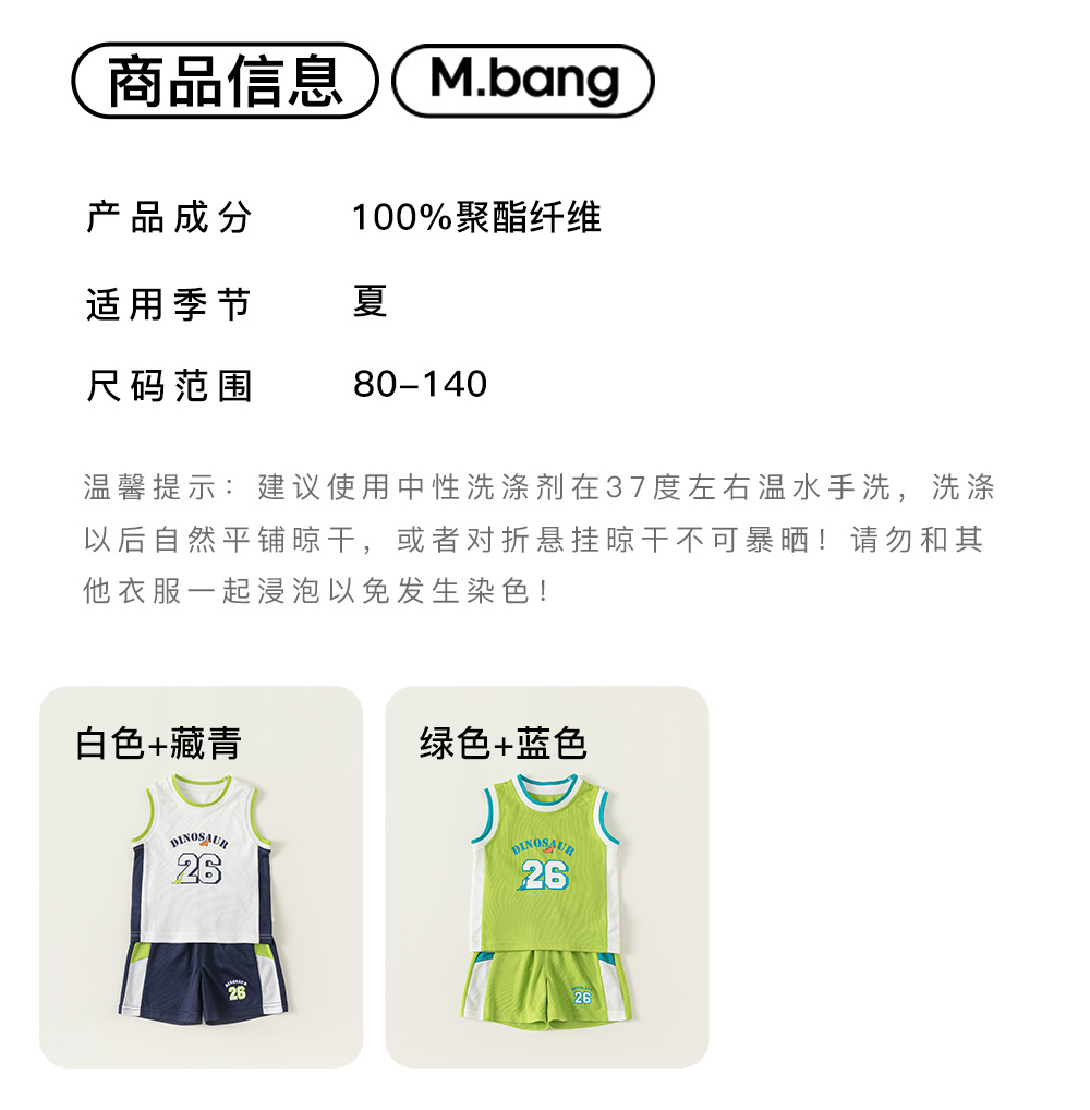 유바오 아동복 소년 스포츠 스타일 투피스 여름 아동복 농구 세트 어린이 남성 보물 민소매 조끼 세트