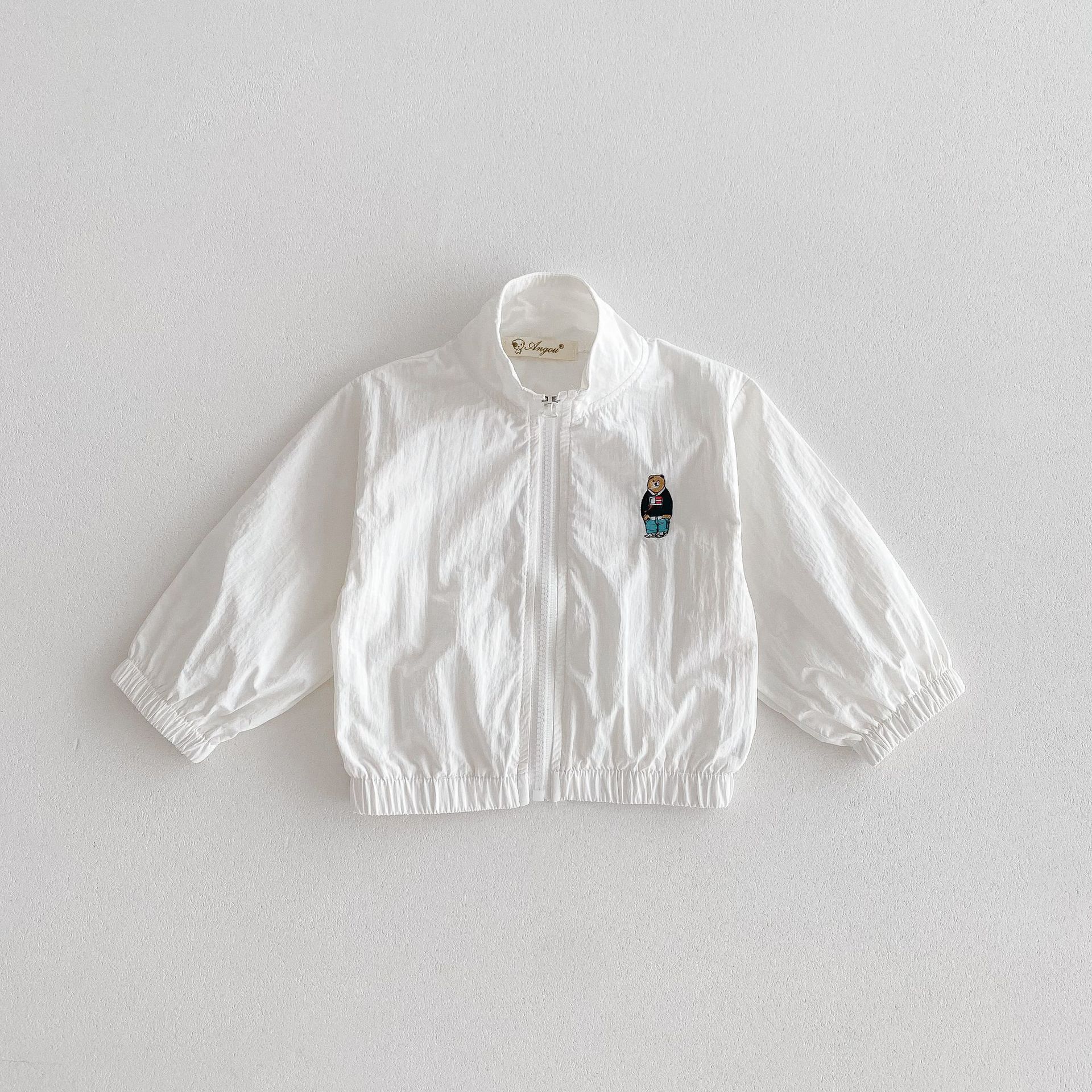 2024 여름 새로운 1-8 세 한국 스타일 아동복 지퍼 코트 남성과 여성의 아기 얇은 만화 곰 태양 보호 의류