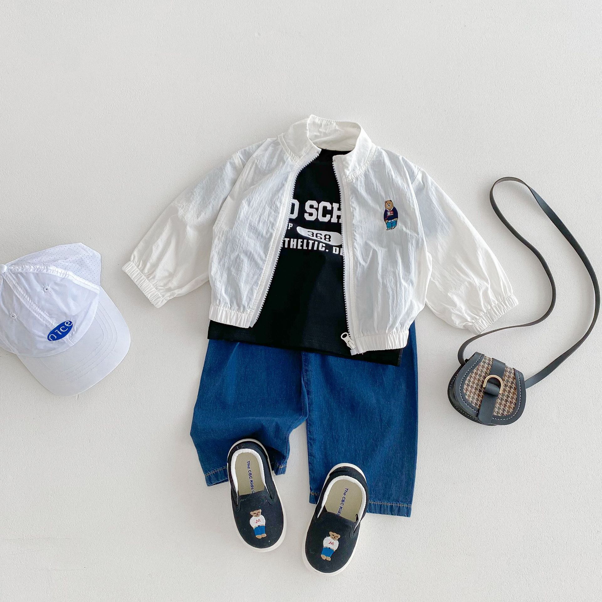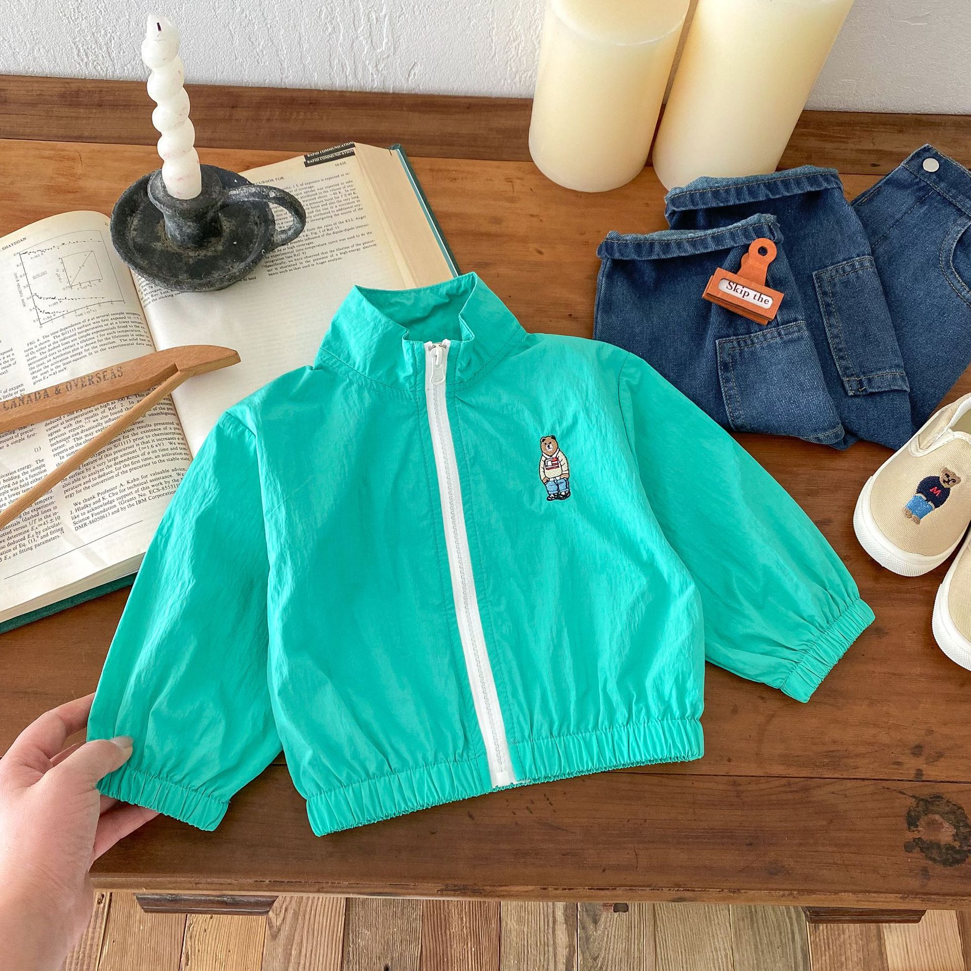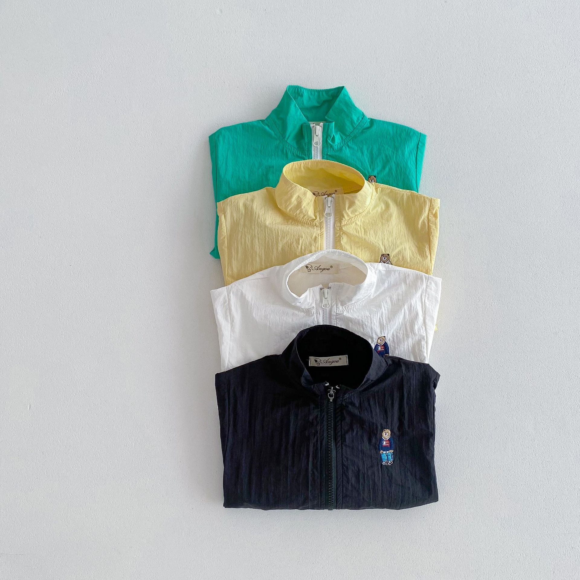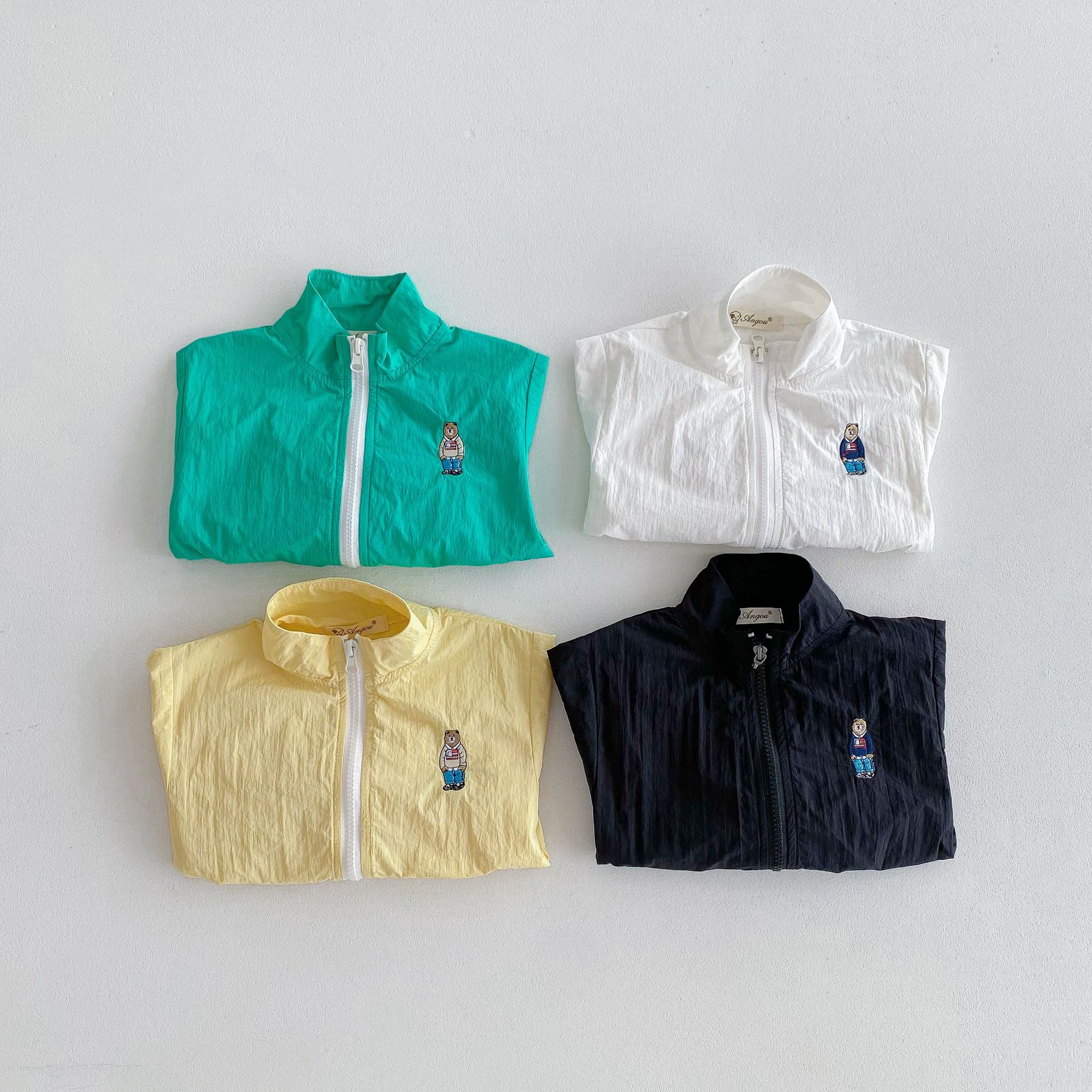2024 여름 새로운 1-8 세 한국 스타일 아동복 지퍼 코트 남성과 여성의 아기 얇은 만화 곰 태양 보호 의류스토어 가기