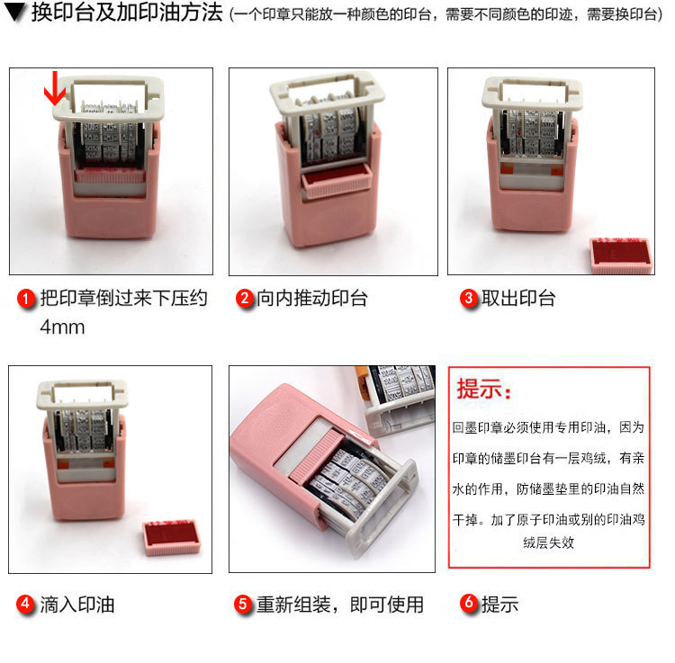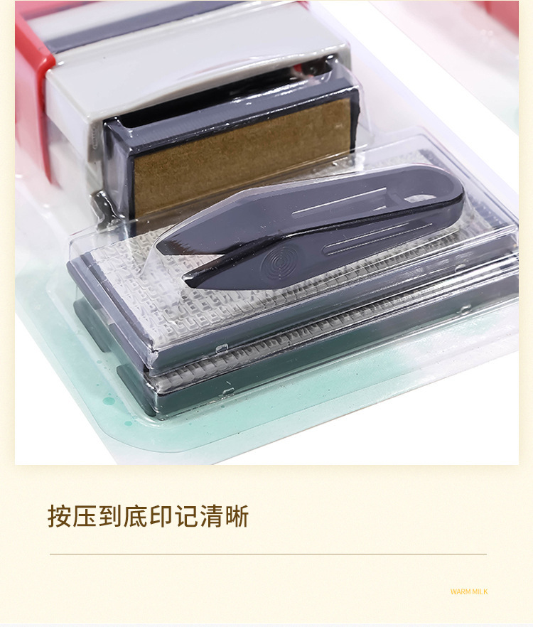 印章自主回墨使用方面,盖章清晰,字粒可DIY更换。