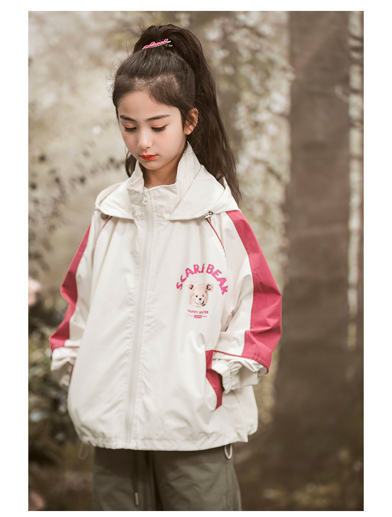 여아 재킷 2025 봄, 가을 새로운 후드 아동 상의 여성 아동복 3방수 재킷