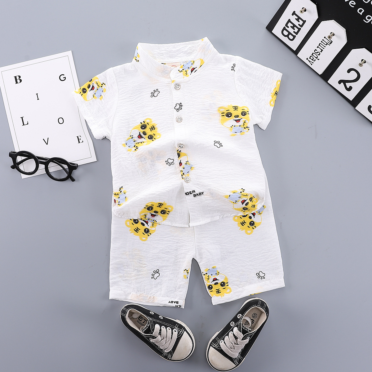 2024 새로운 어린이 짧은 소매 세트 소년 만화 셔츠 아기 소년 여름 셔츠 세트 도매 국경