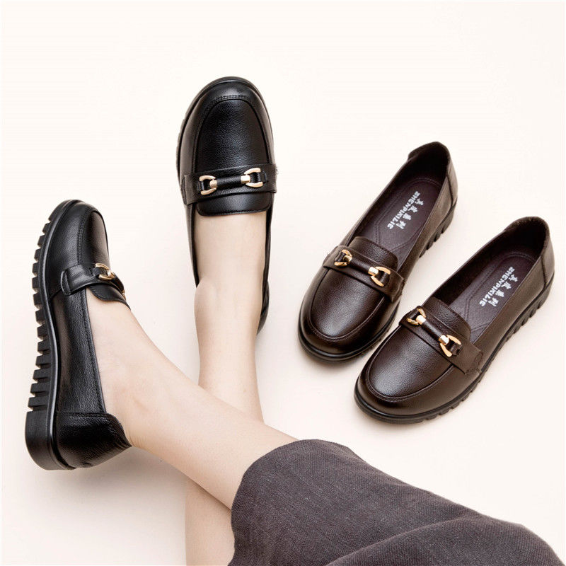 봄 가을 엄마 신발, 편안한 부드러운 밑창 가죽 신발, 중년 여성 캐주얼 플랫 슈즈, 중년 노인 할머니 가죽 신발