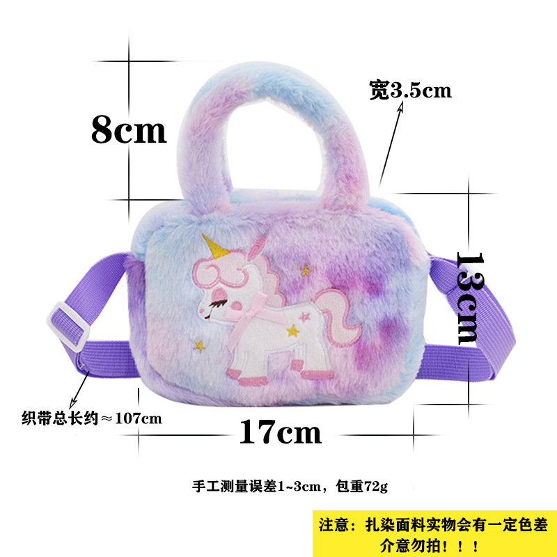 한국 스타일 귀여운 유니콘 봉제 메신저 가방 만화 어린이 공주 가방 소년 소녀 숄더백 키즈 핸드백