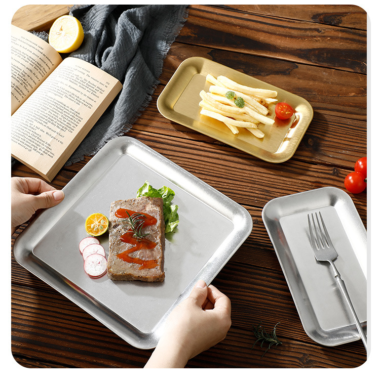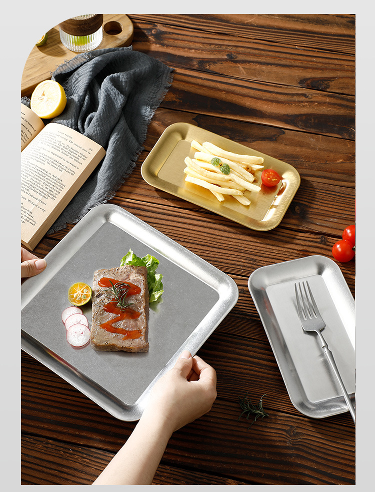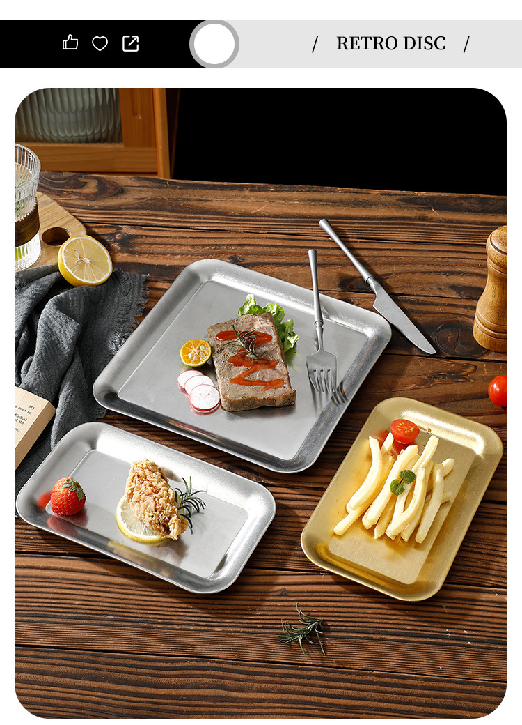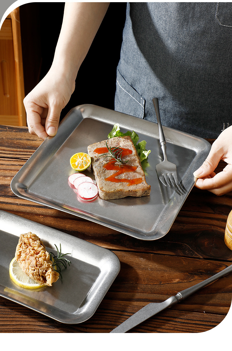 레트로 304 스테인레스 스틸 스낵 플레이트 커피 숍 스낵 트레이 케이크 플레이트 바베큐 플레이트