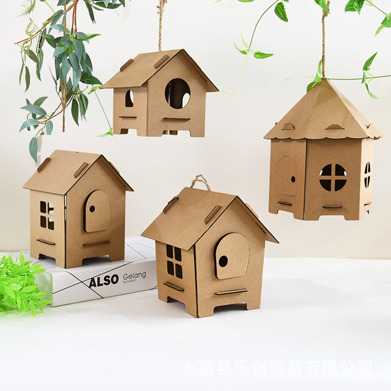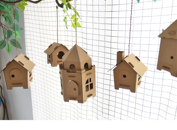 종이 상자 집 DIY 수제 창조적 인 레이아웃 수제 예술 낙서 종이 상자 어린이 실내 교실 학교