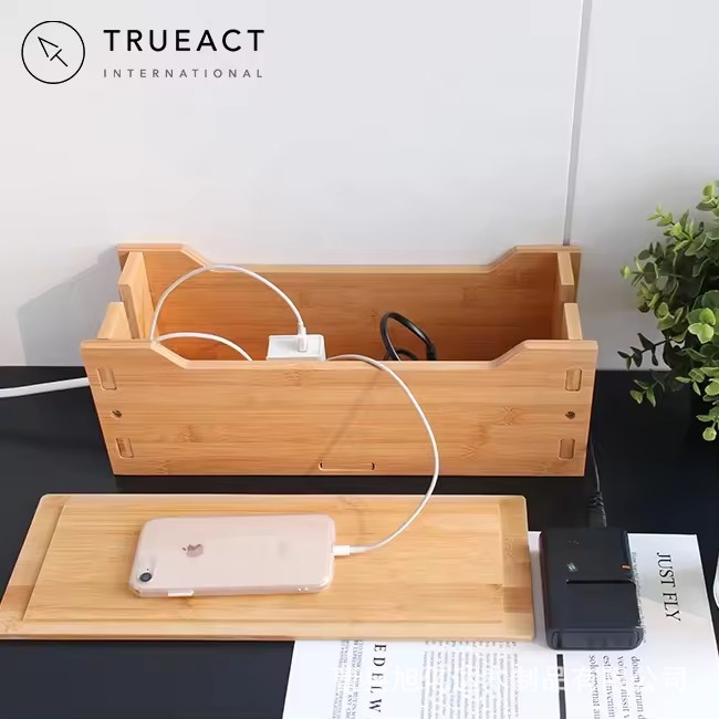 나무 전선 관리함 원목 대나무 수납함 심플한 가정용 콘센트 정리 데스크탑 수납함