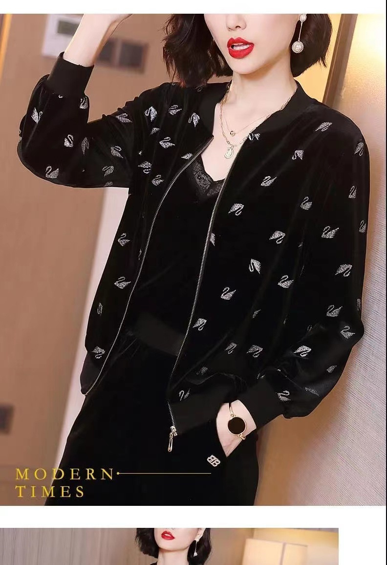 새로운 한국 스타일 캐주얼 올 매치 패션 재킷 탑 의류 도매 여성을위한 봄과 가을 긴팔 골드 벨벳 코트스토어 가기