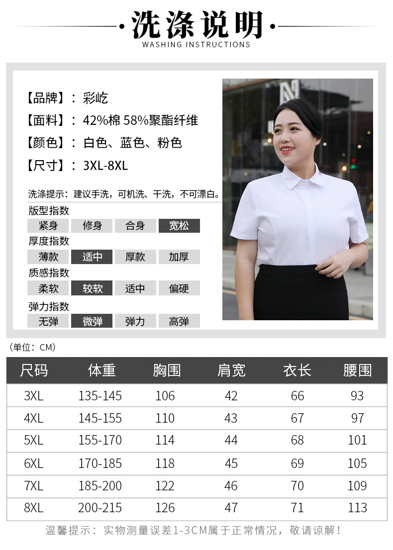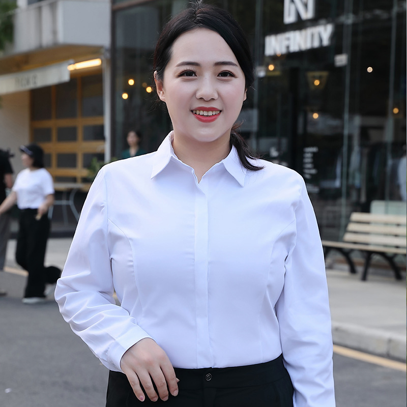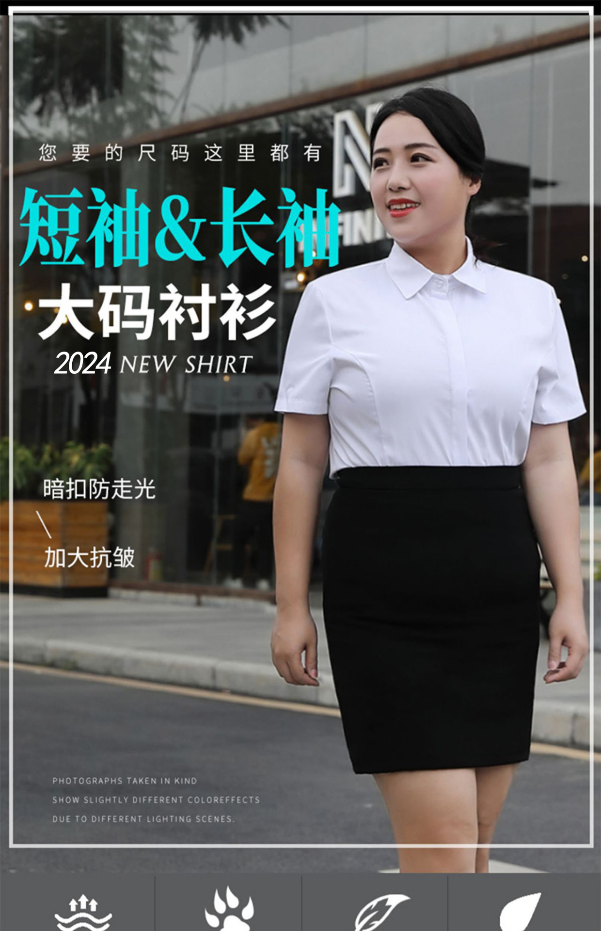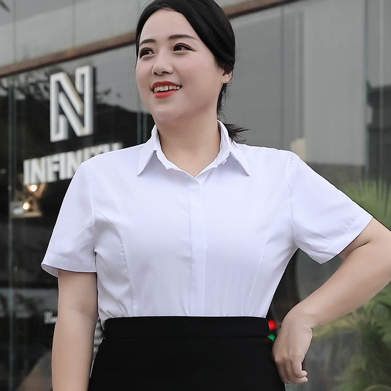 플러스 사이즈 흰 셔츠 여성의 약간 뚱뚱한 플러스 사이즈 느슨한 통통녀 짧은 소매 여름 작업복 노출 방지 긴 소매 바지스토어 가기
