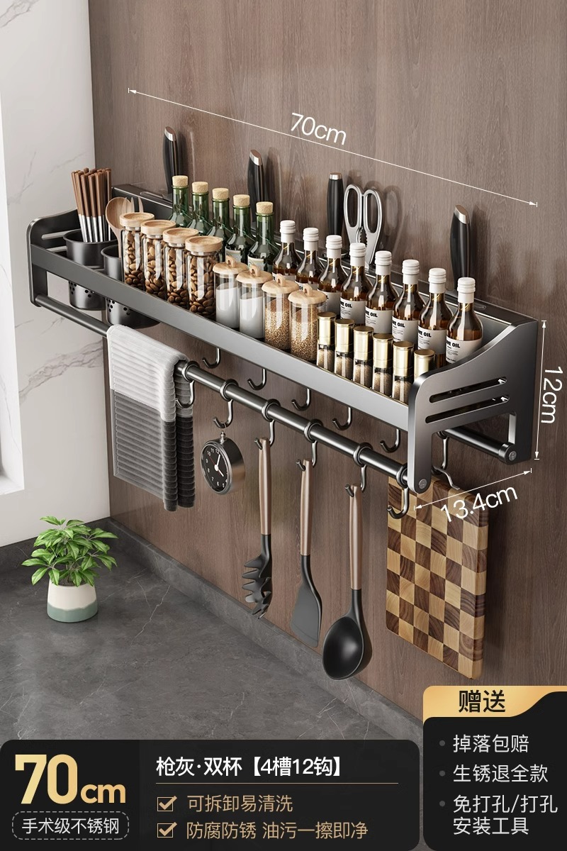 免打孔厨房多功能置物架家用壁挂式调味料筷子刀架用品大全收纳架