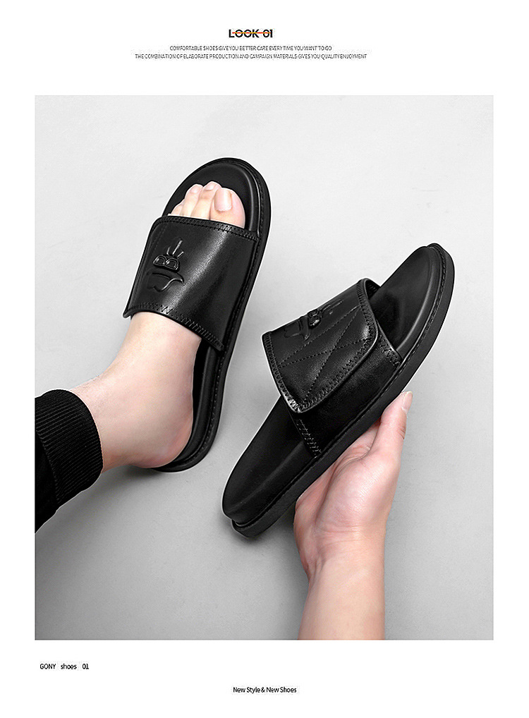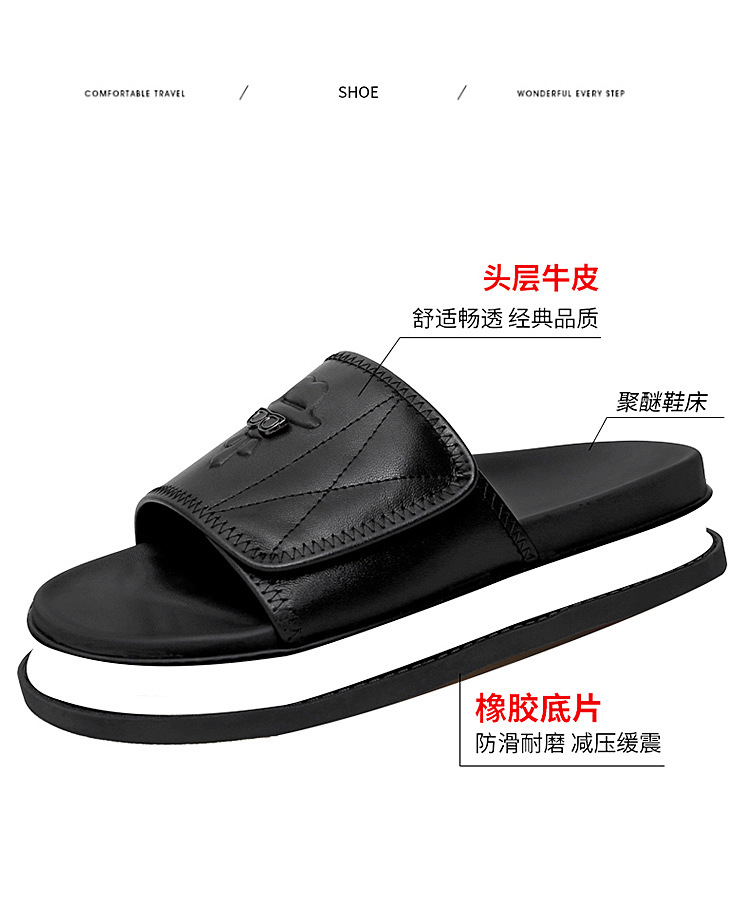 슬리퍼 라이트 럭셔리 2025 새로운 두꺼운 밑창 스포츠 탑 레이어 소가죽 슬리퍼 남성용 트렌디 브랜드 키가 큰 틈새 신발