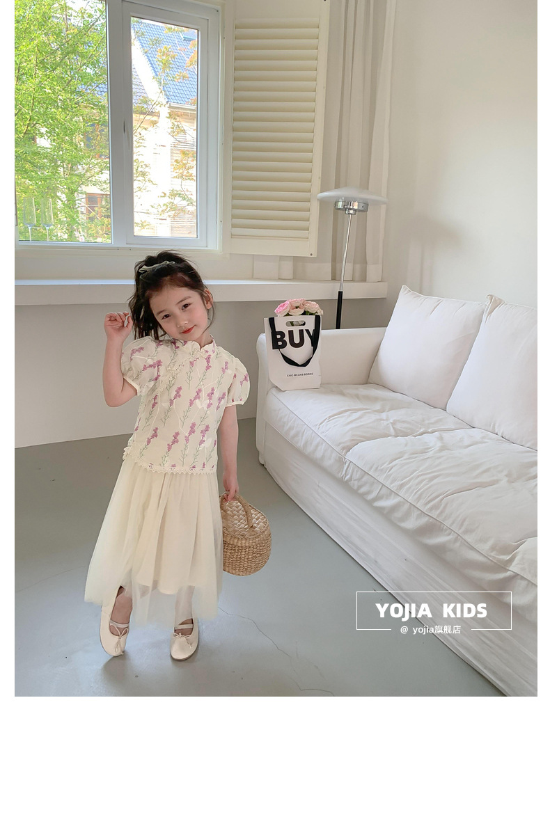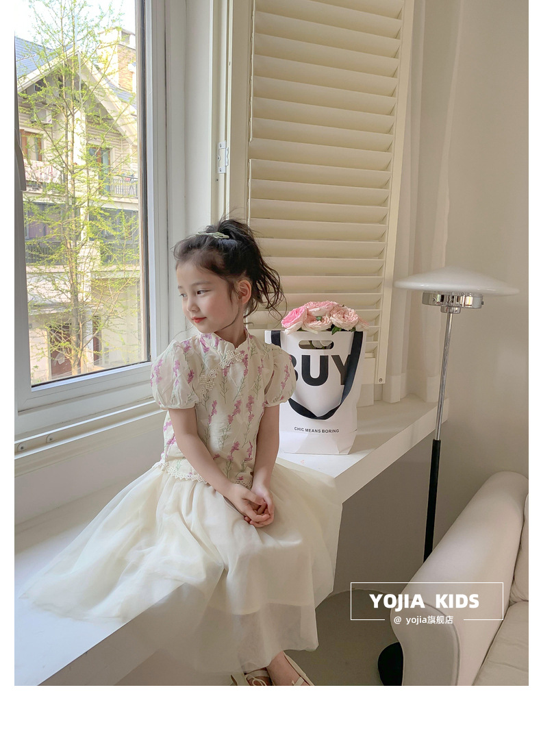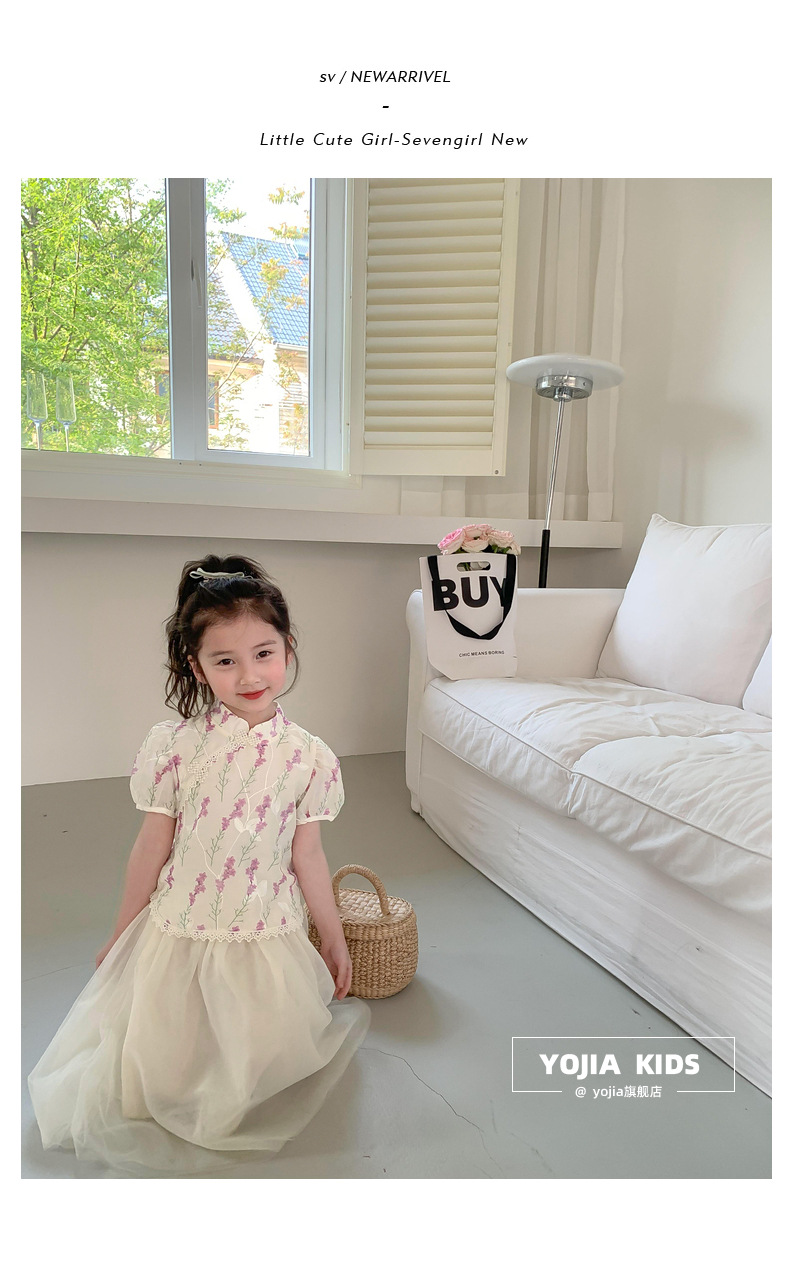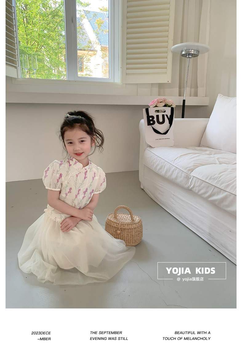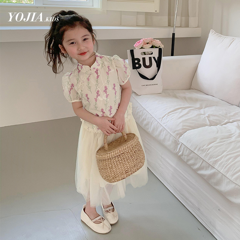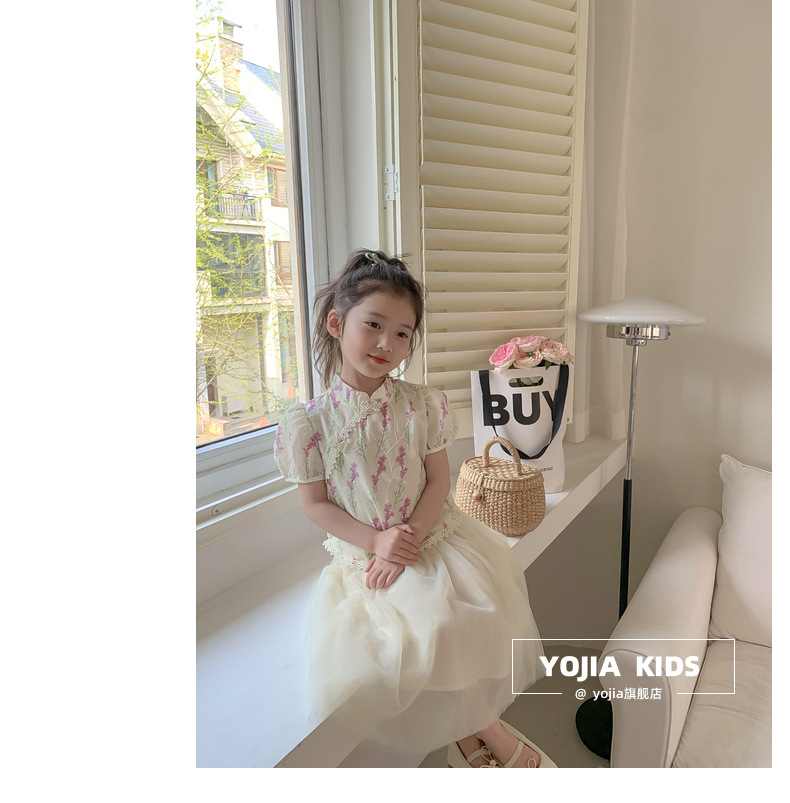 여자 Hanfu 정장 2023 여름 새로운 고대 개선 치파오 여자 아동 의류 거즈 스커트 퍼프 슬리브