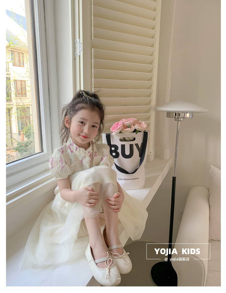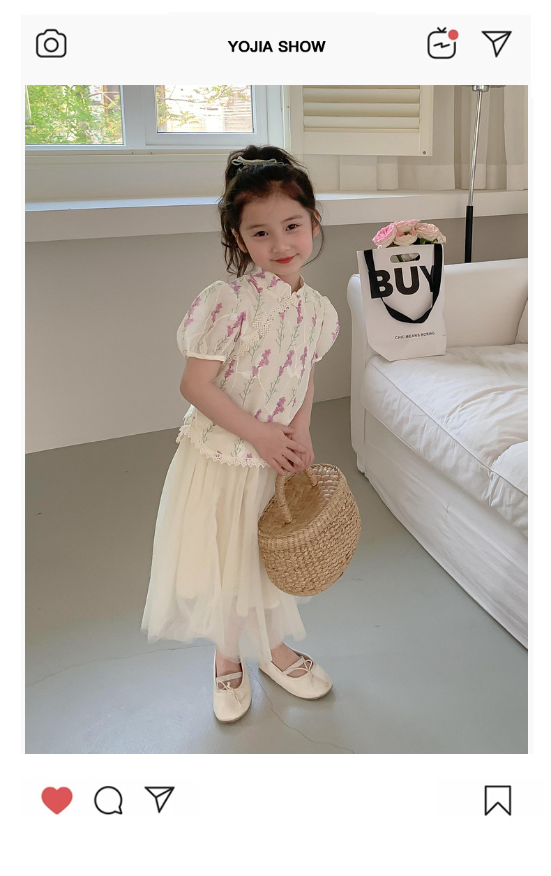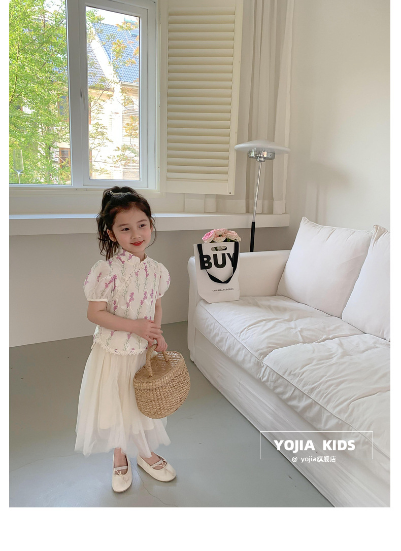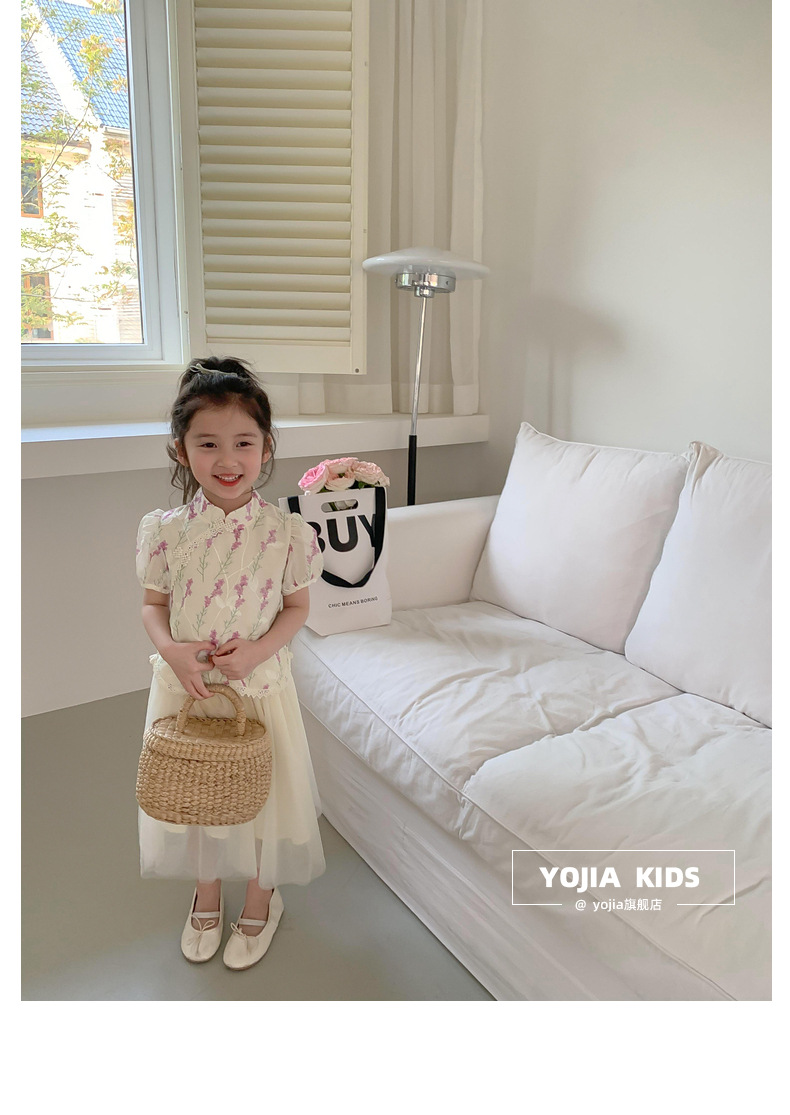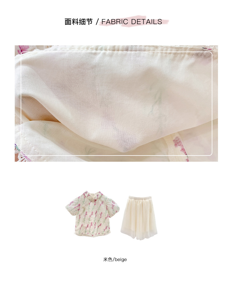 여자 Hanfu 정장 2023 여름 새로운 고대 개선 치파오 여자 아동 의류 거즈 스커트 퍼프 슬리브