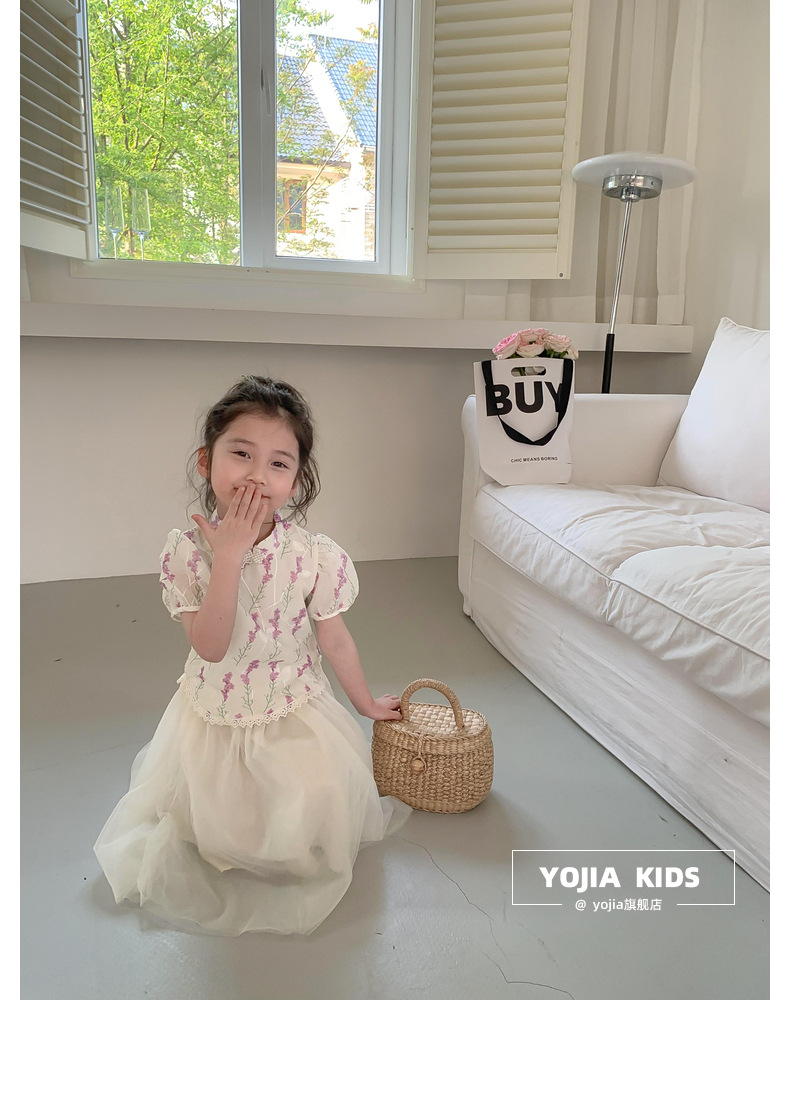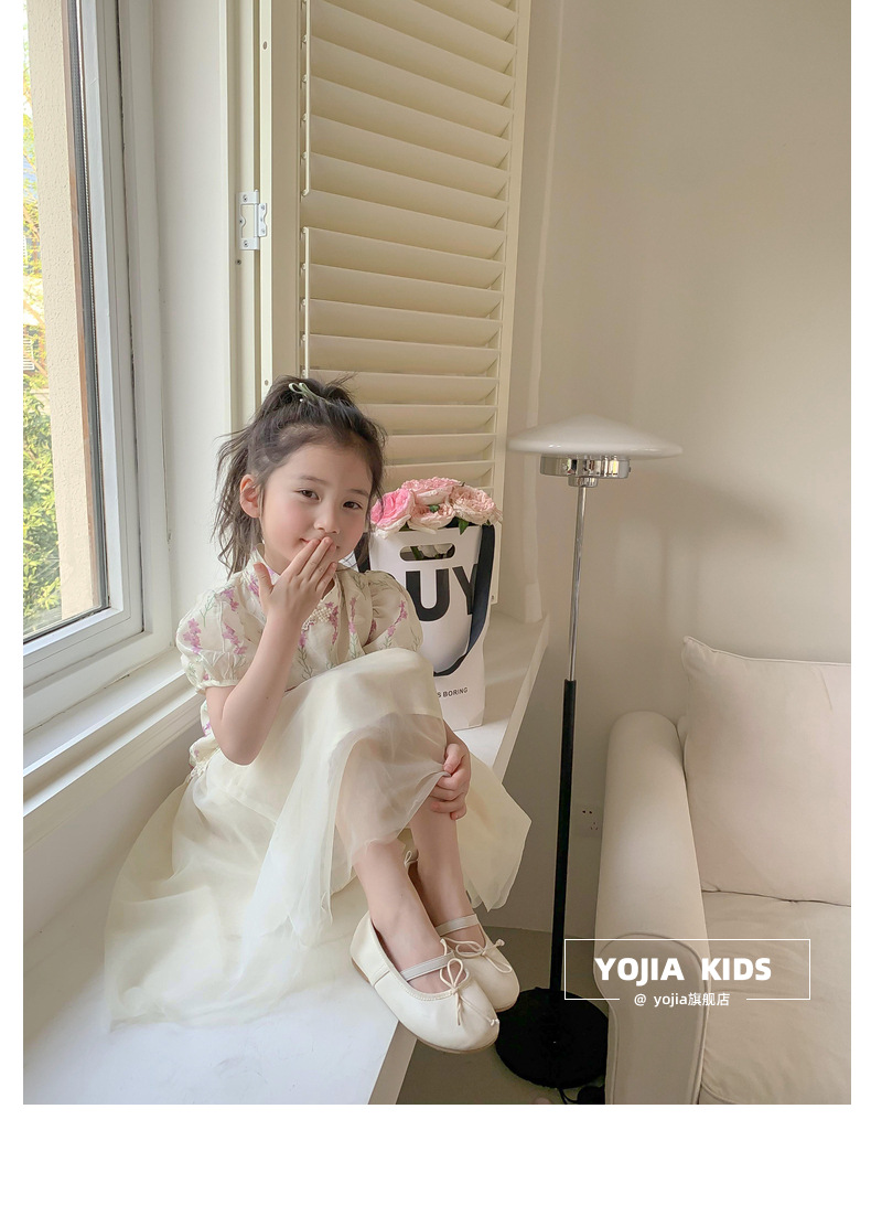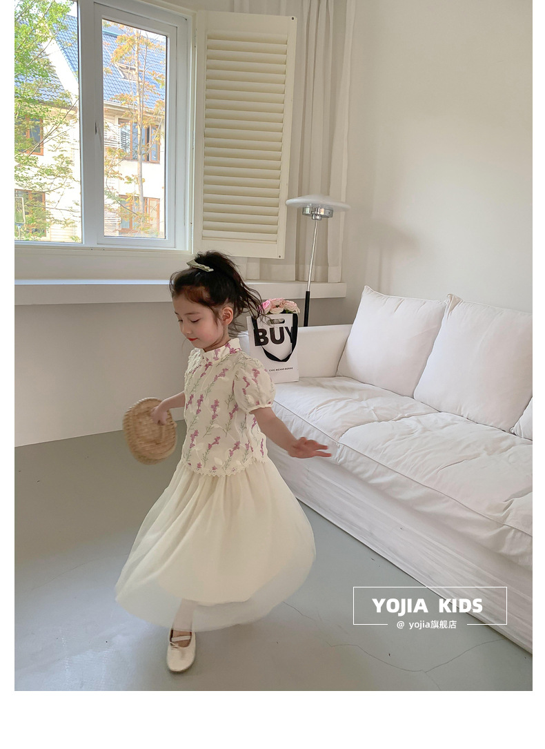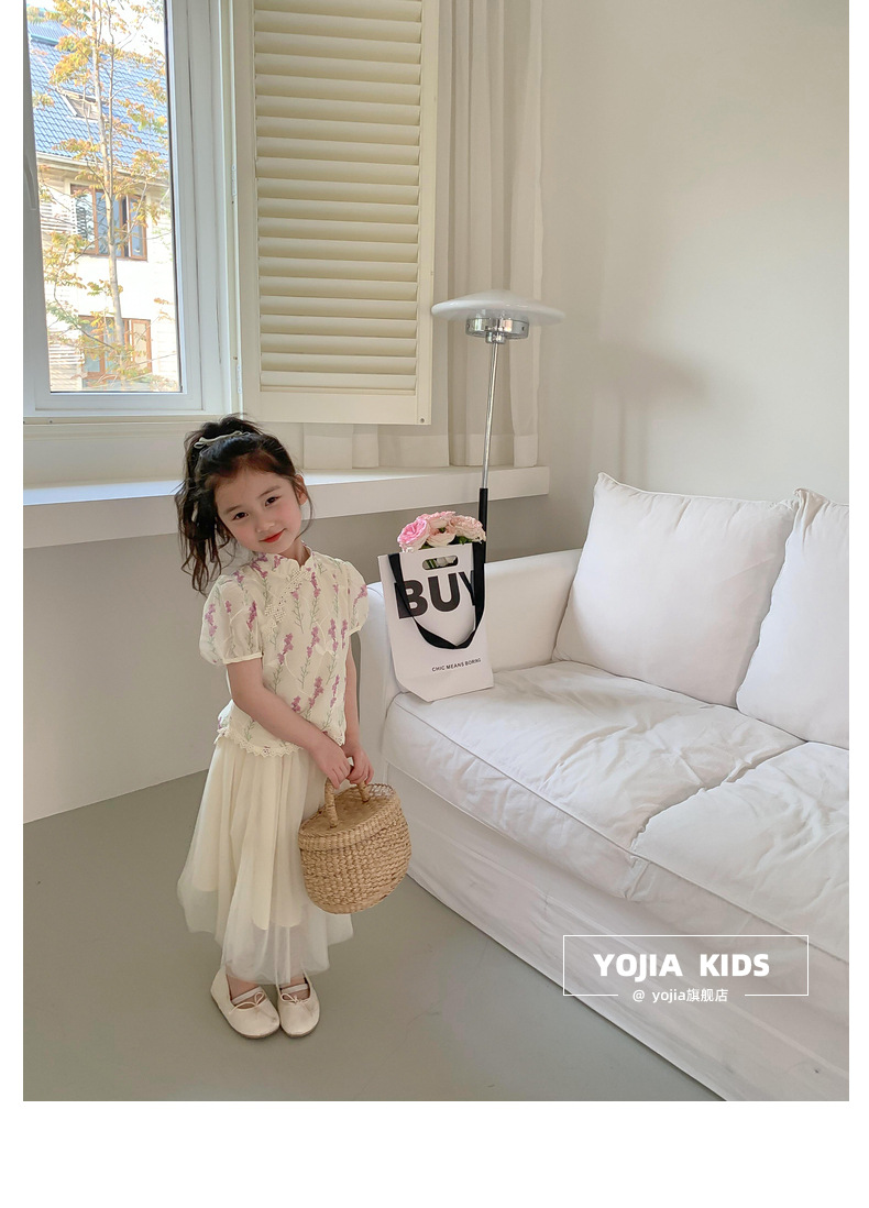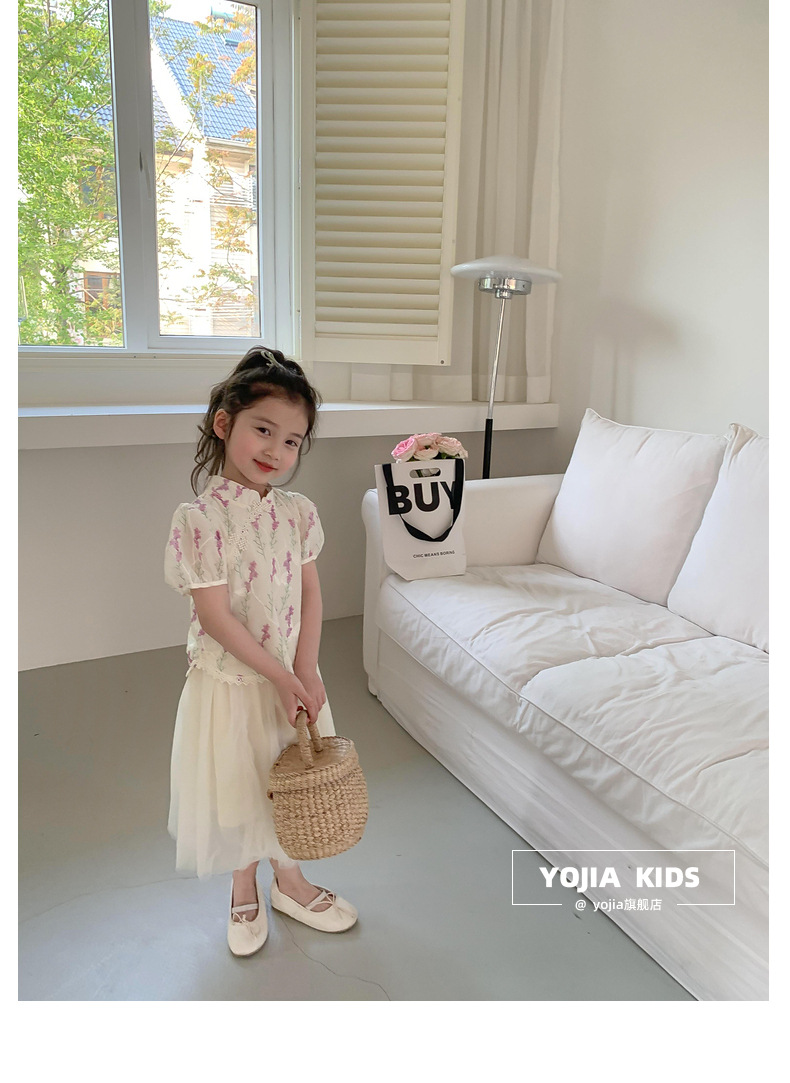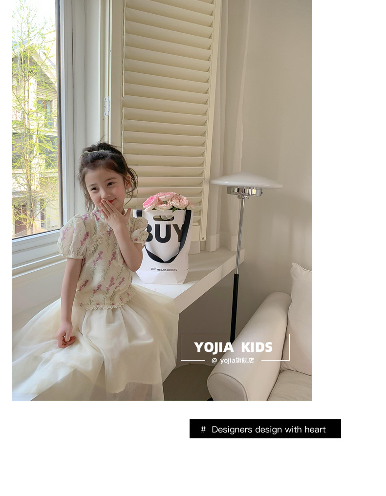 여자 Hanfu 정장 2023 여름 새로운 고대 개선 치파오 여자 아동 의류 거즈 스커트 퍼프 슬리브