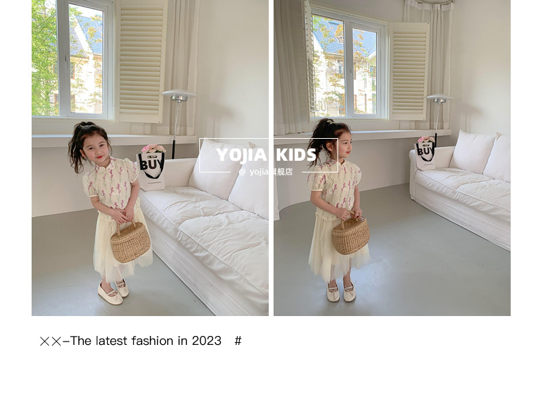 여자 Hanfu 정장 2023 여름 새로운 고대 개선 치파오 여자 아동 의류 거즈 스커트 퍼프 슬리브스토어 가기