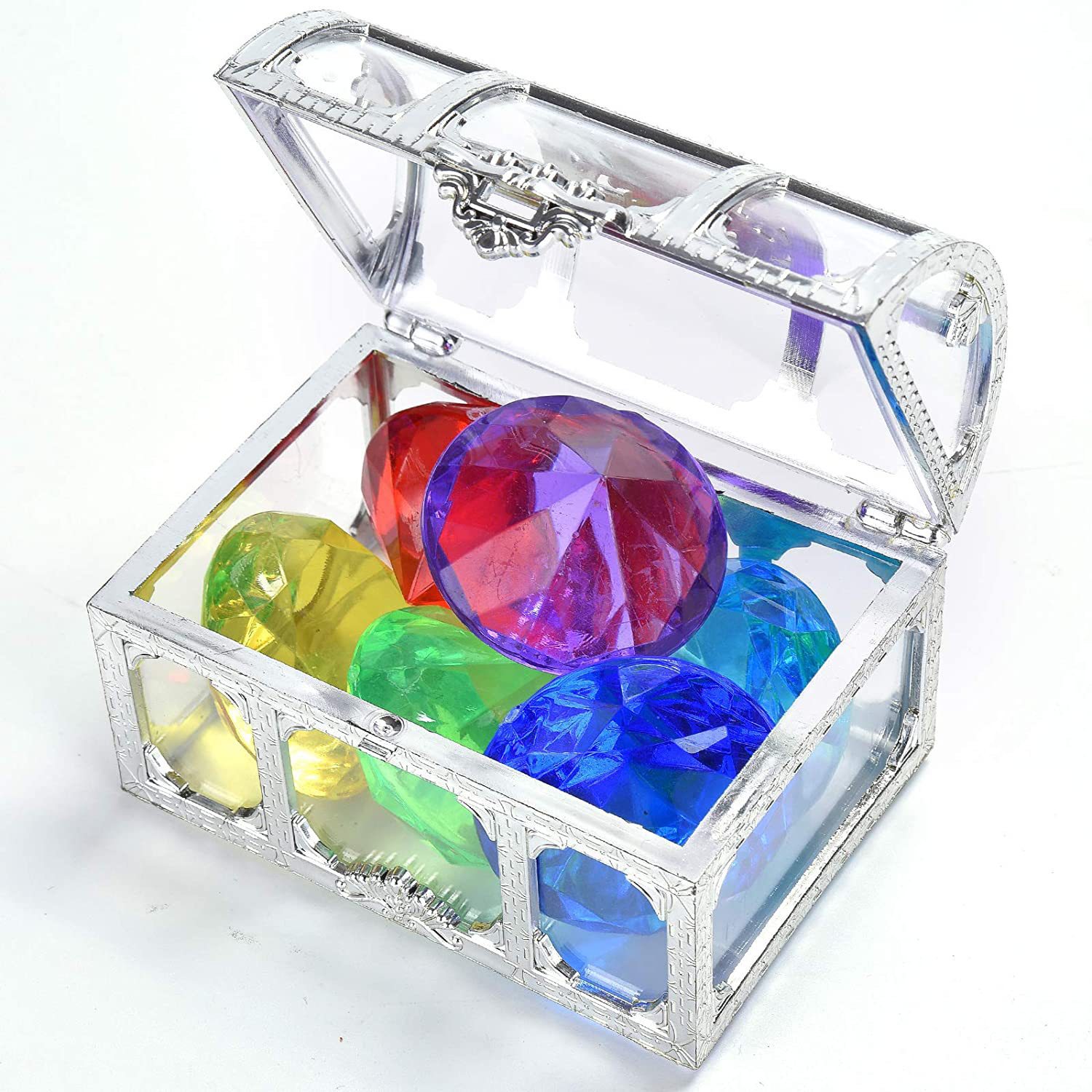 국경 간 어린이 크리스탈 다이아몬드 해적 보물 상자 아크릴 보석 다이빙 보물 사냥 게임 상자 장난감